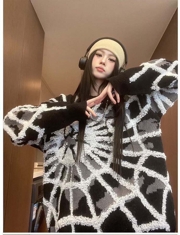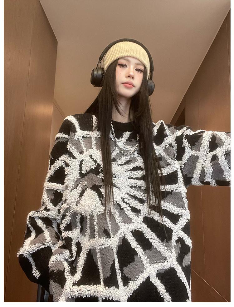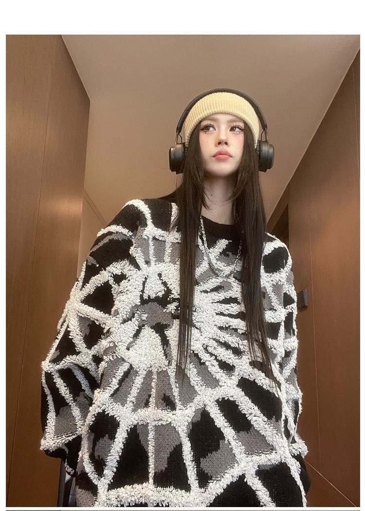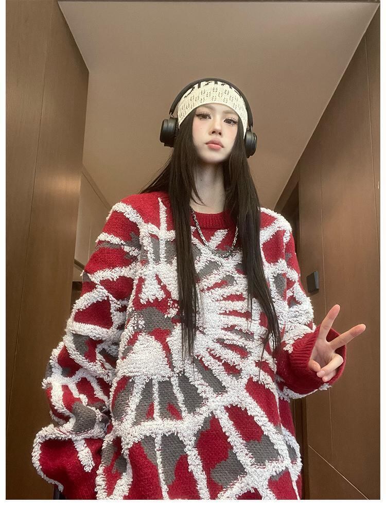 おしゃれ度アップビッグ刺?ロゴゆったりニットセーター全2色 E-4572