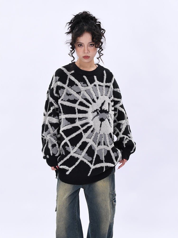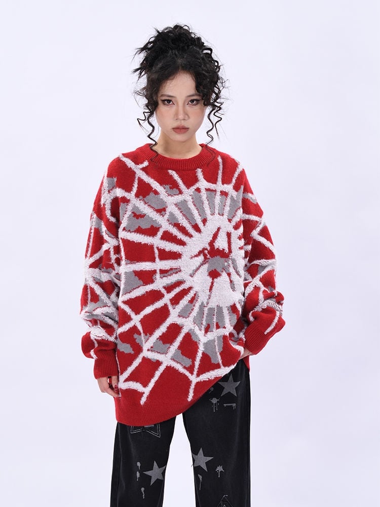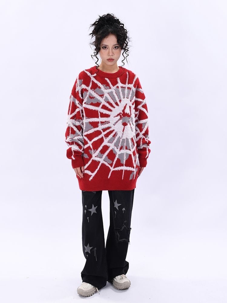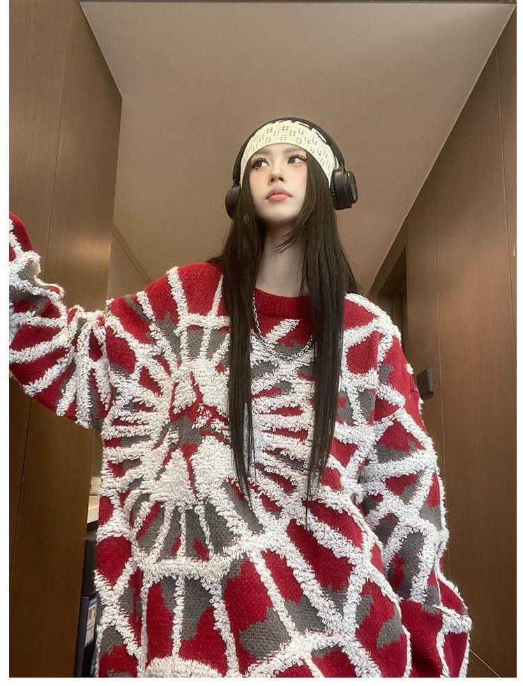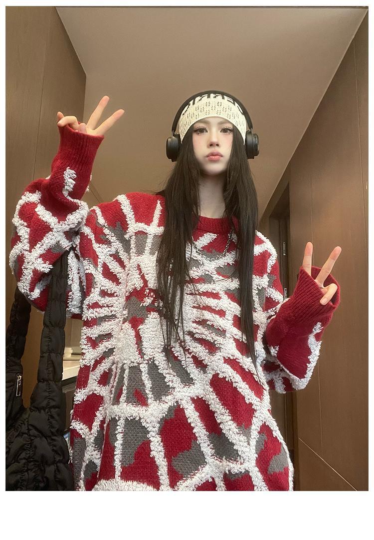 おしゃれ度アップビッグ刺?ロゴゆったりニットセーター全2色 E-4572