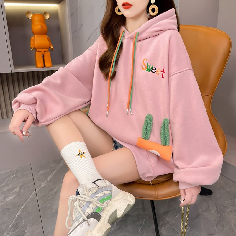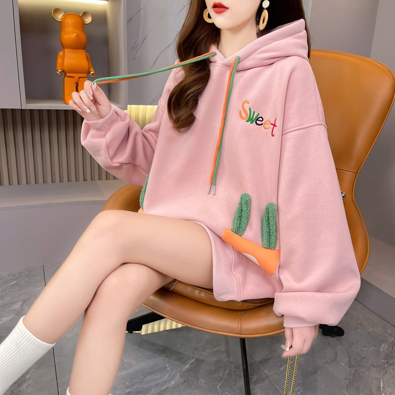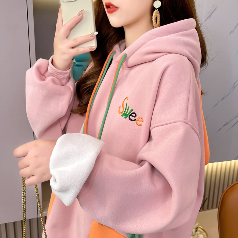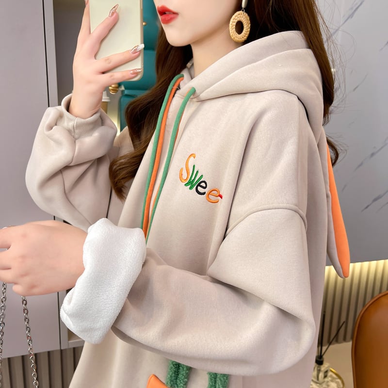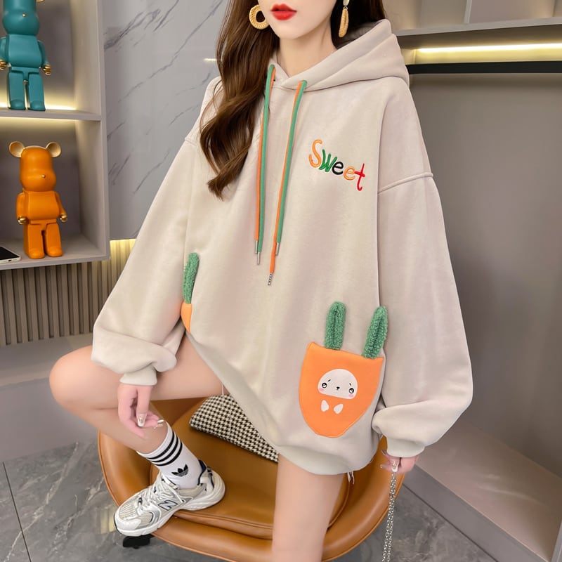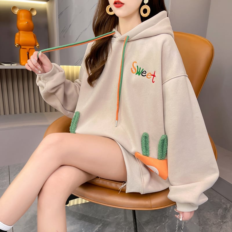 おしゃれ度アップ ゆったりフード付きパーカ全2色 厚手トップスins-4744