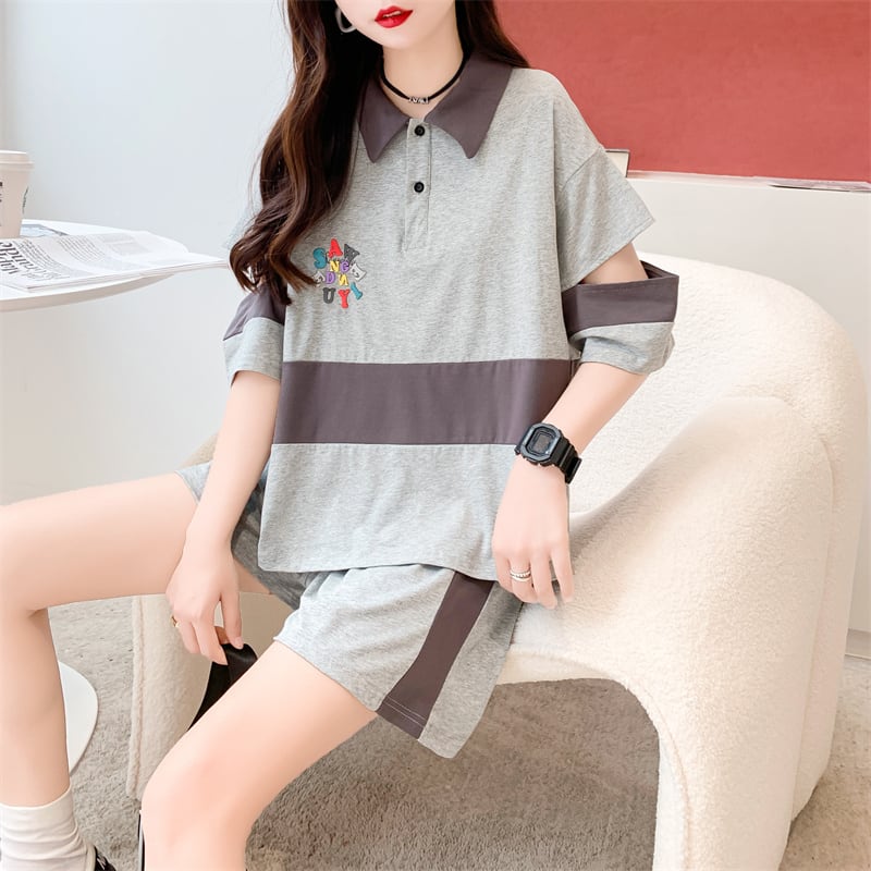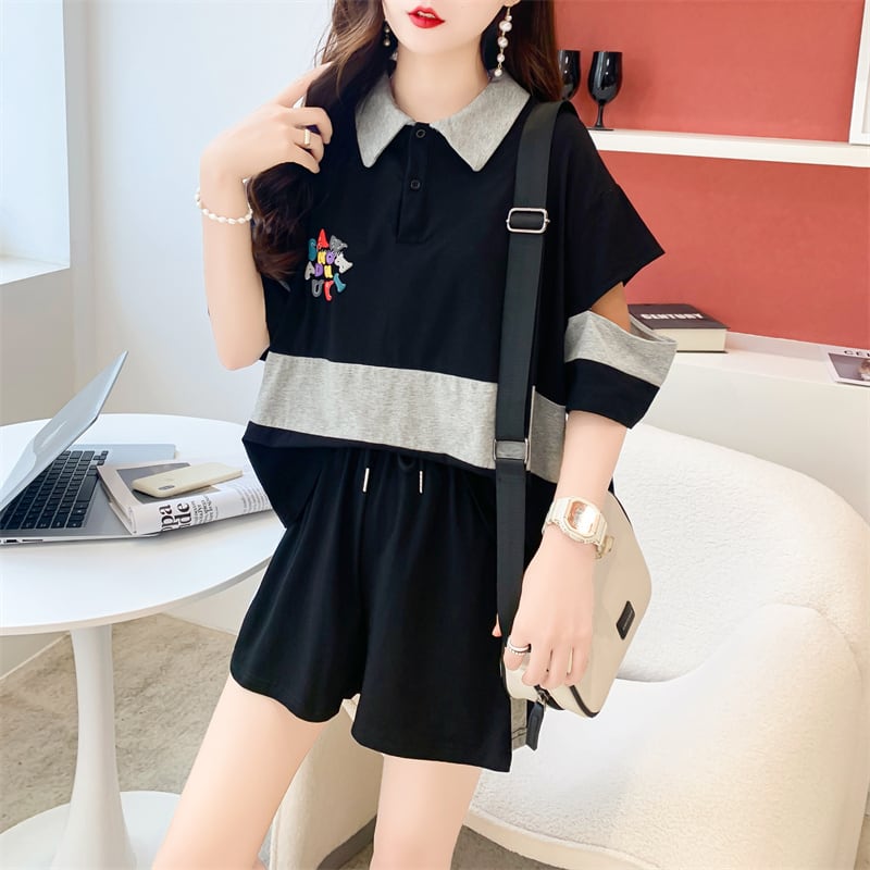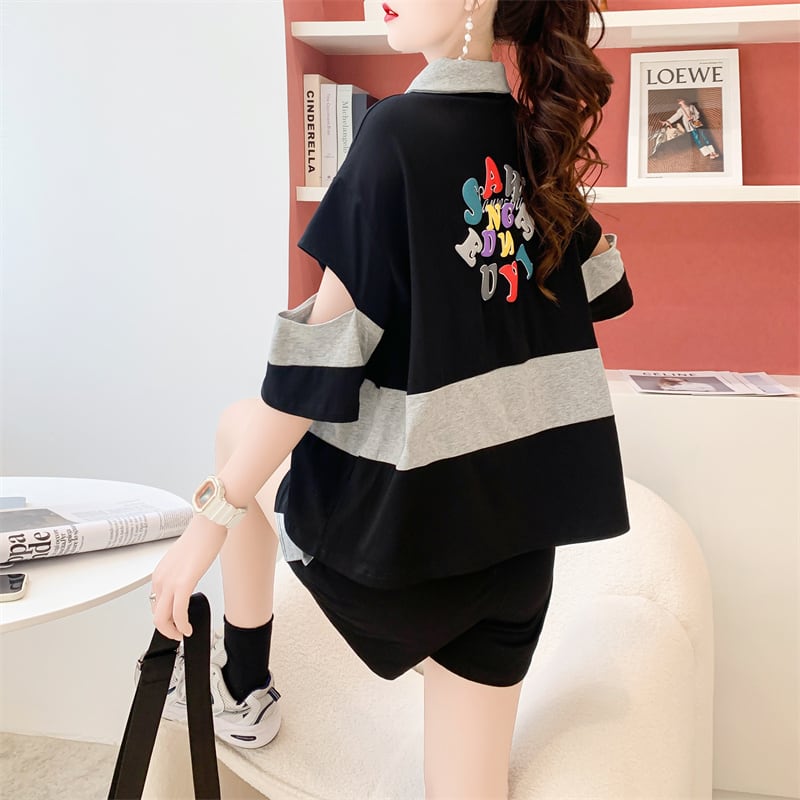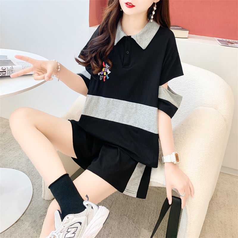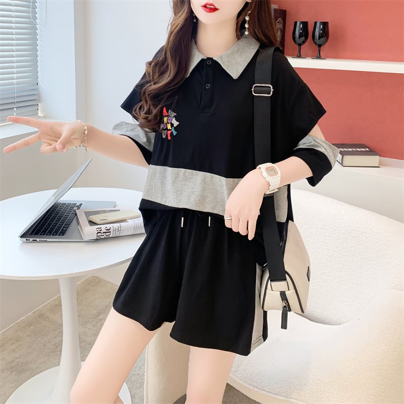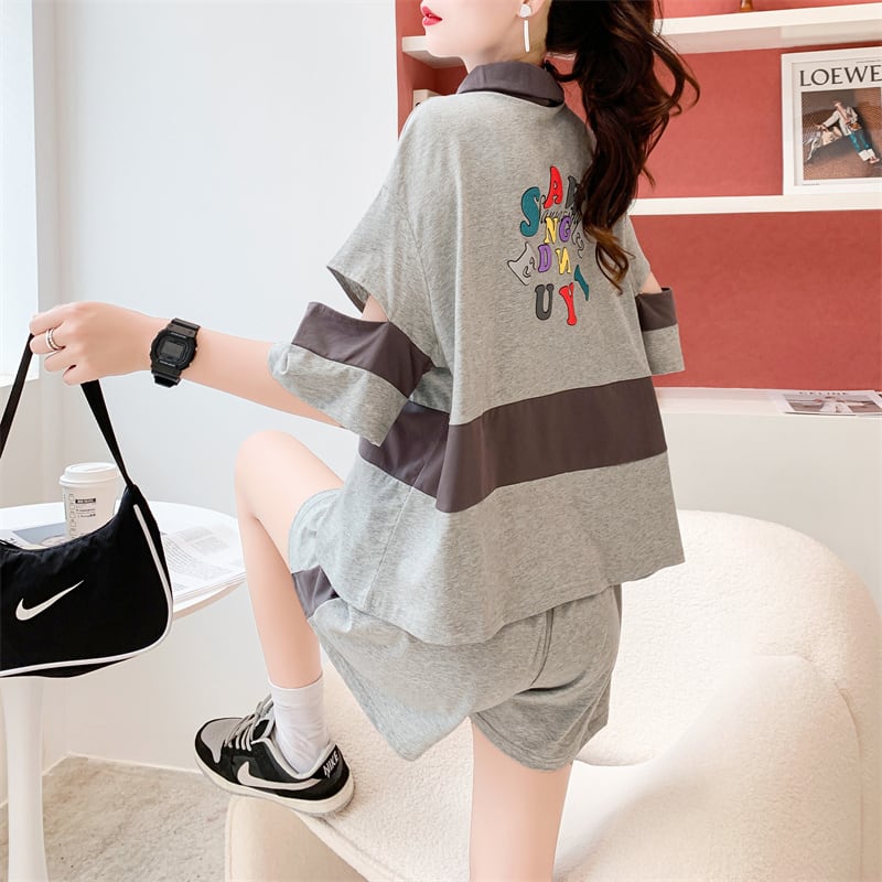 おすすめ カジュアル 切り替え 半袖Tシャツⅹパンツセット全2色 <ins-8281>