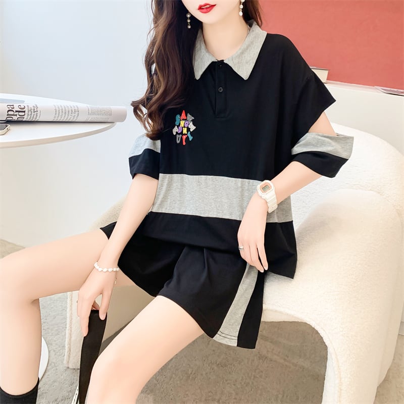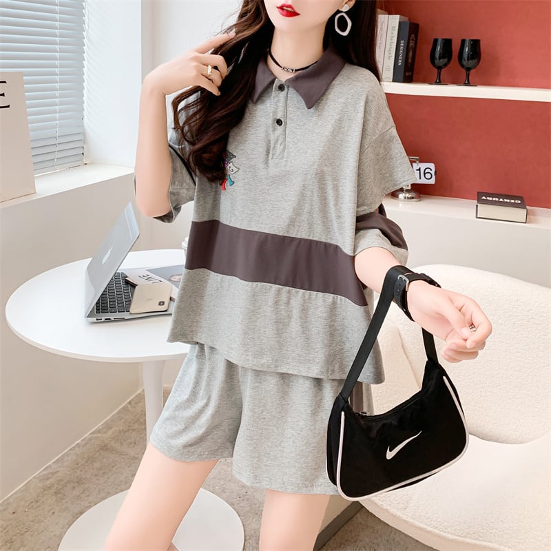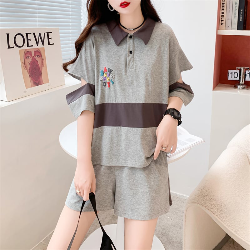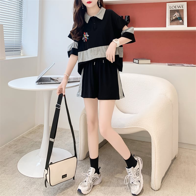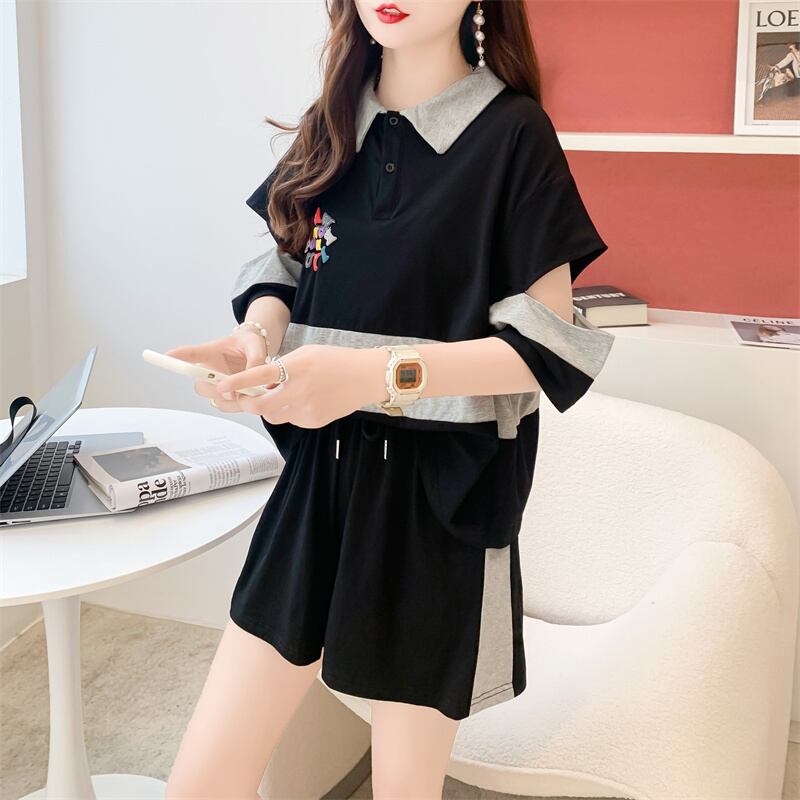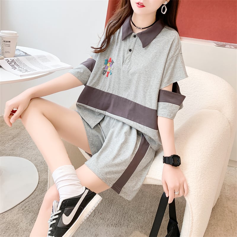 おすすめ カジュアル 切り替え 半袖Tシャツⅹパンツセット全2色 <ins-8281>