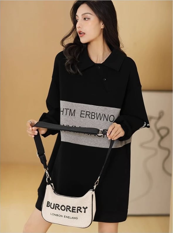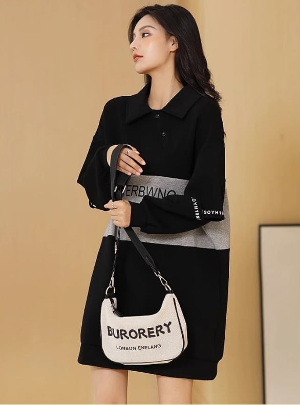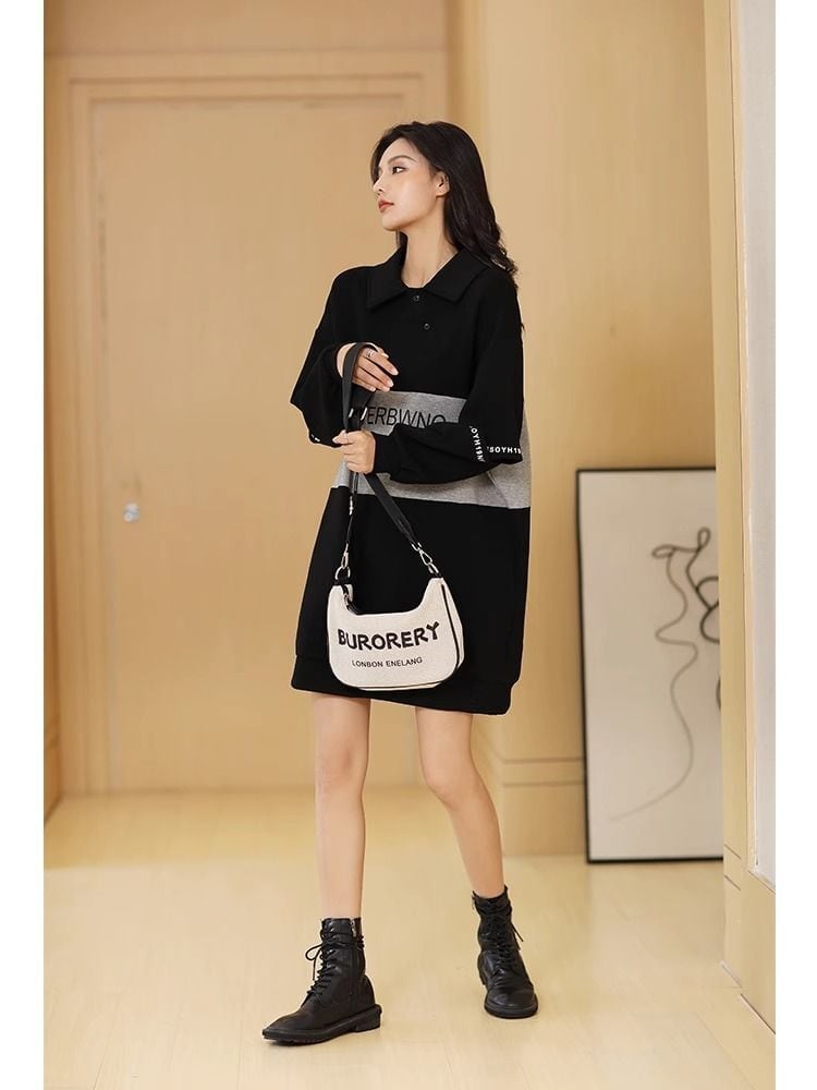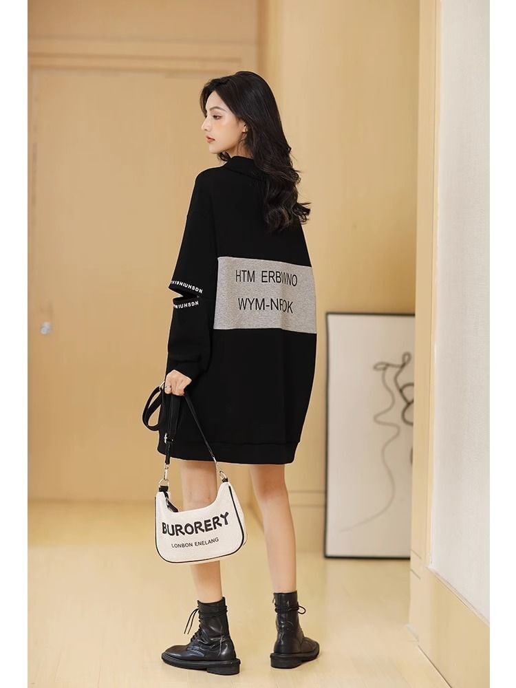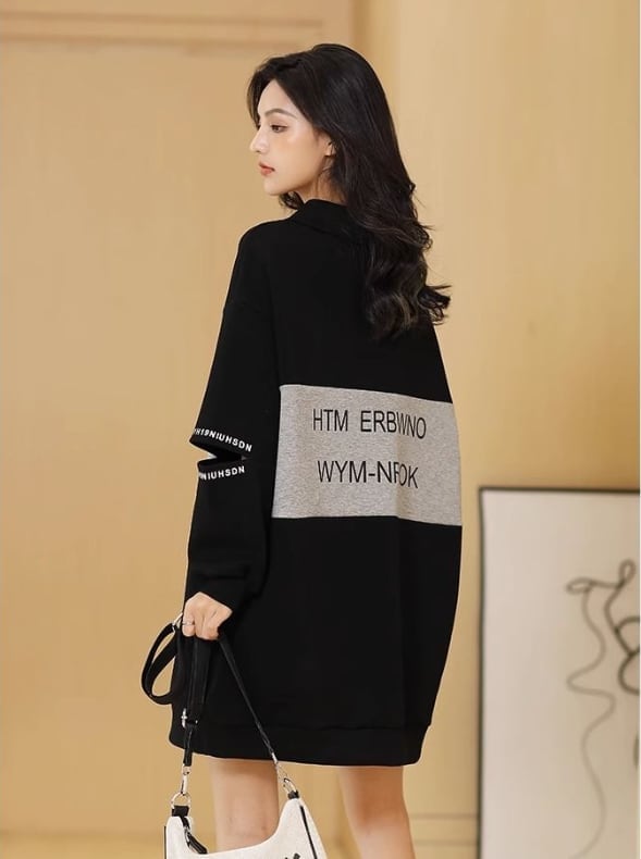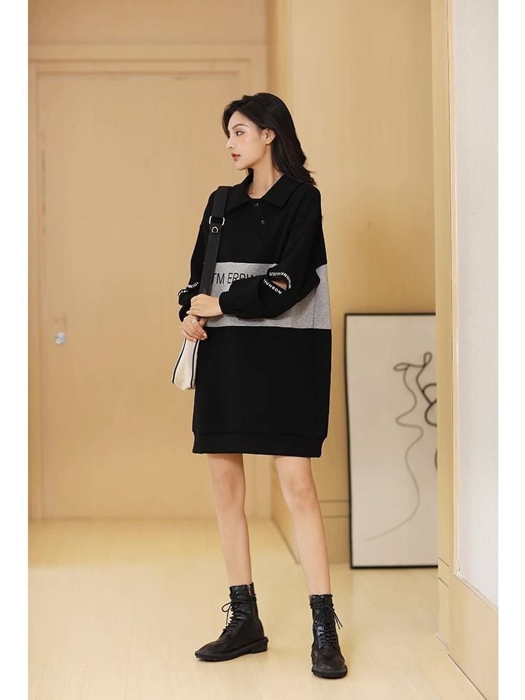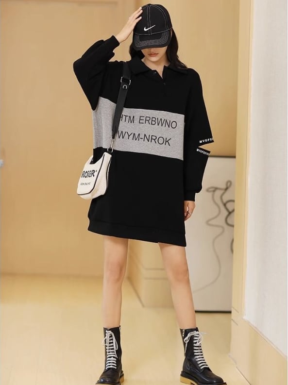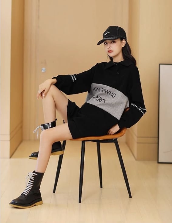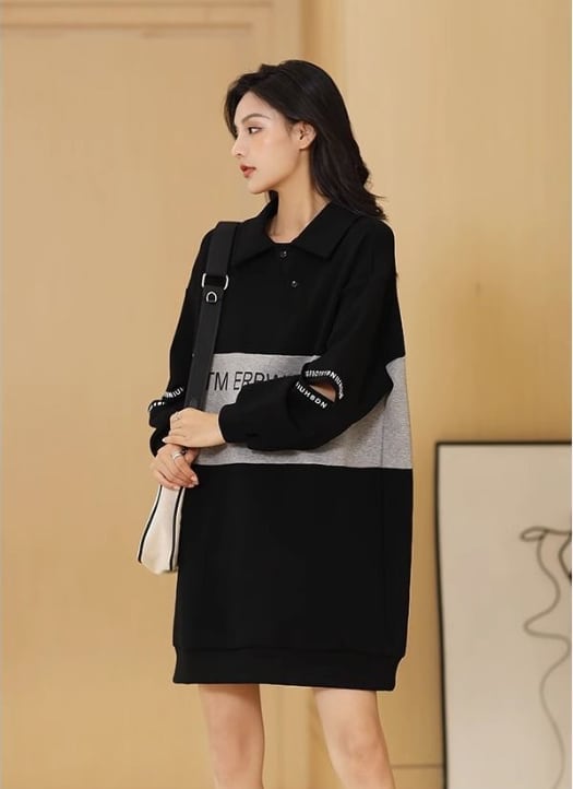 おすすめ 折り襟 配色ブラックスウェットins-4358
