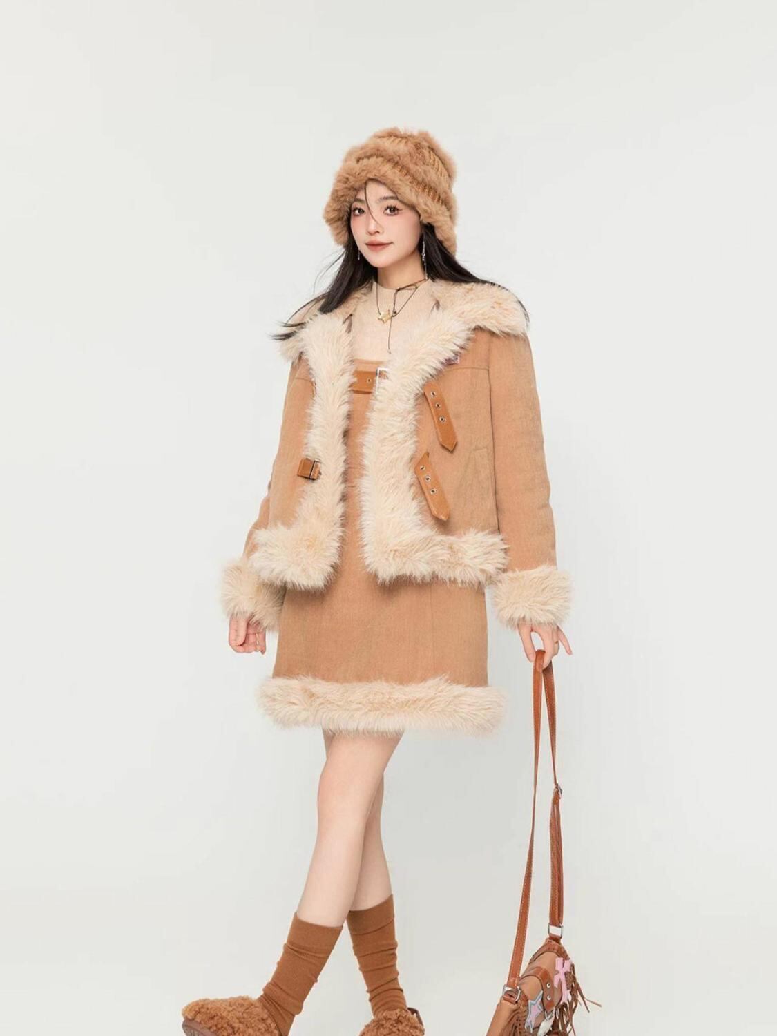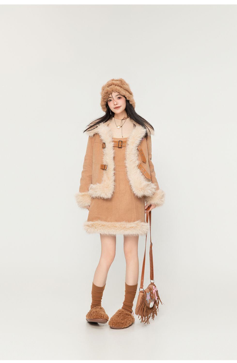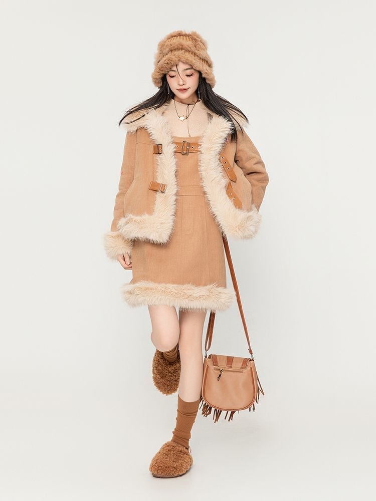 アクティブも綺麗も叶う 求めてたデザイン ぬいぐるみジャケットⅹサスペンダースカートセットE-9915