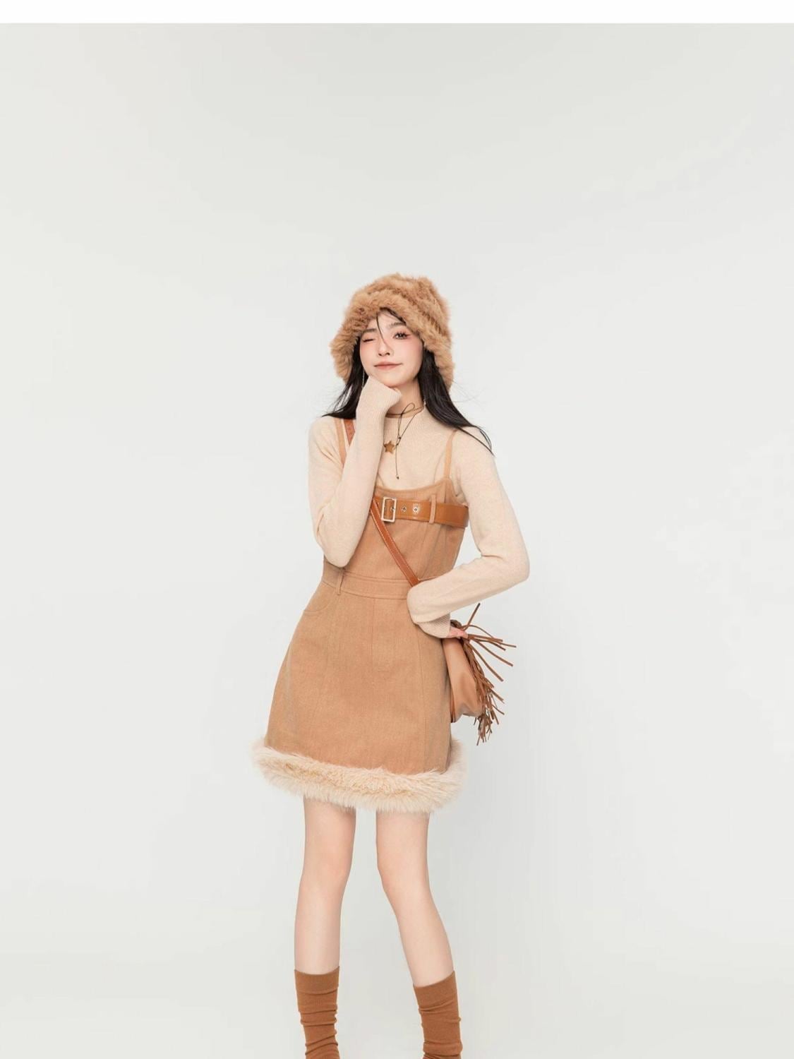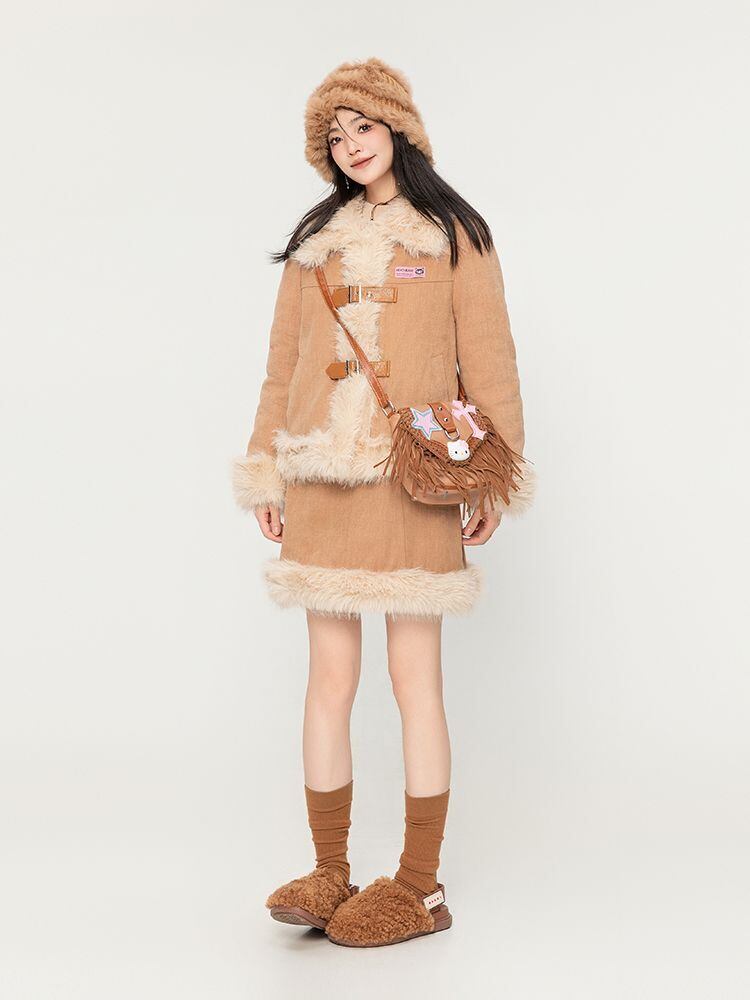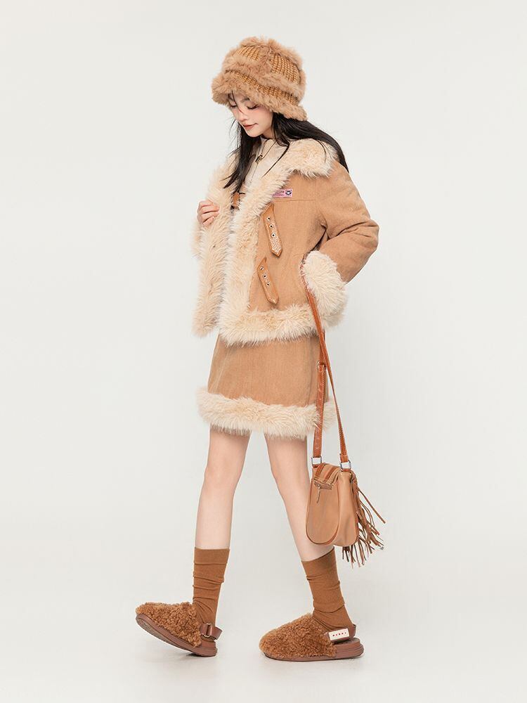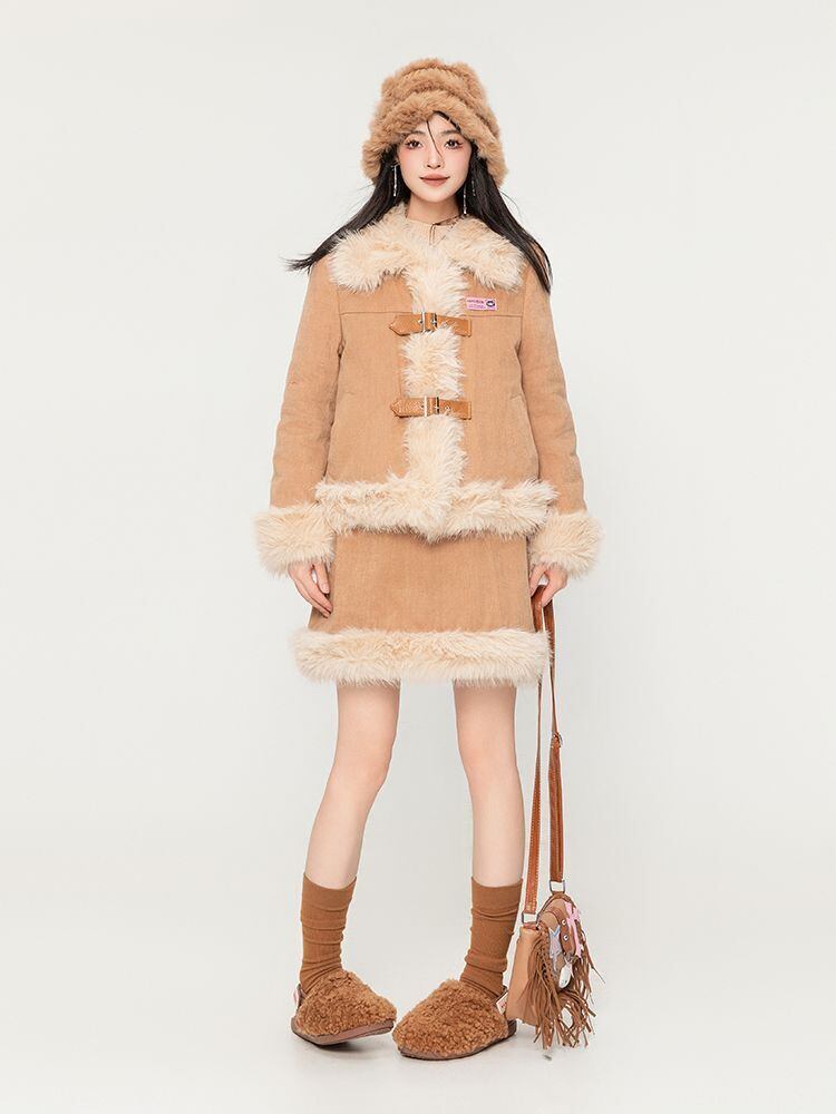アクティブも綺麗も叶う 求めてたデザイン ぬいぐるみジャケットⅹサスペンダースカートセットE-9915