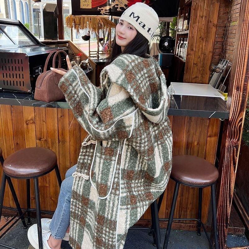 オシャレデザイン プラスベルベット デニム カーディガンE-10305
