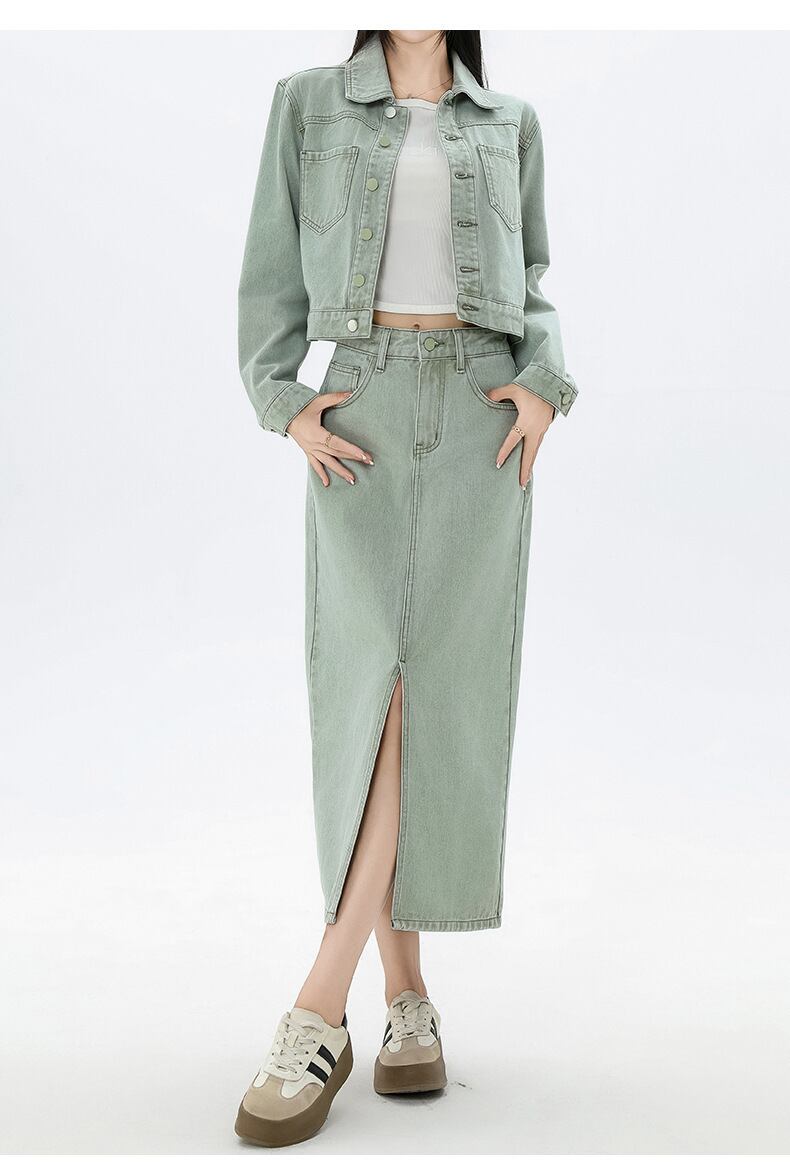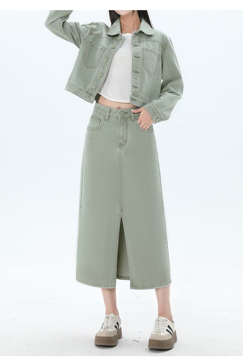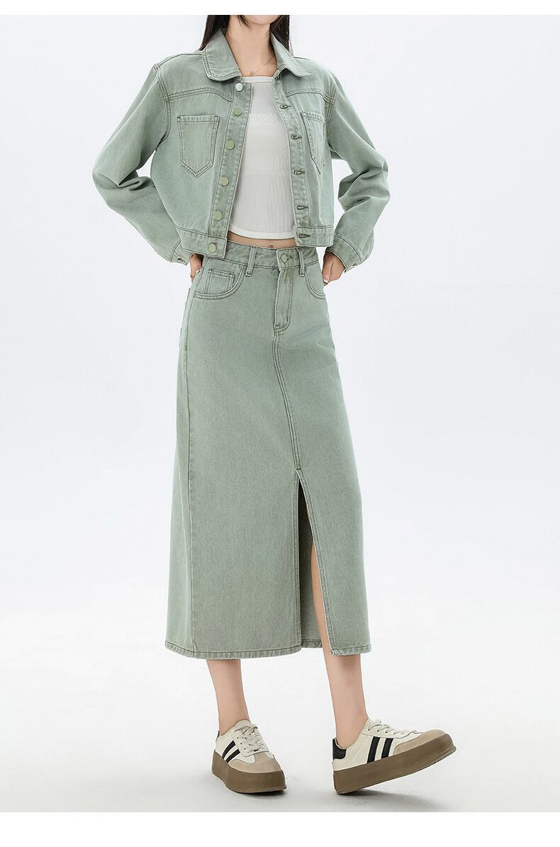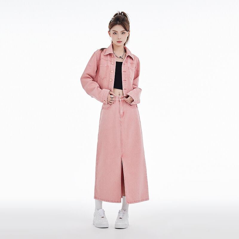 カジュアル 長袖 定番シンプル ジャケット+スカート セットアップ E-10943
