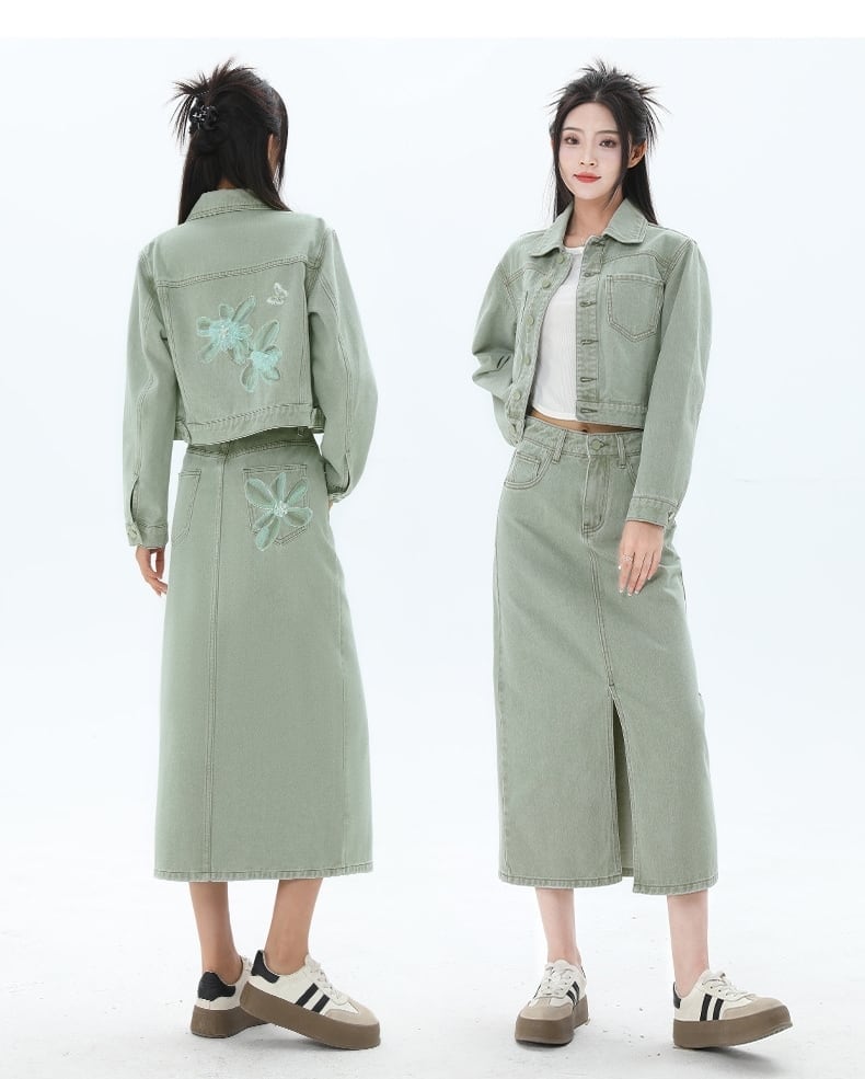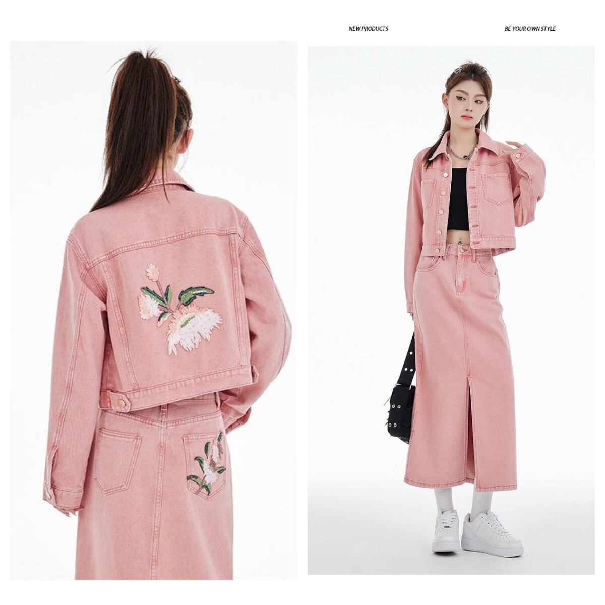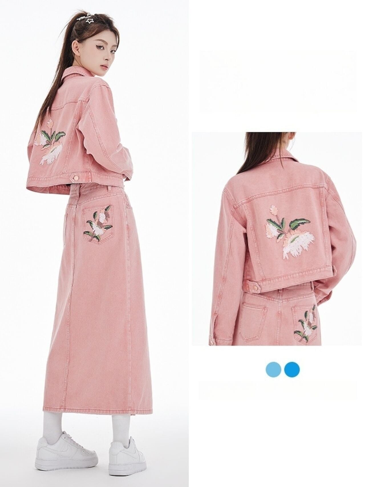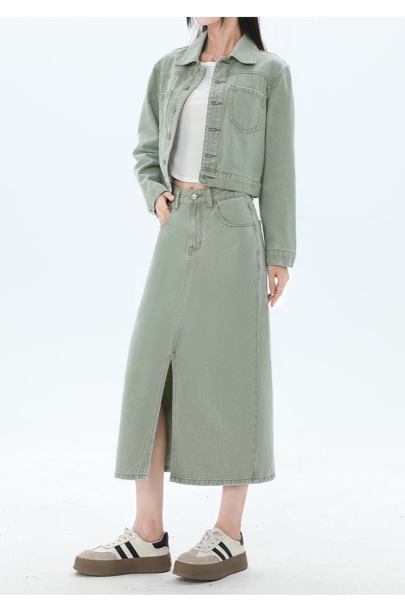 カジュアル 長袖 定番シンプル ジャケット+スカート セットアップ E-10943