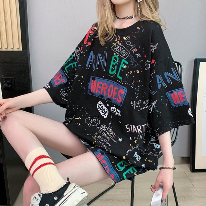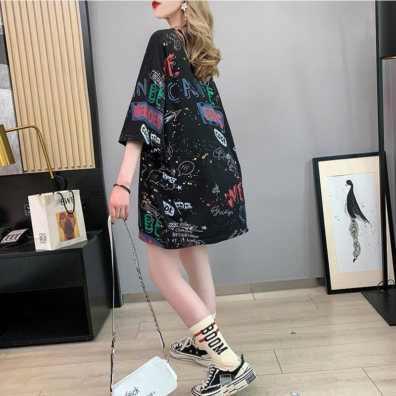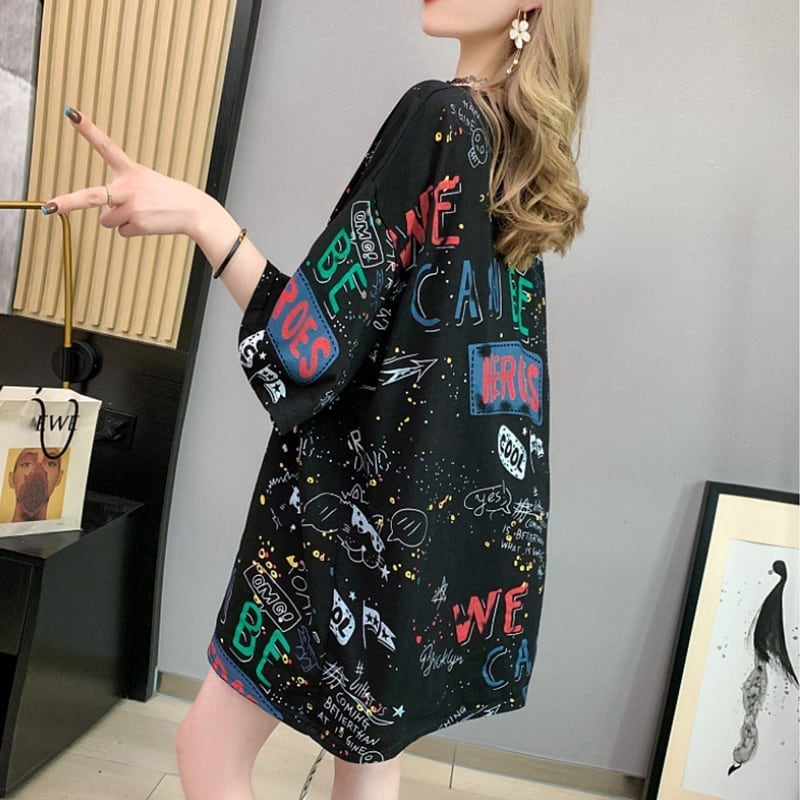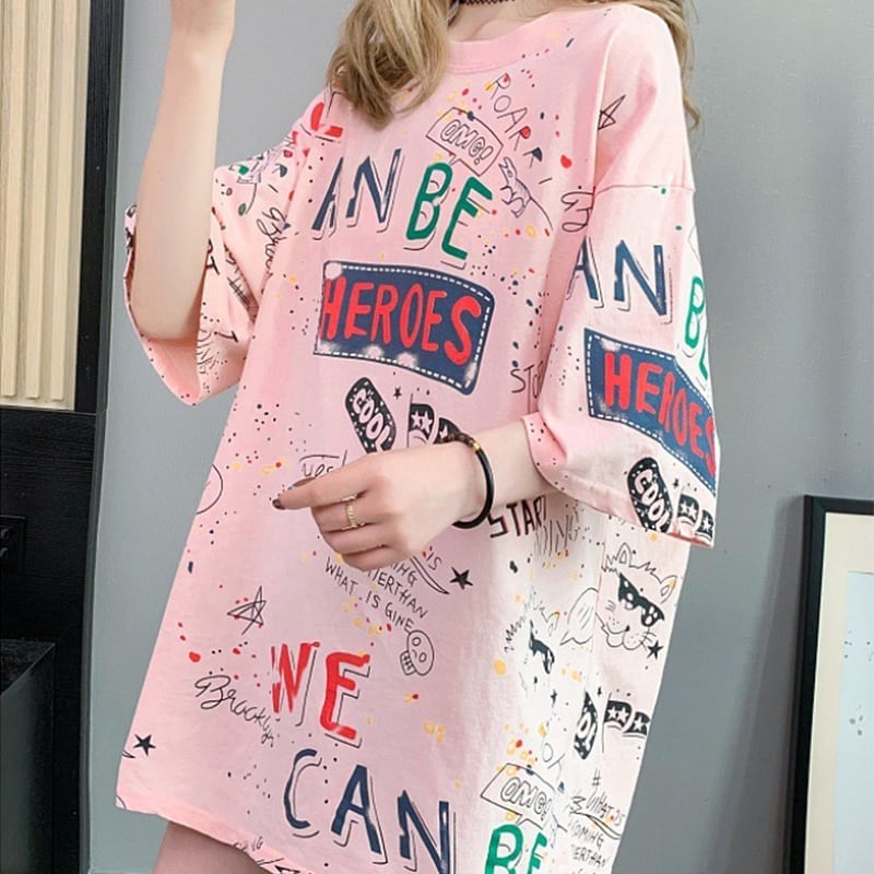 スタイリッシュ 一目惚れ 切り替え プリント Tシャツ カットソー<ins-3540>