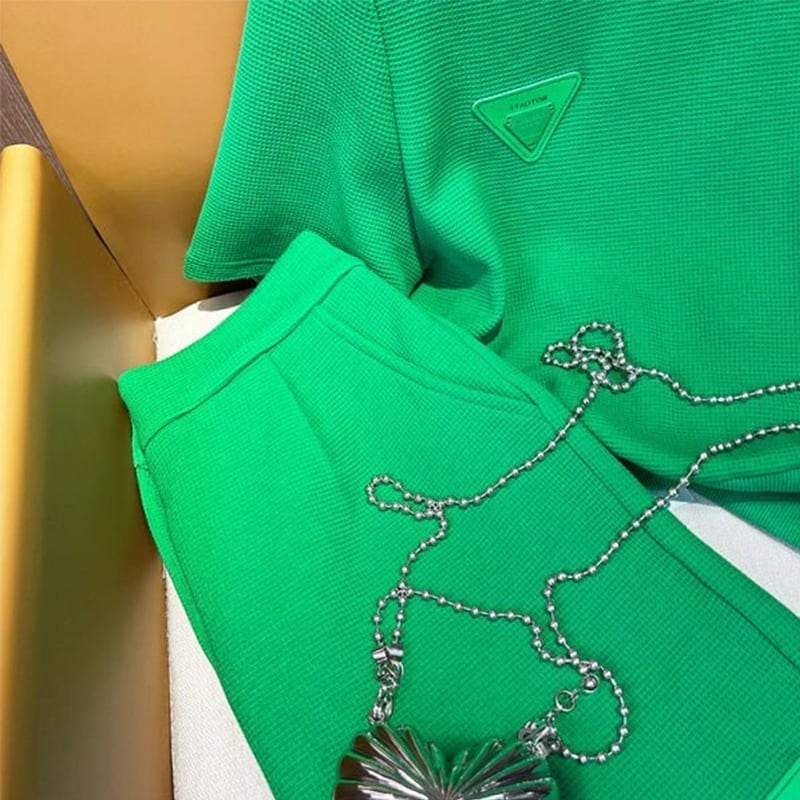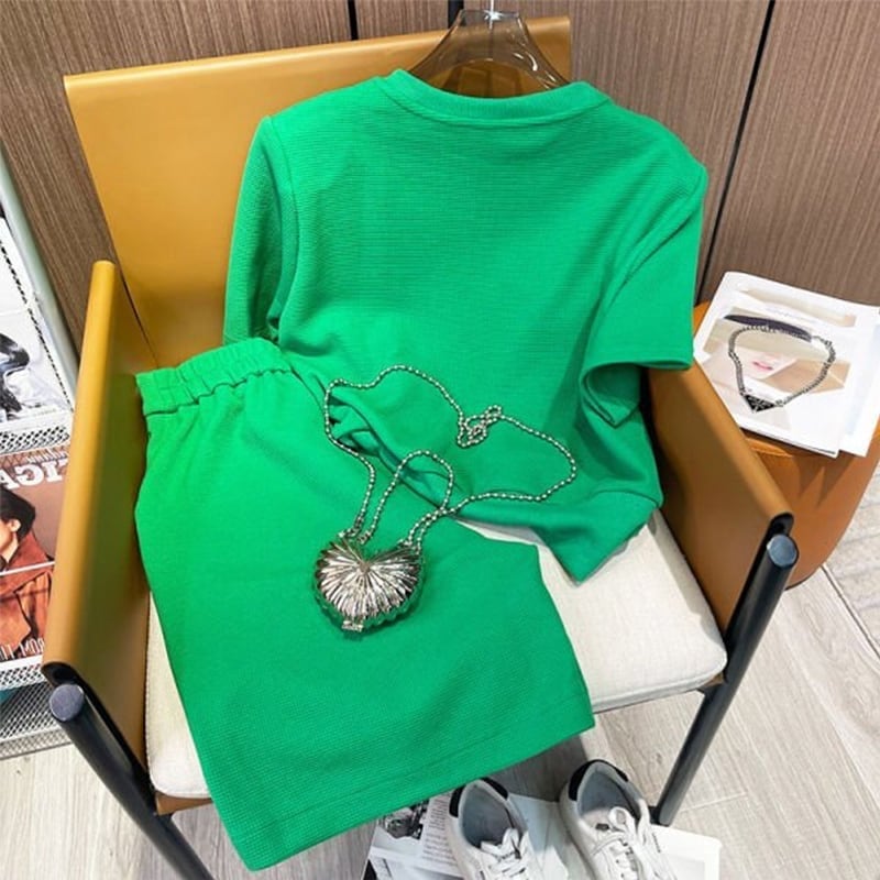 スタイリッシュ 一目惚れ 切り替え Tシャツ+ショートパンツ セットアップ<ins-3488>