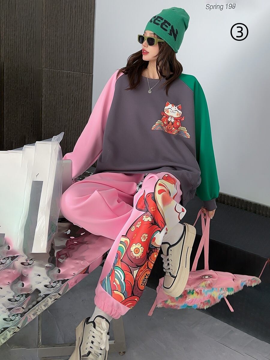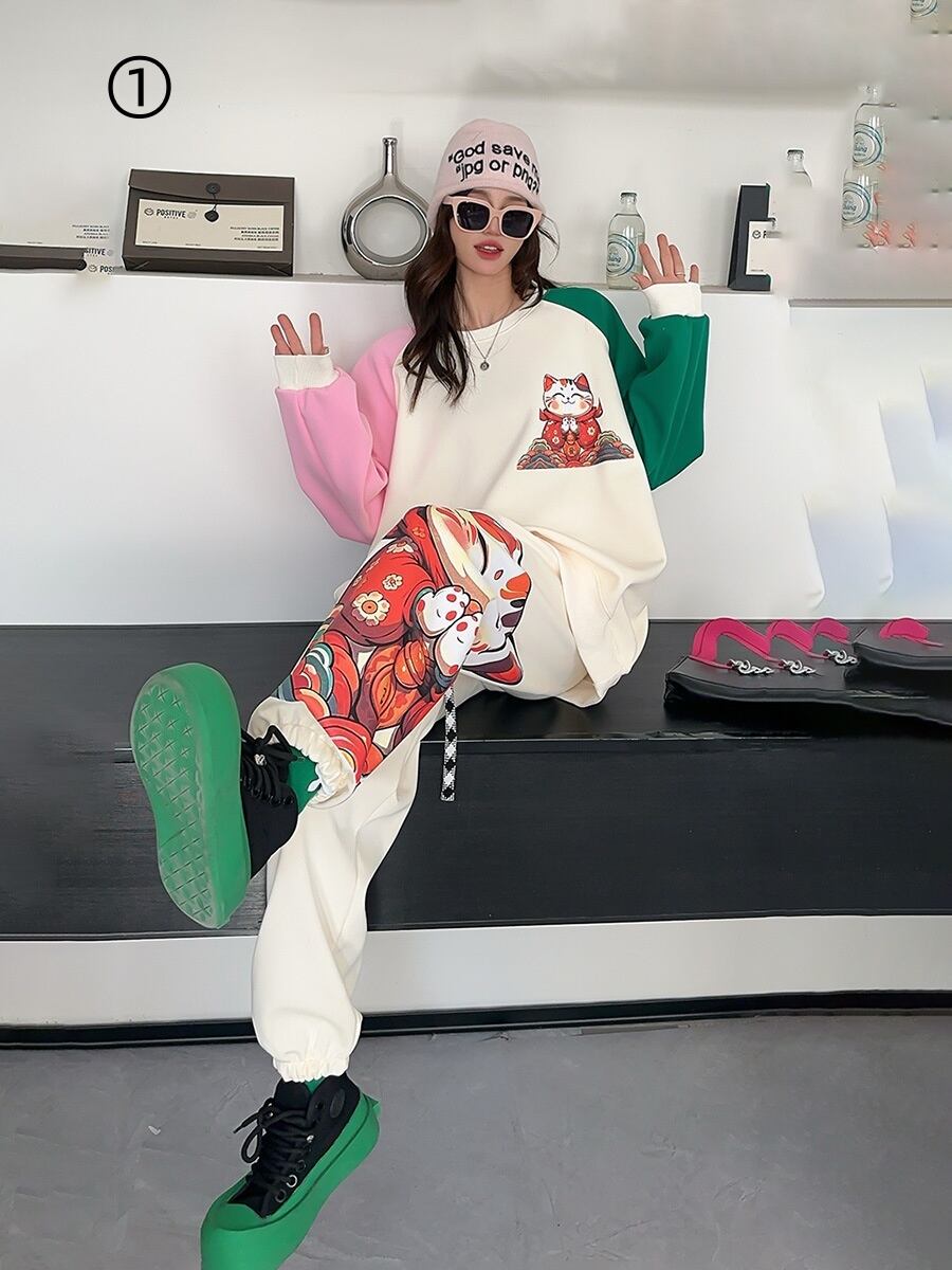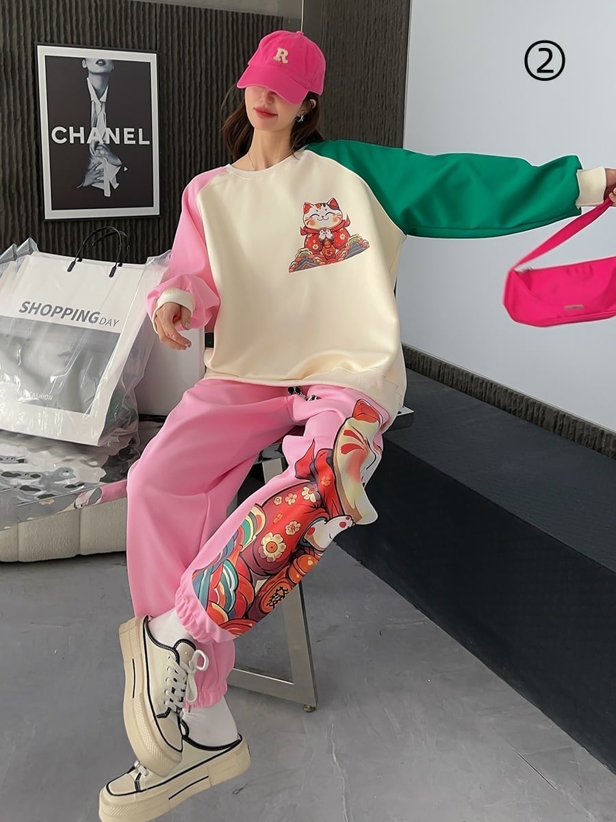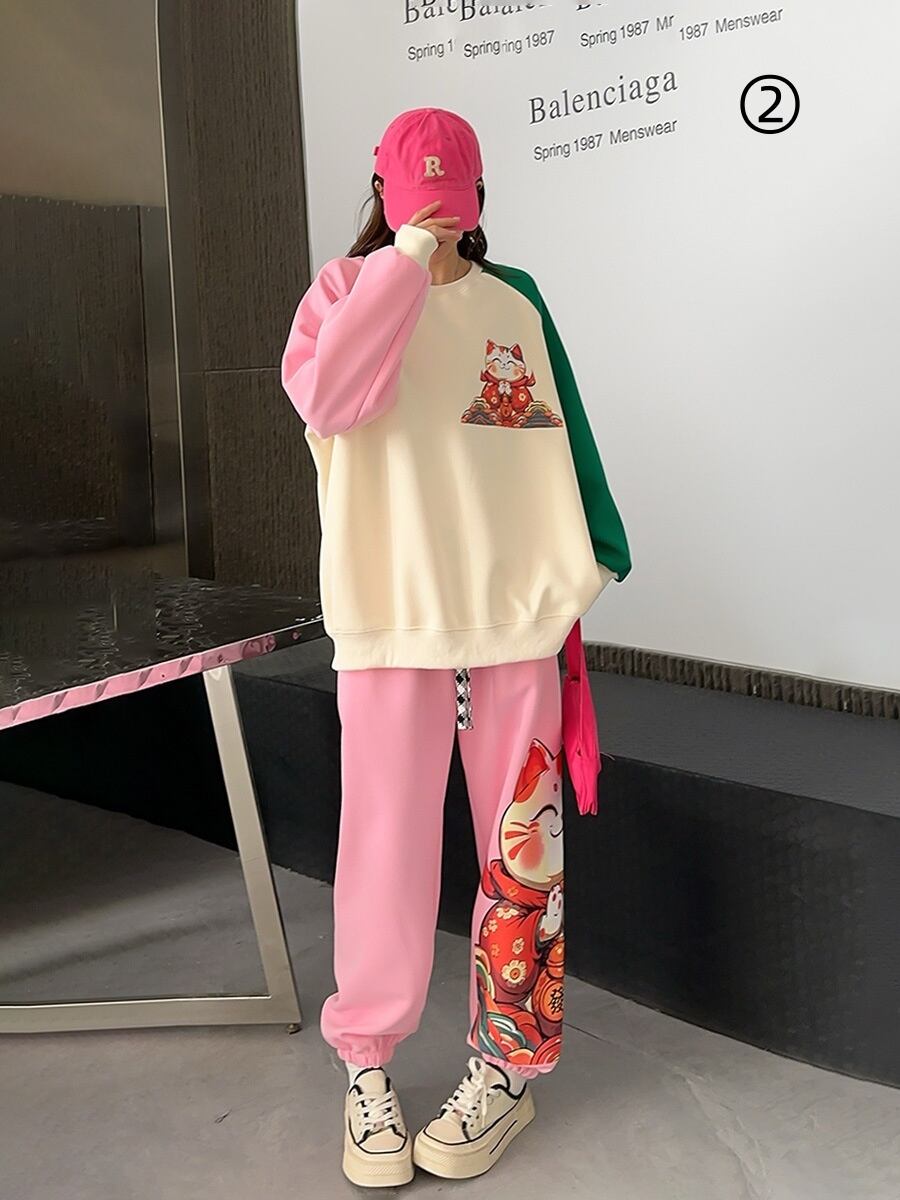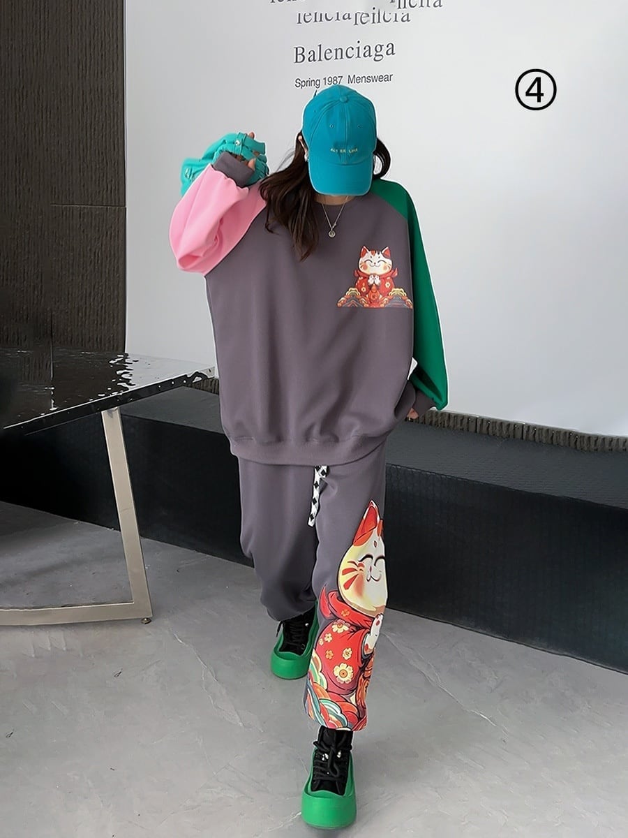 スタイルアップ効果抜群 4色選択 プリント パーカー+ショートパンツ セットアップE-10456