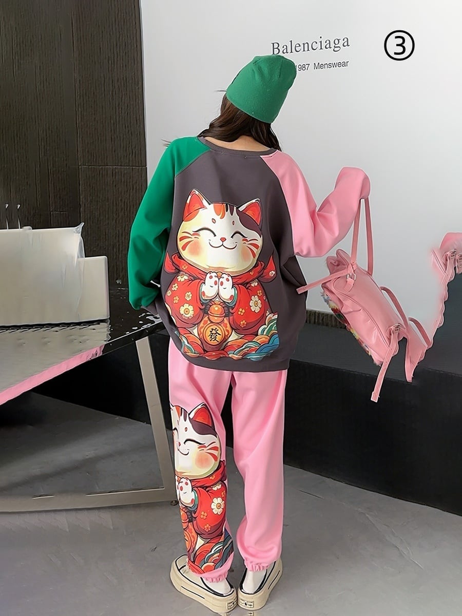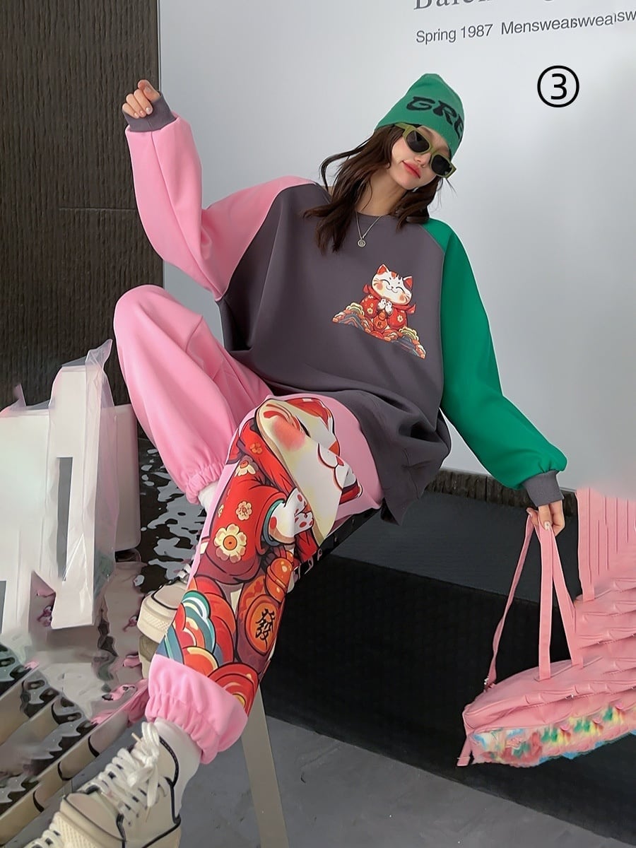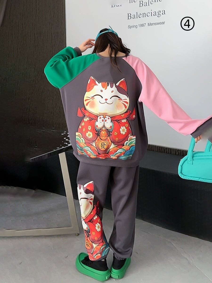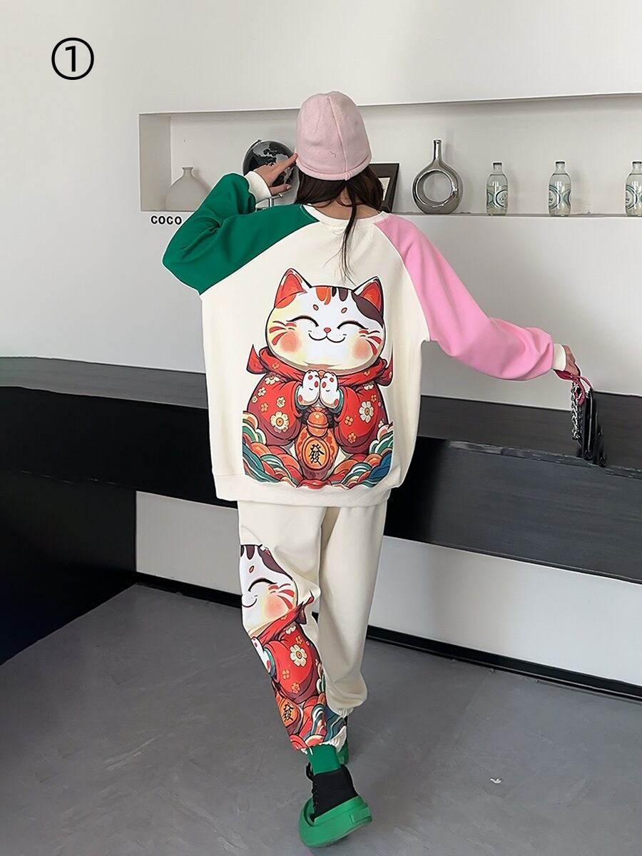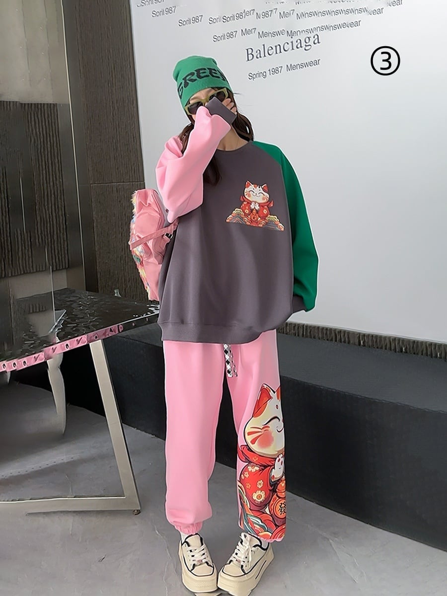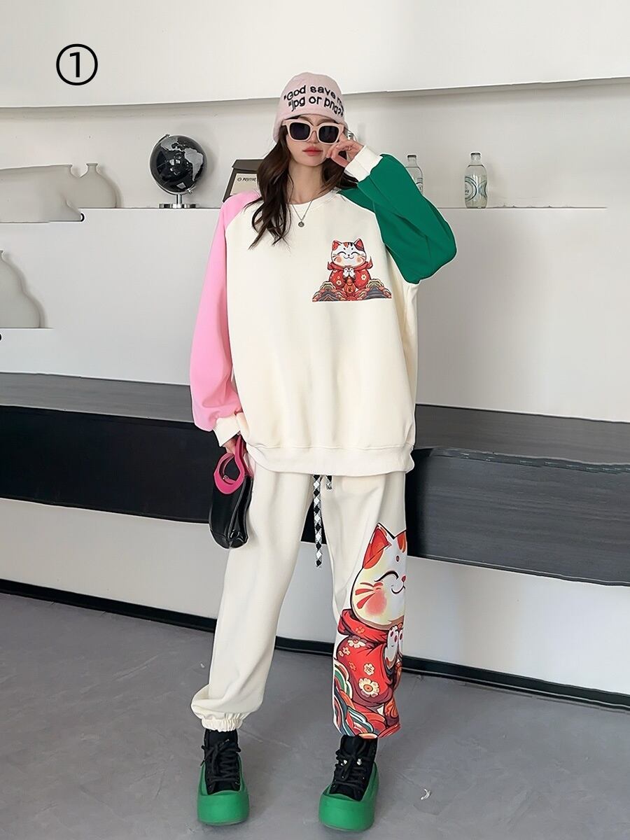 スタイルアップ効果抜群 4色選択 プリント パーカー+ショートパンツ セットアップE-10456