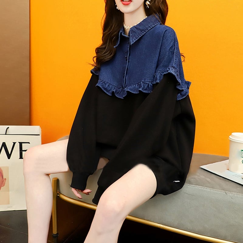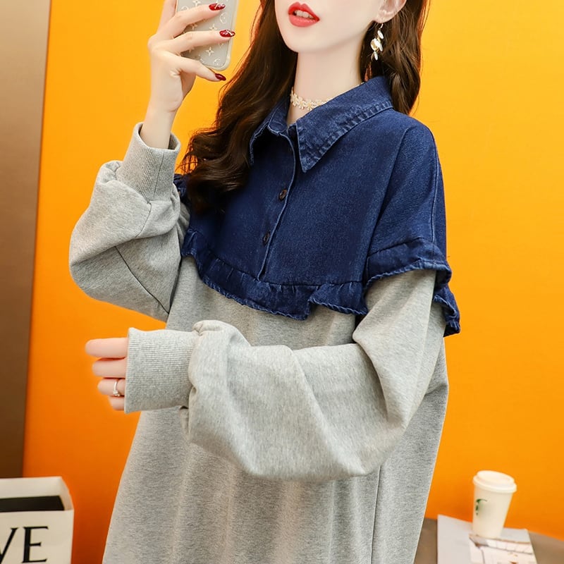 デザイン感 デイリー 長袖 切り替え スウェット パーカー トップスins-2267
