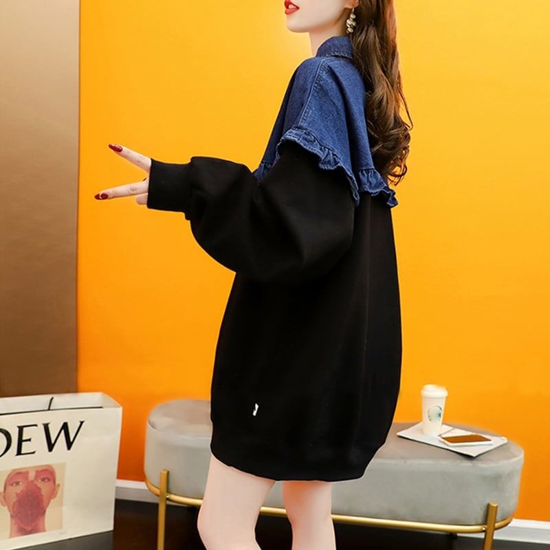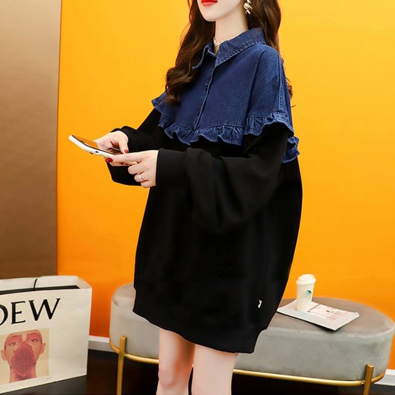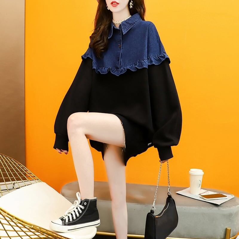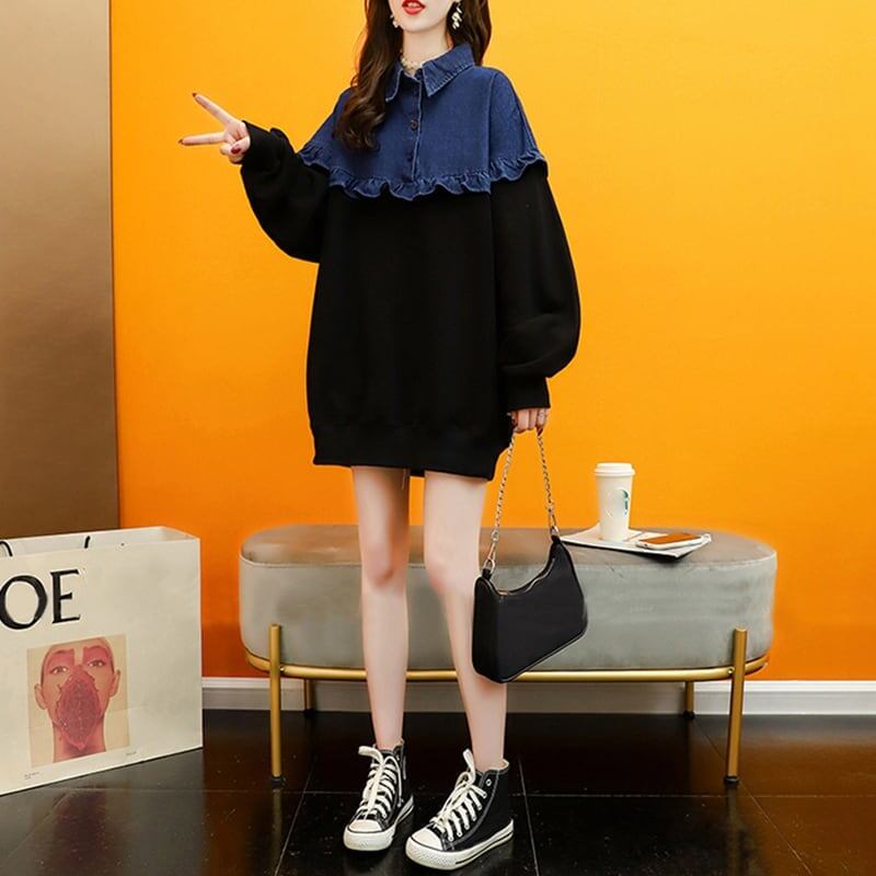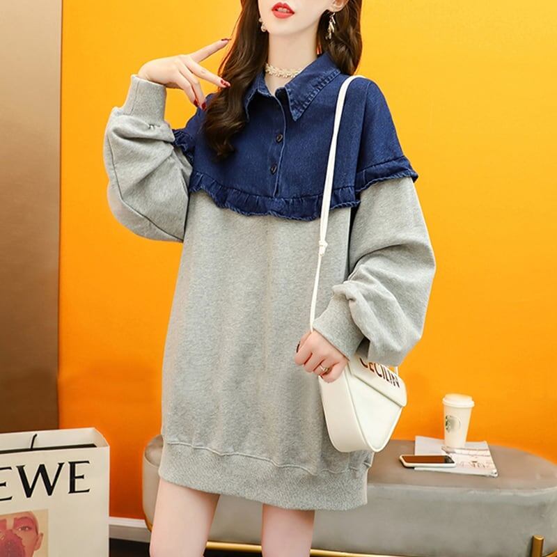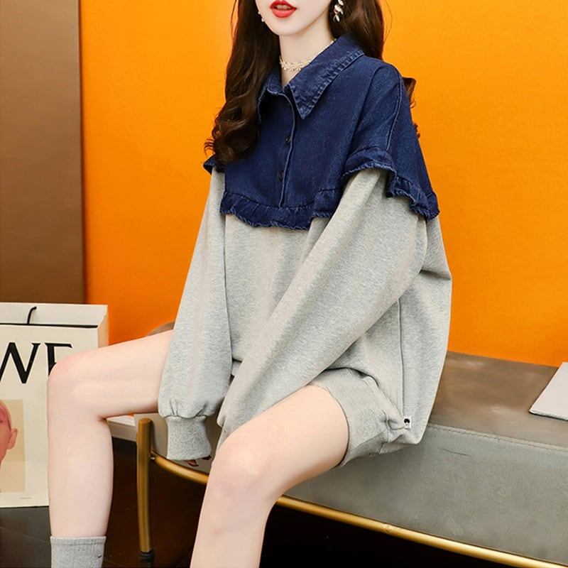 デザイン感 長袖 デイリー 切り替え スウェット スウェットE-2267