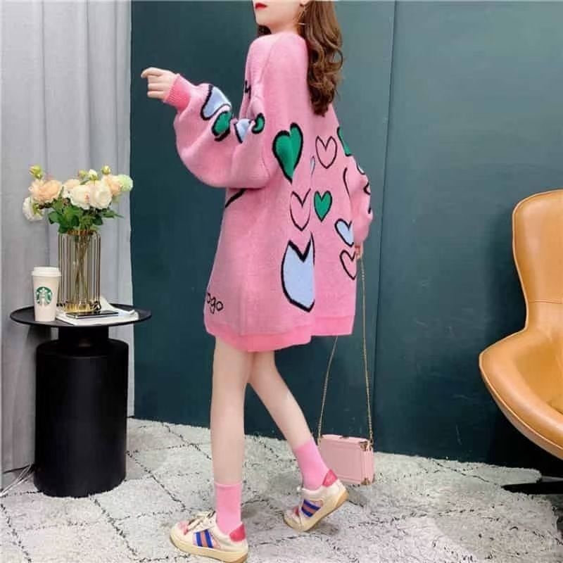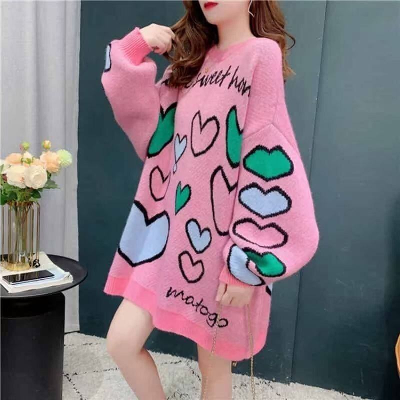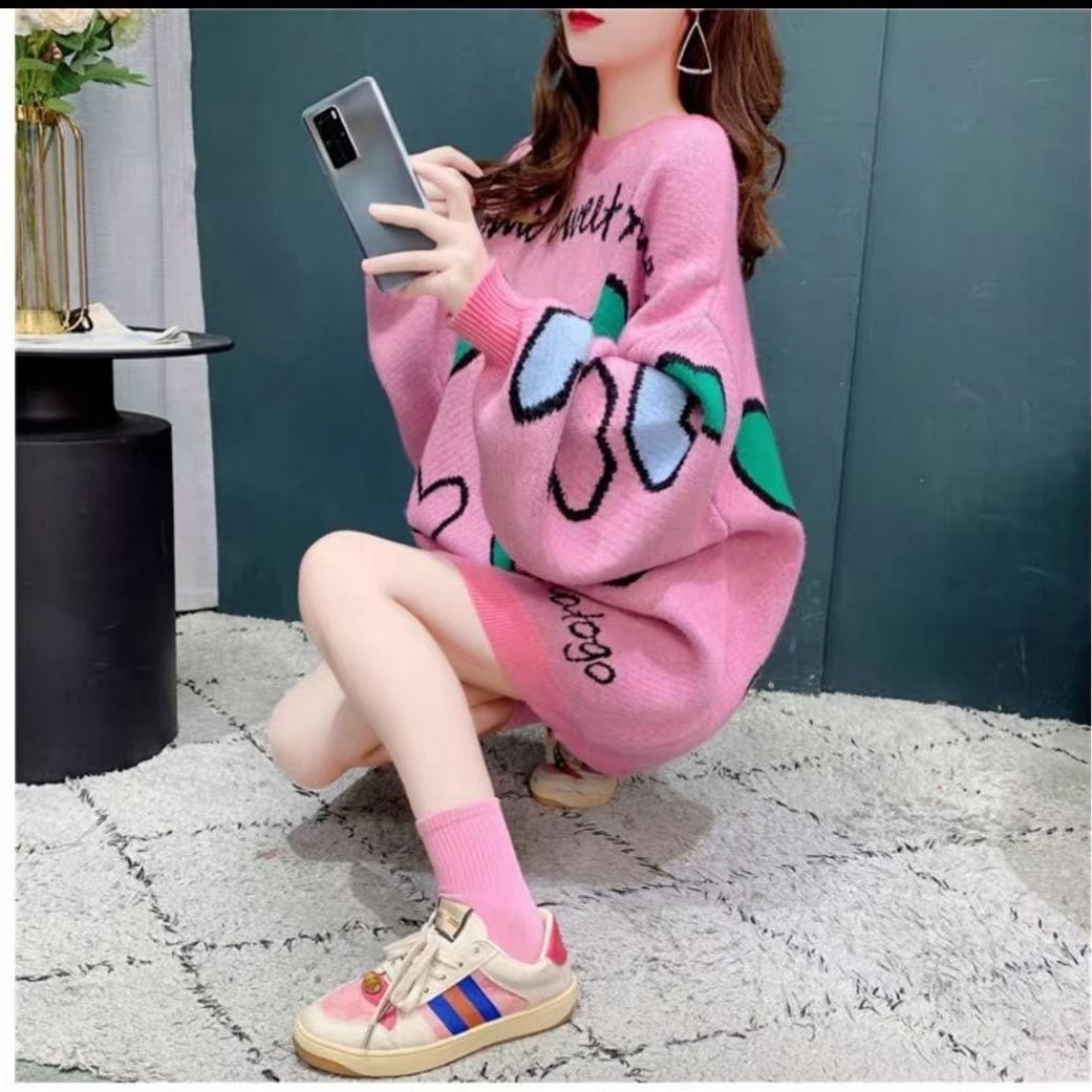 ラウンドネック 女性力を高める プリント ニットE-12380