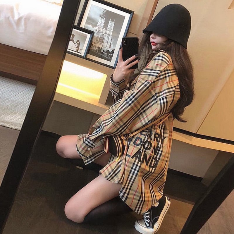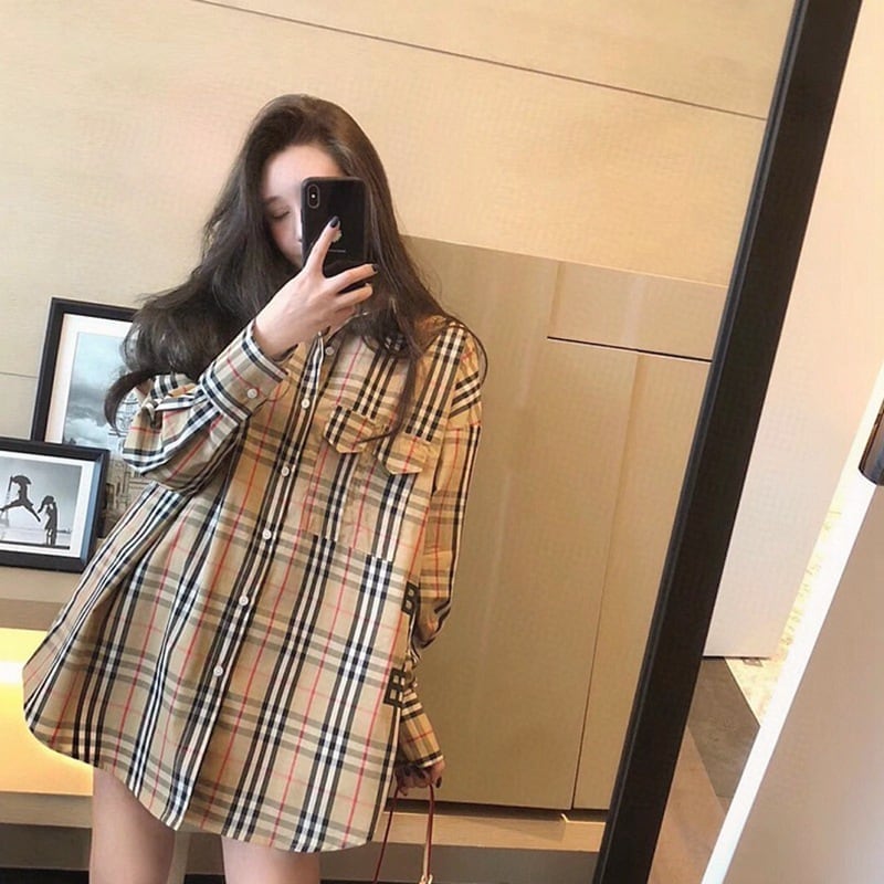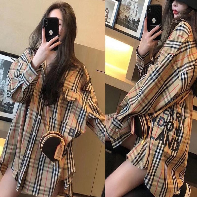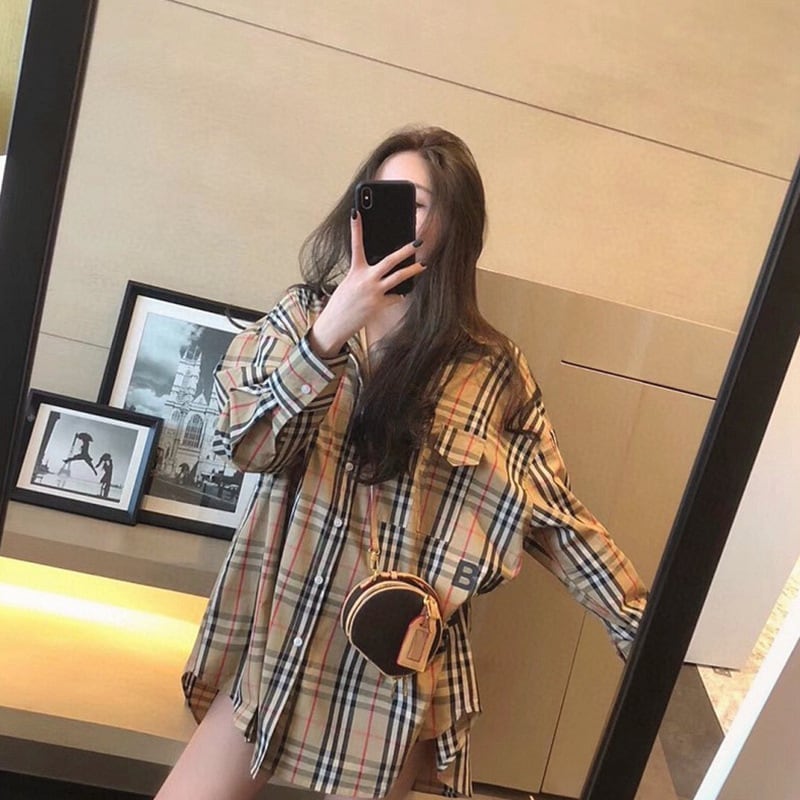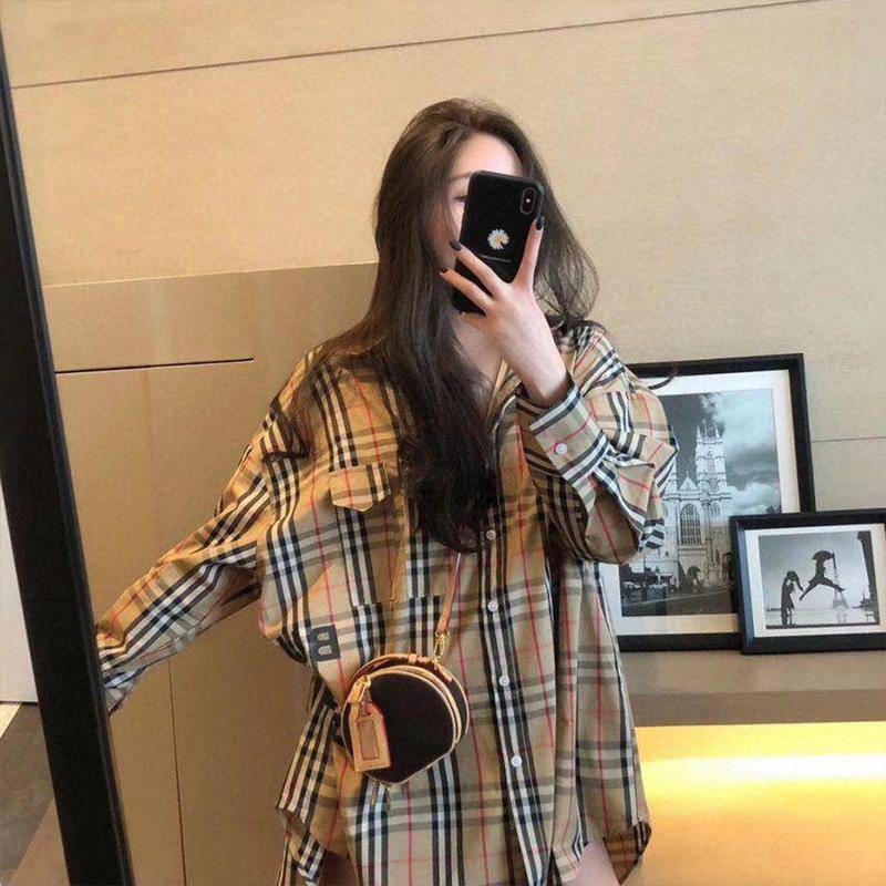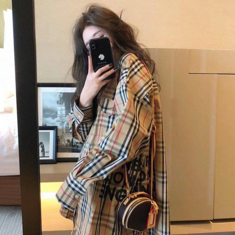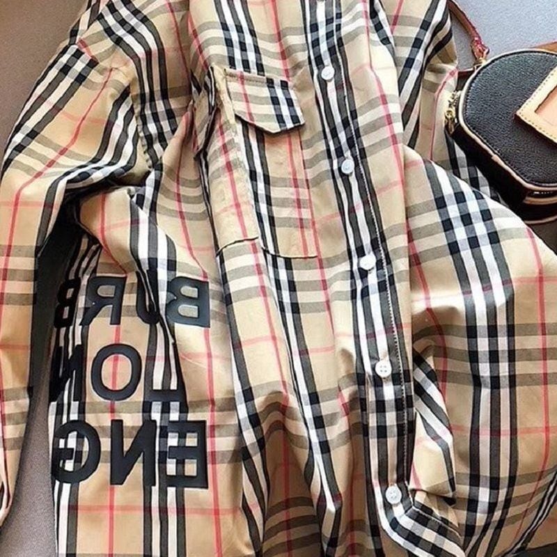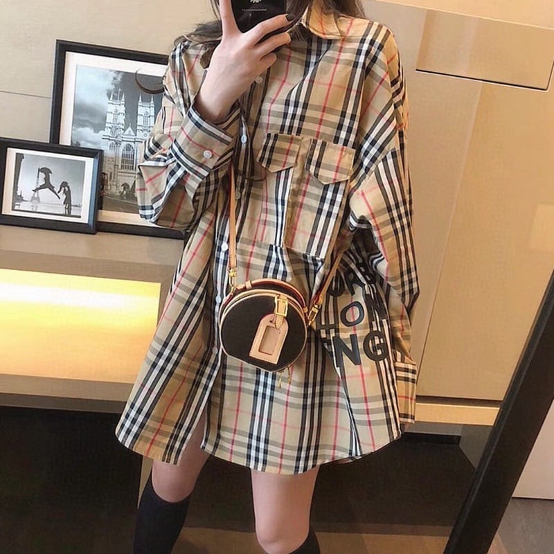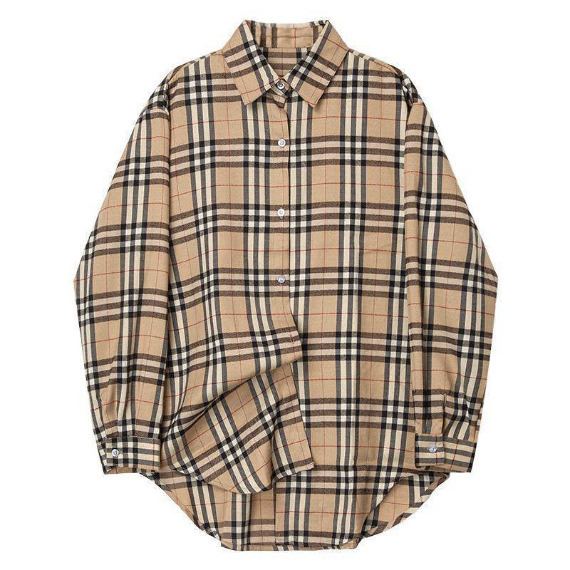 【ランキングNO.5】着痩せ チェック柄 レトロ 長袖 アルファベット シャツ ブラウスE-2144