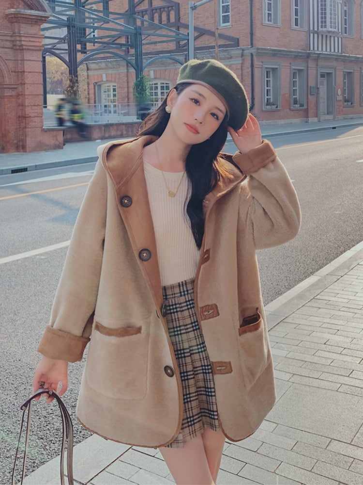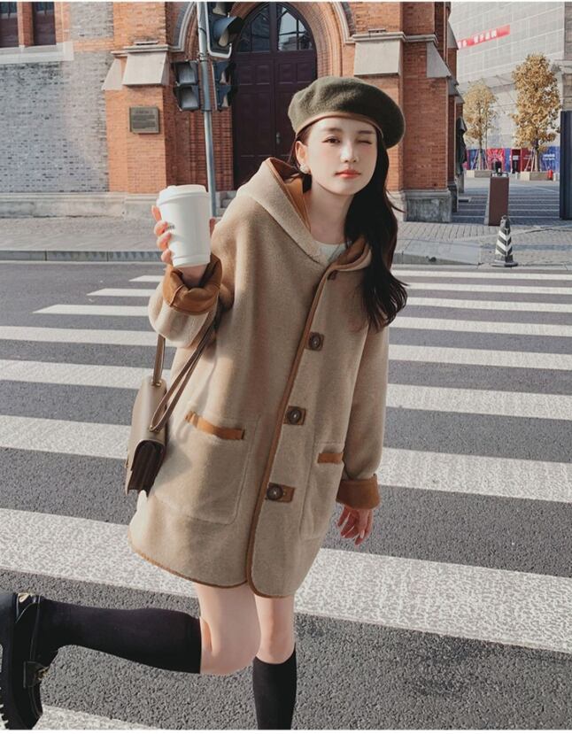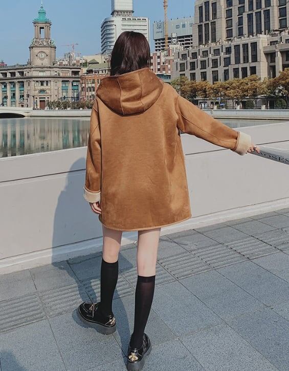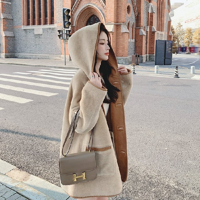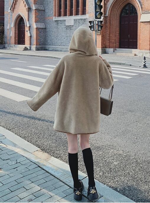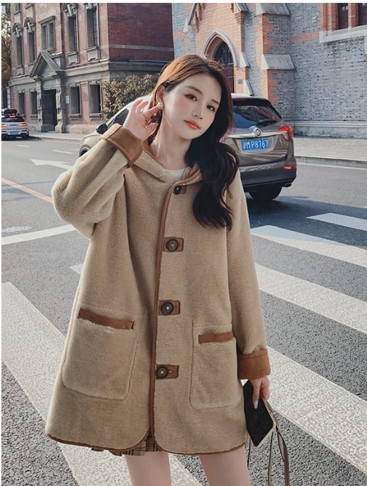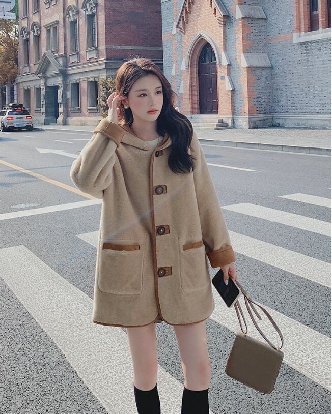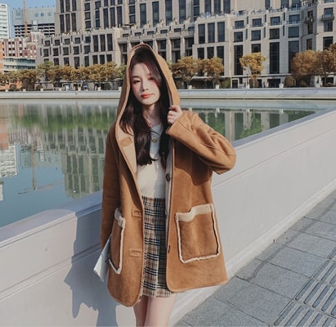 【リバーシブル】主役級の存在感!スタイルアップ カレッジ風 リバーシブルボアムートンミドル丈コートE-10697