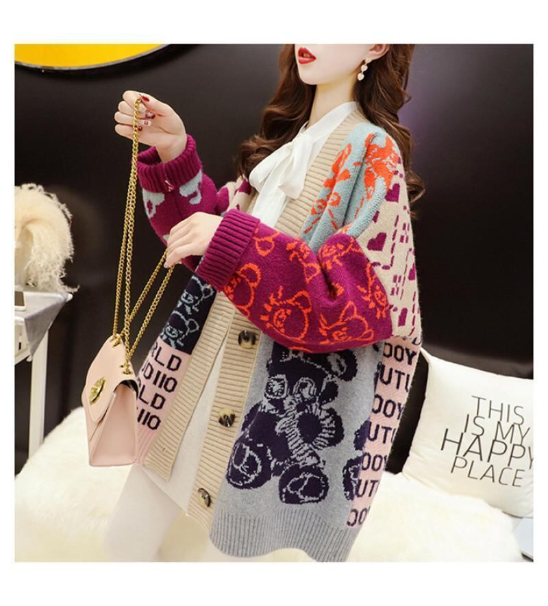 ルーズレイジースタイル漫画セーターカーディガントE-5021