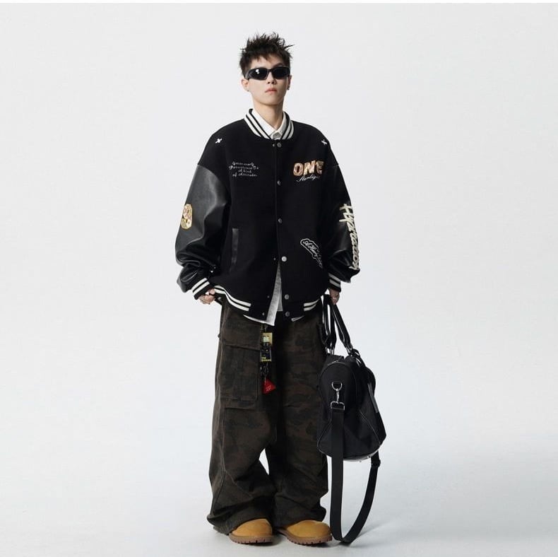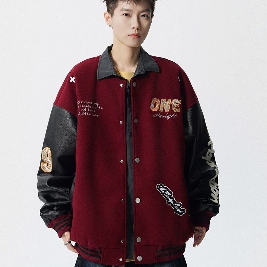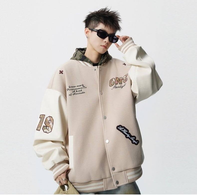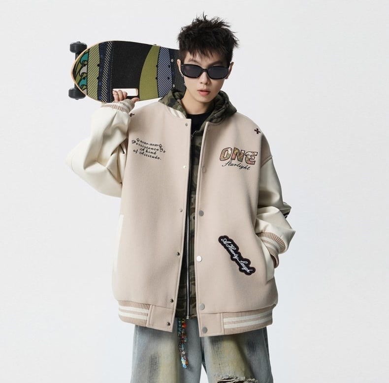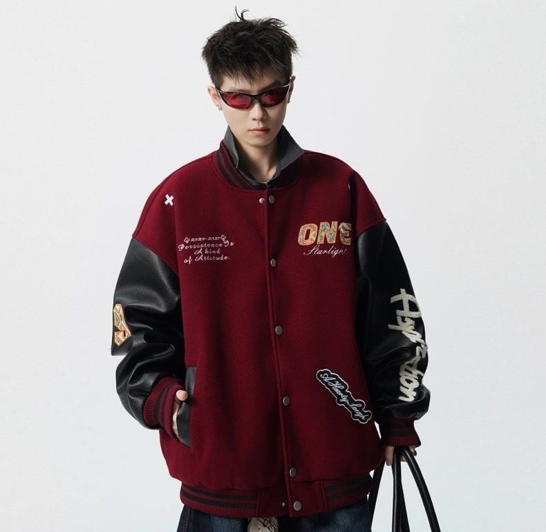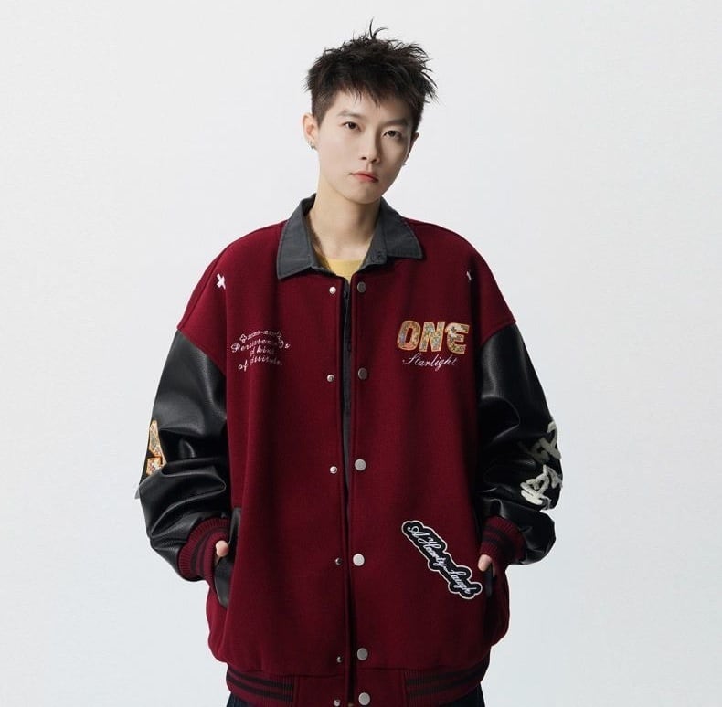 【中棉】人気爆発中 アメリカンレトロ 配色切り替え 刺繍ロゴ ユニセックス スタジャンE-12627