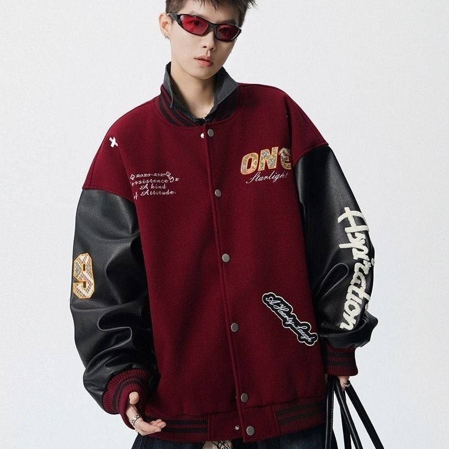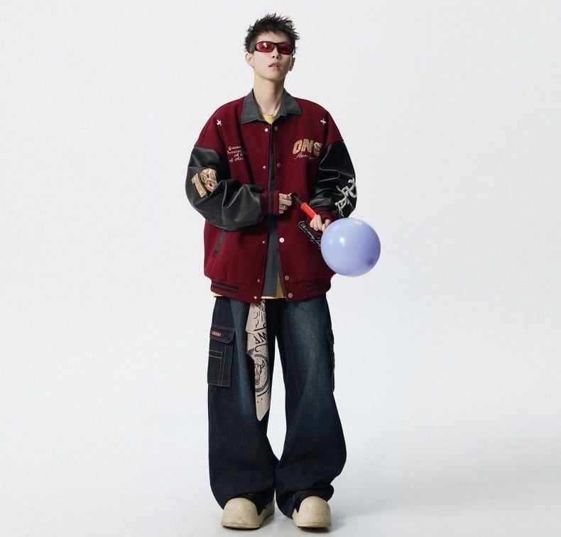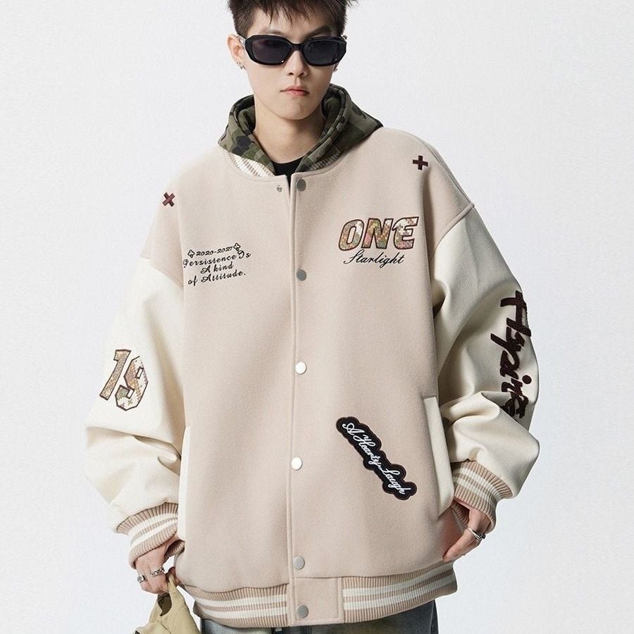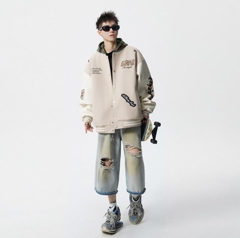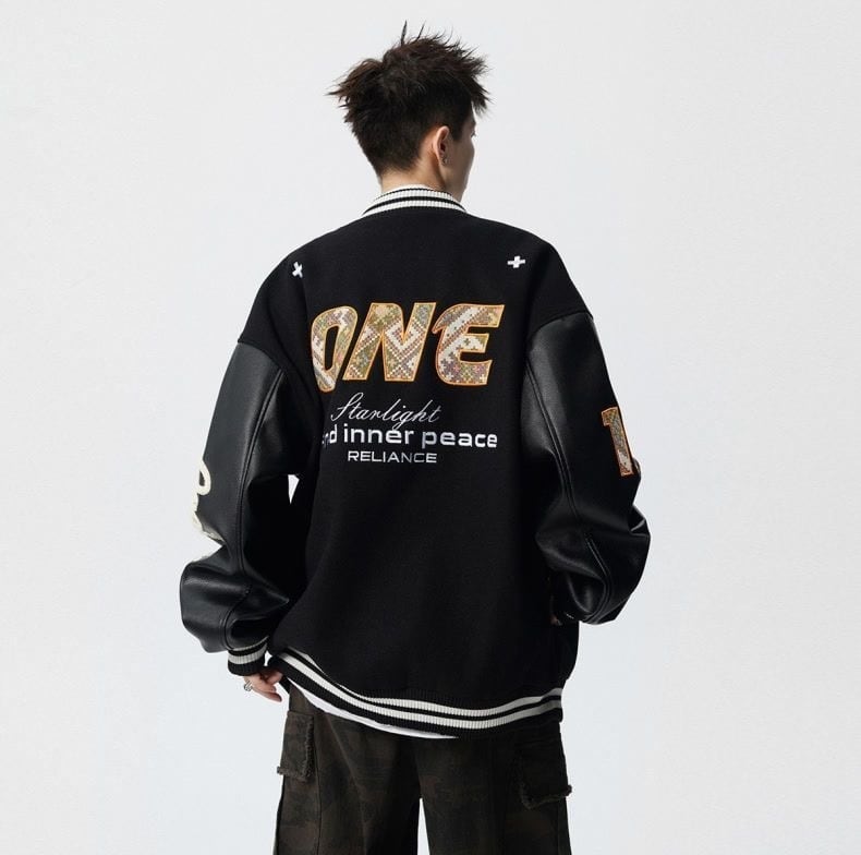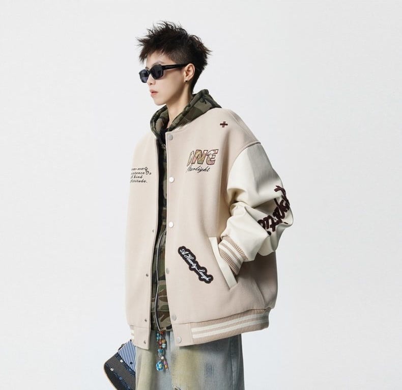 【中棉】人気爆発中 アメリカンレトロ 配色切り替え 刺繍ロゴ ユニセックス スタジャンE-12627