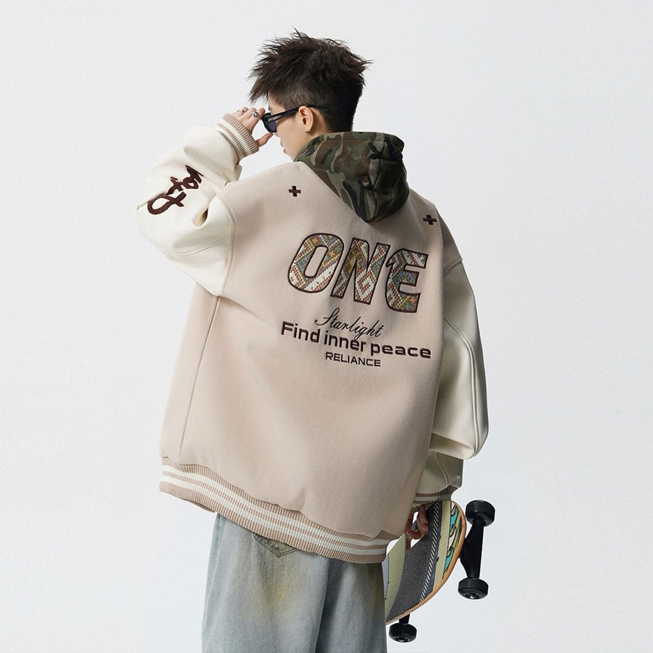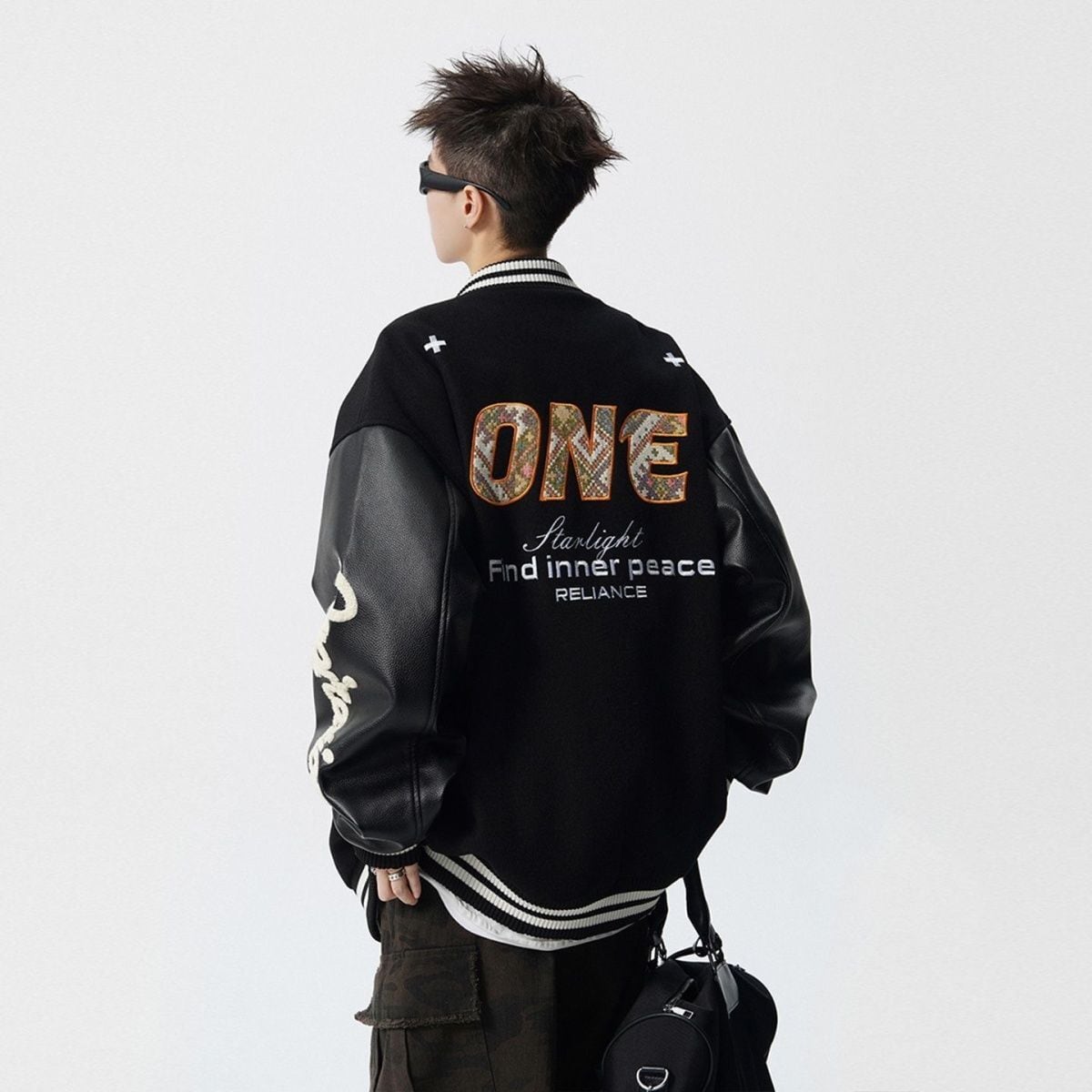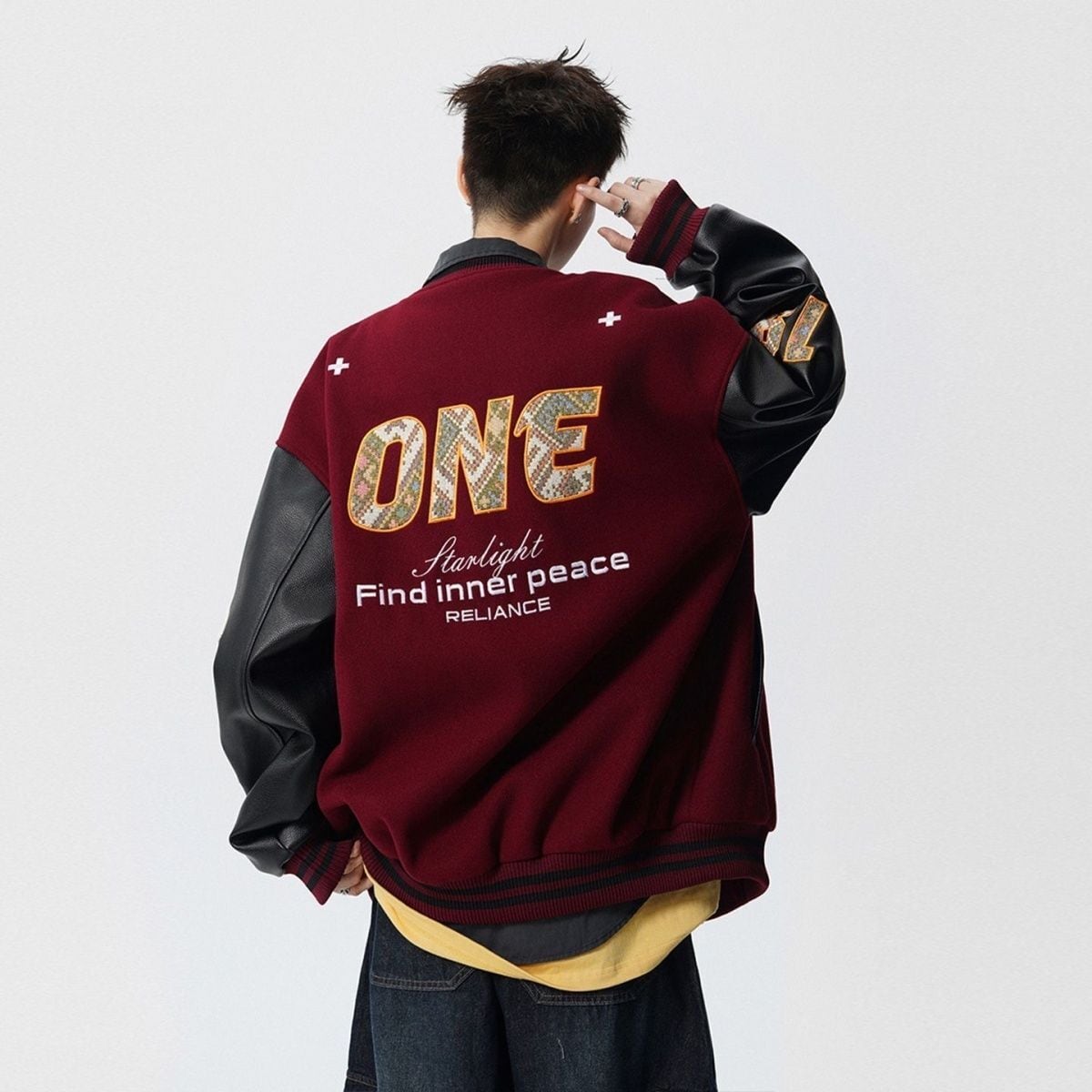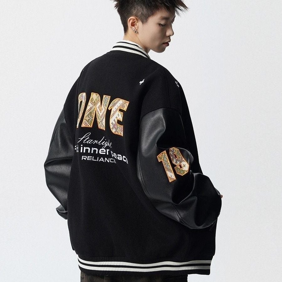 【中棉】人気爆発中 アメリカンレトロ 配色切り替え 刺繍ロゴ ユニセックス スタジャンE-12627