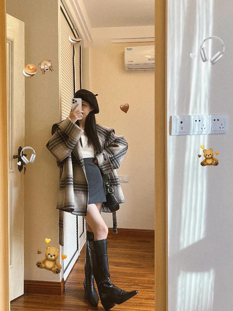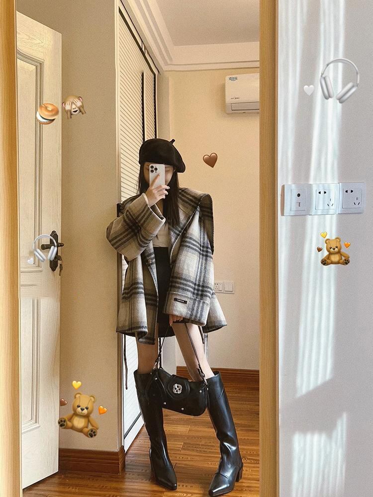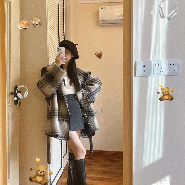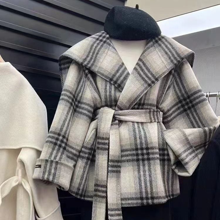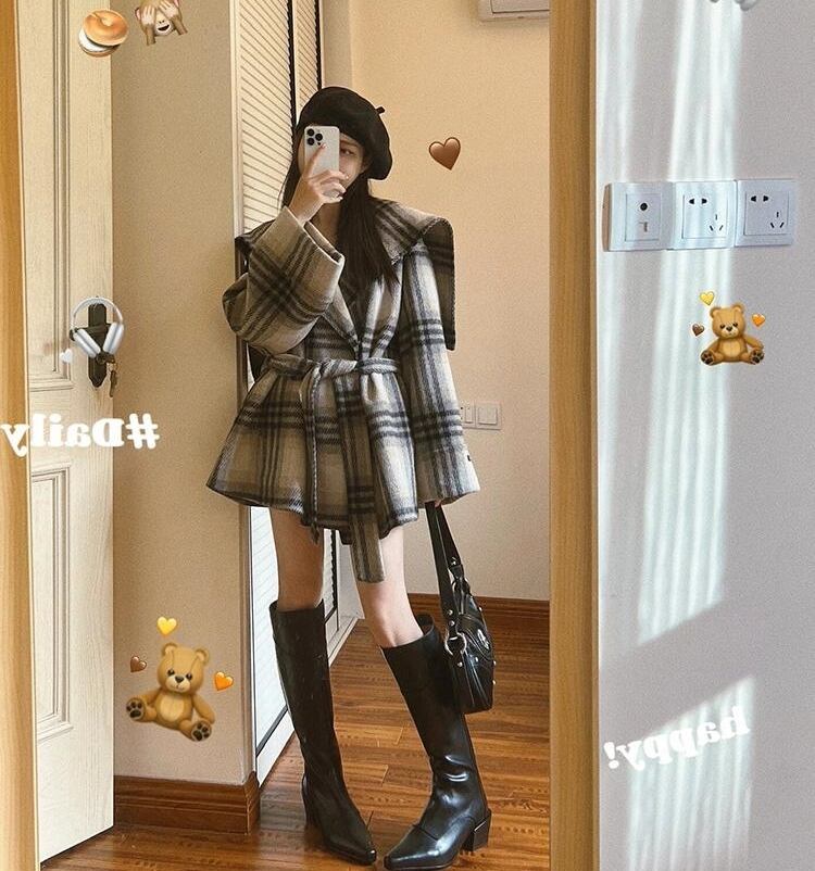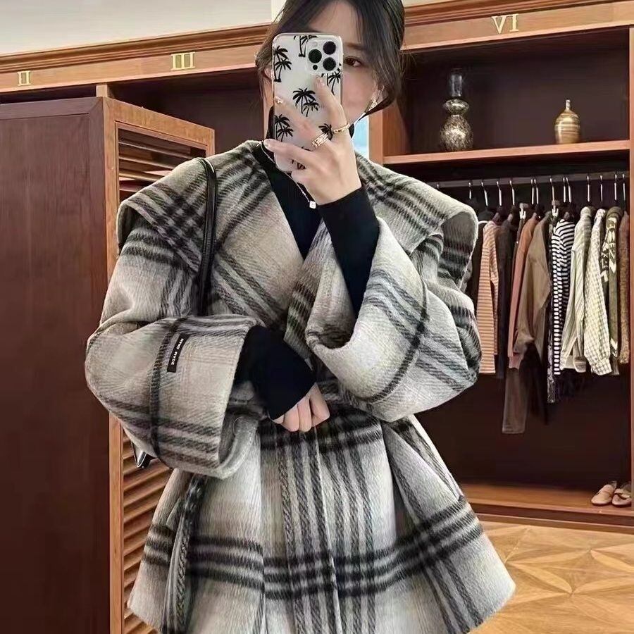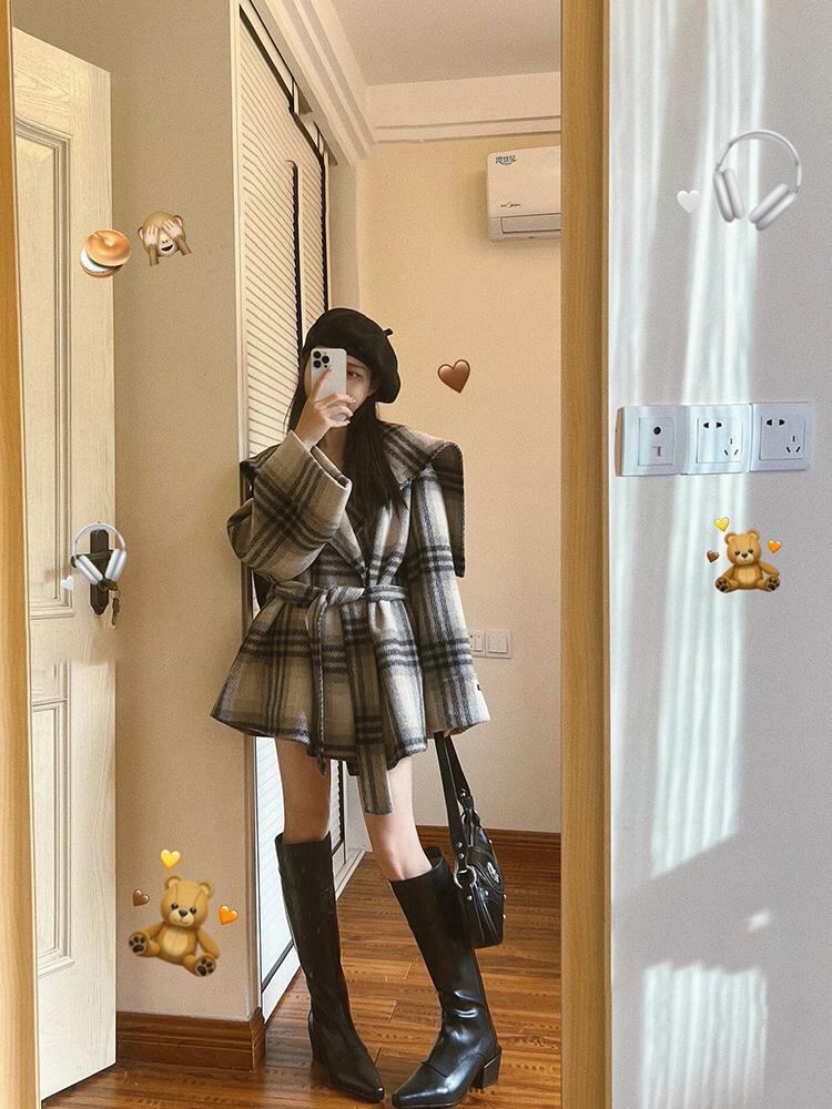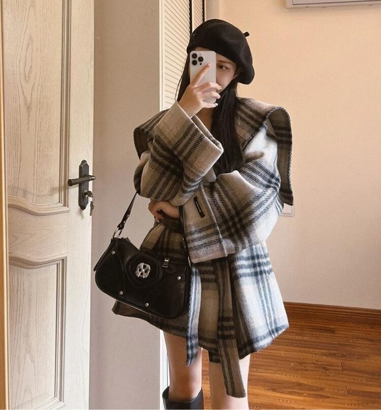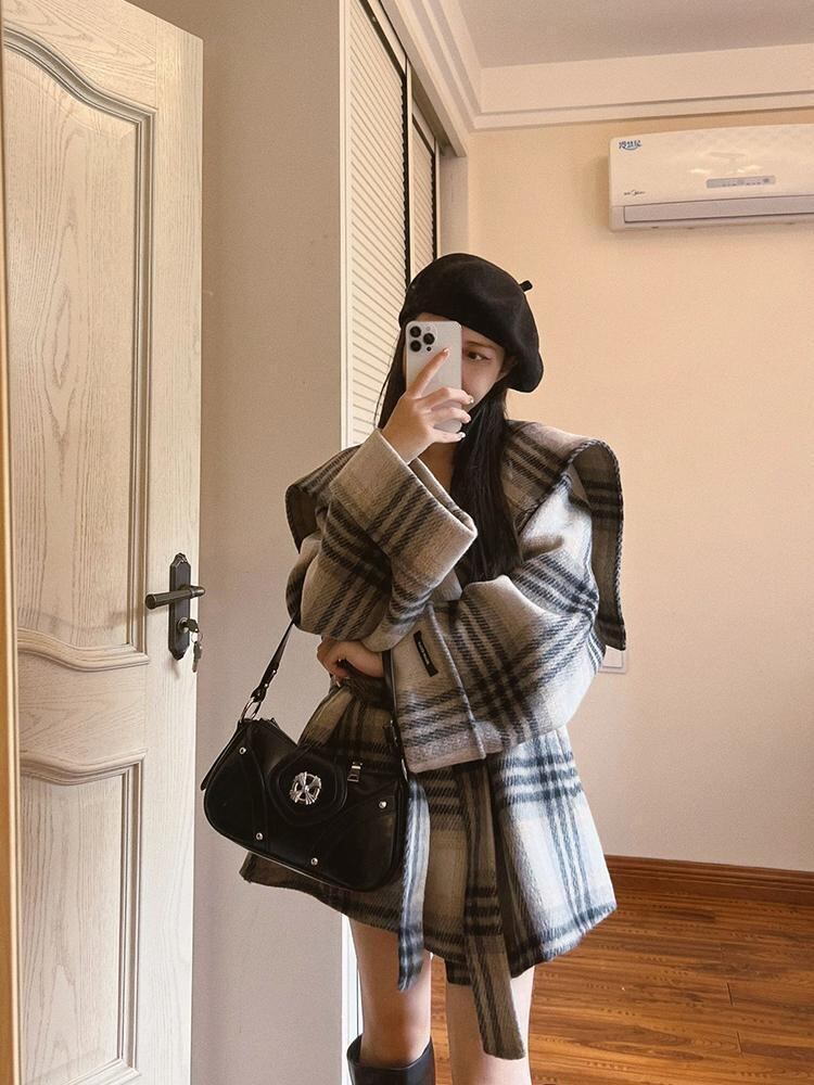 主役級の存在感!気質アップ おしゃれ度高め チェック柄 ウールコート E-9984