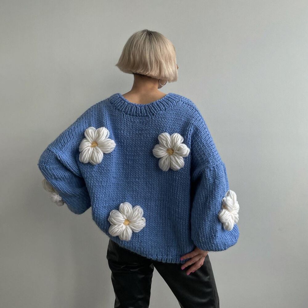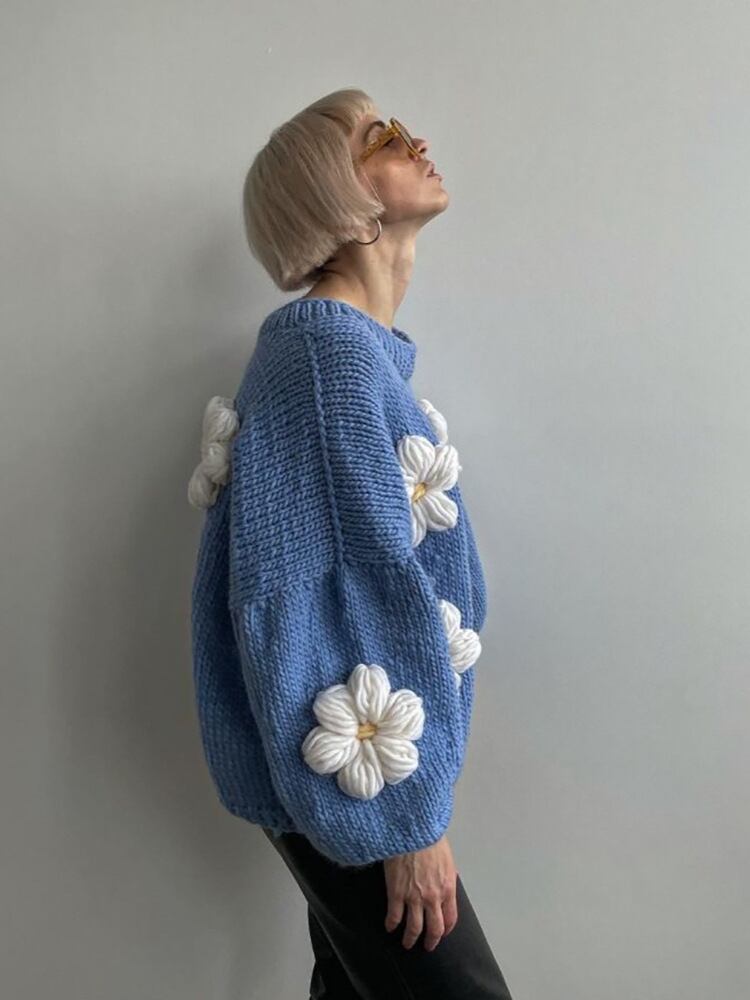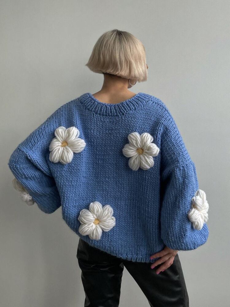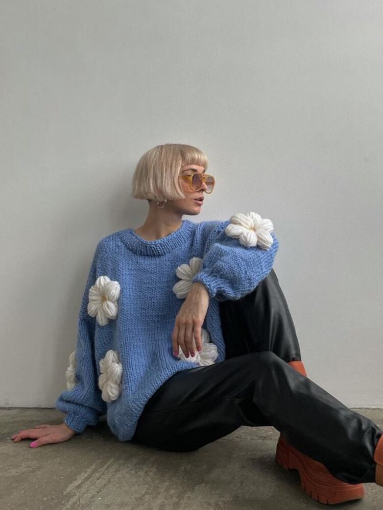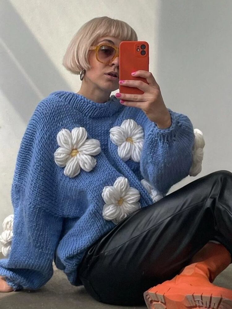 主役級の存在感! 気質アップ 着回し力抜群 立体フラワー ニットトップスE-9994