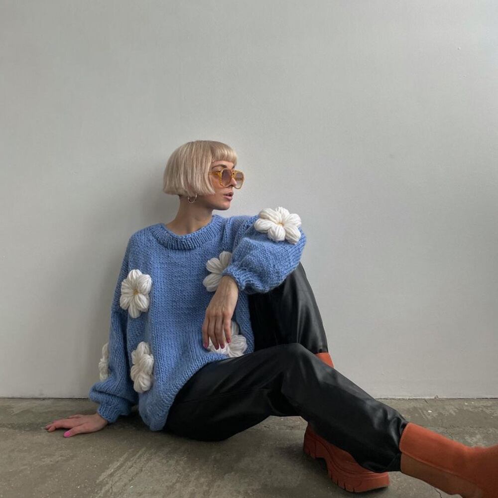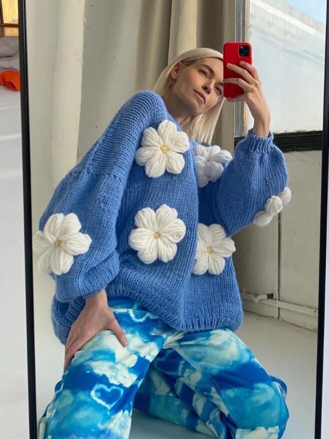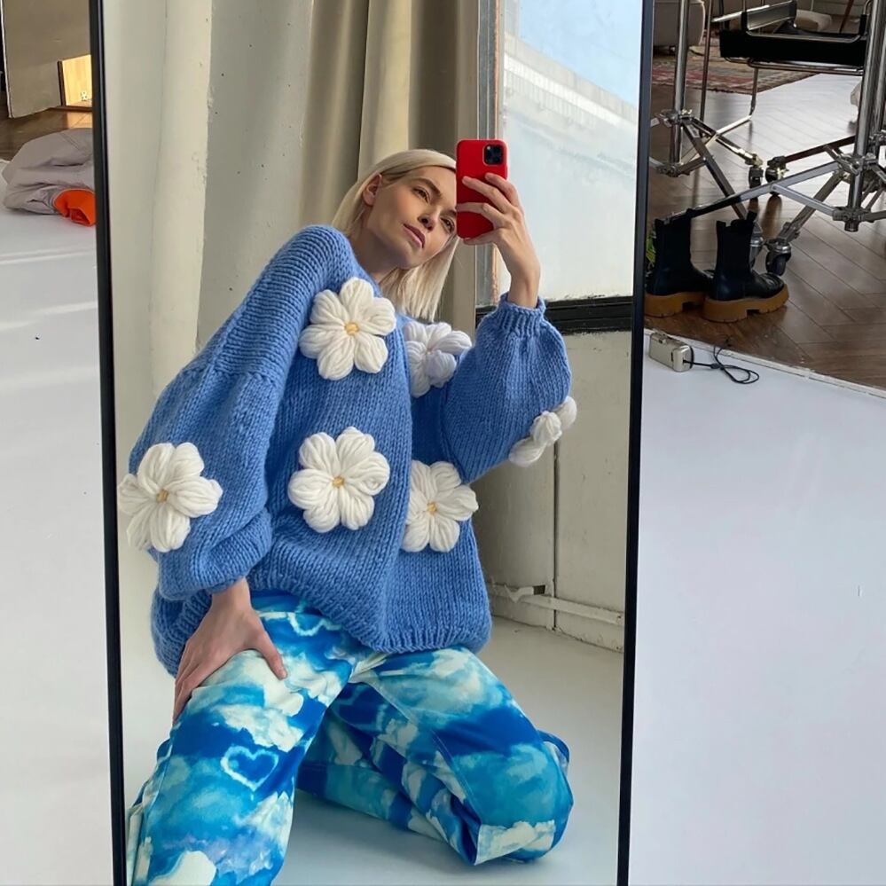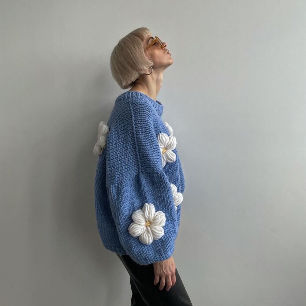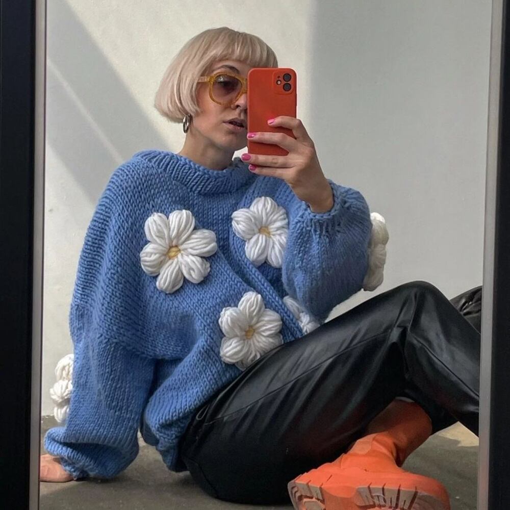 主役級の存在感! 気質アップ 着回し力抜群 立体フラワー ニットトップスE-9994