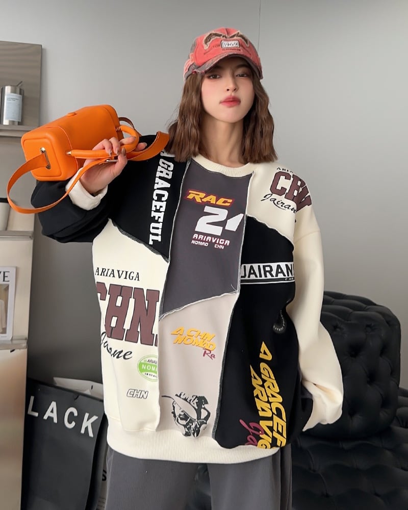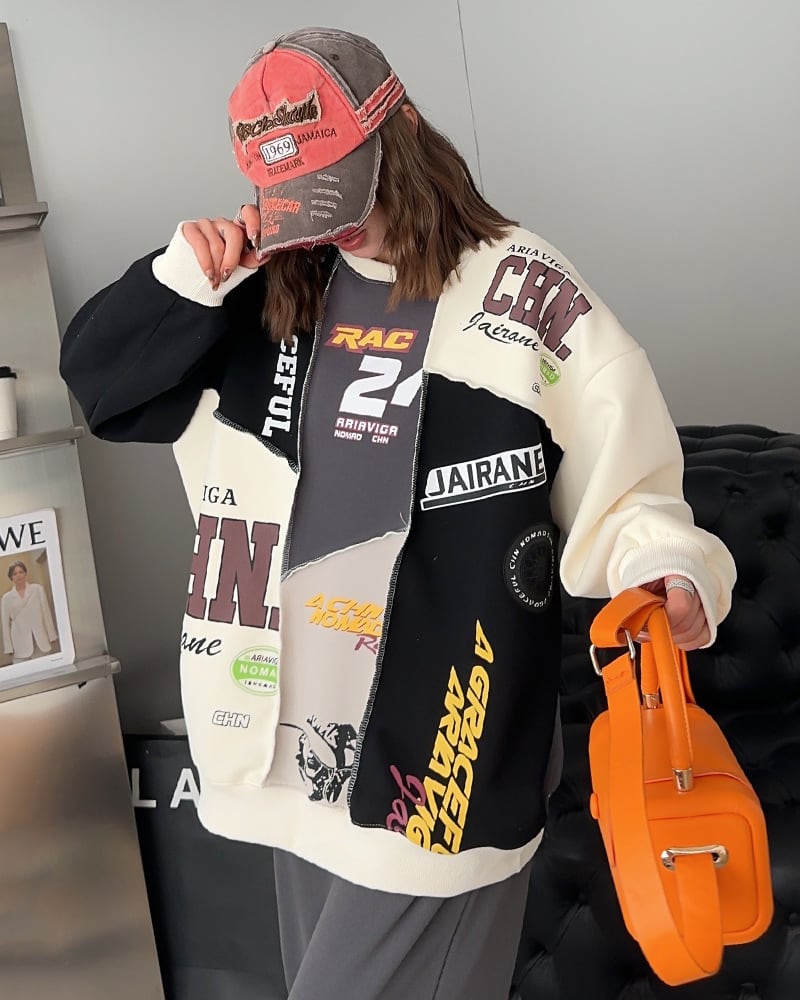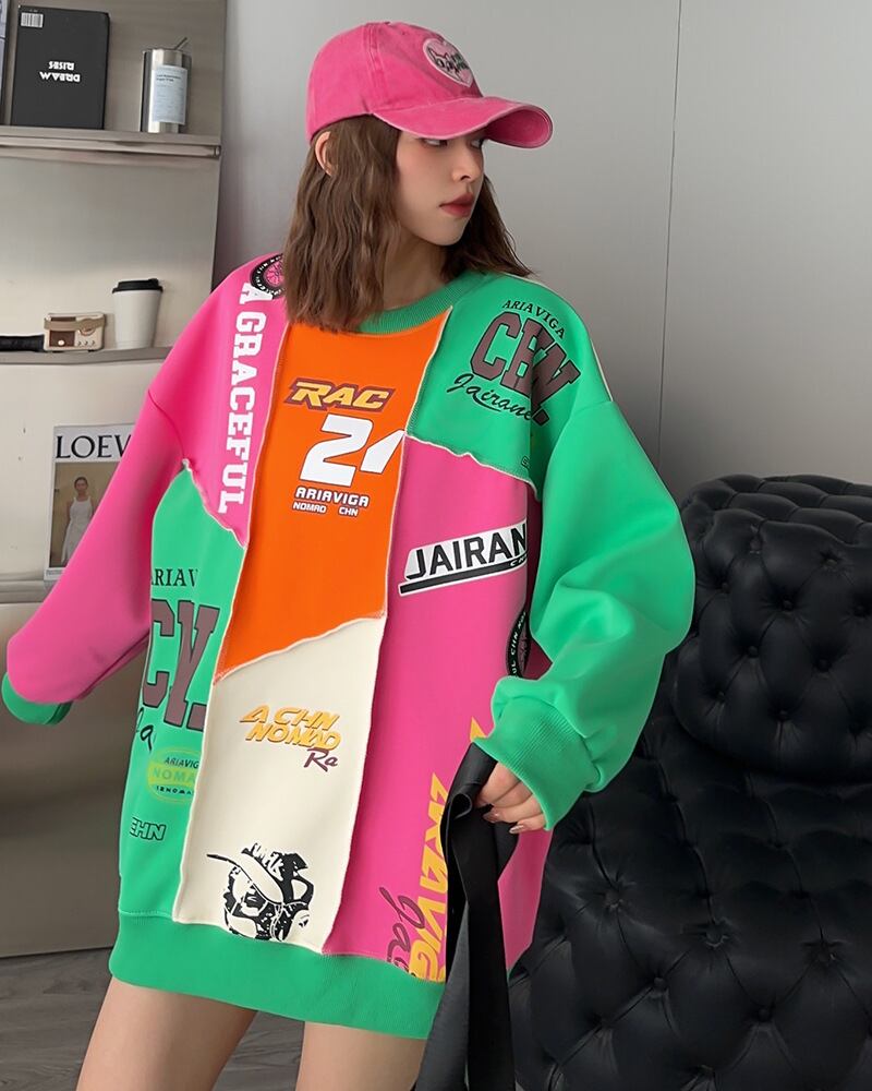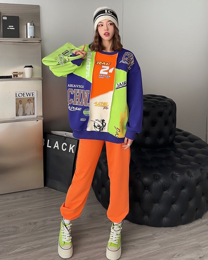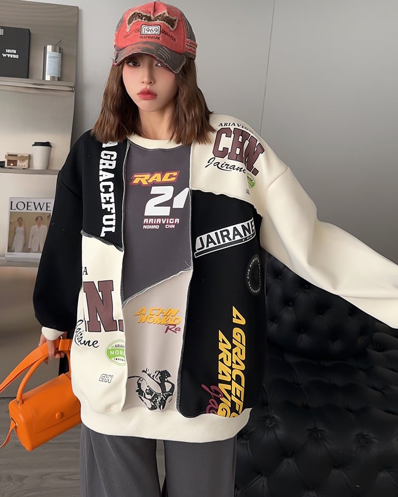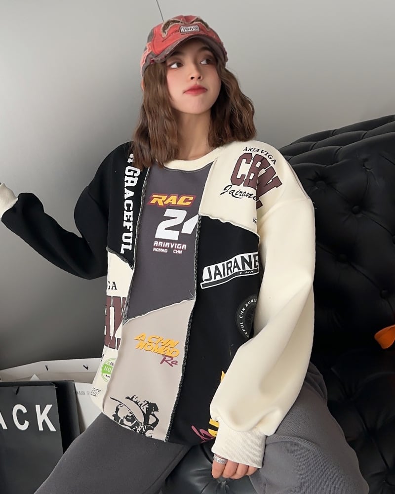 主役級 切り替えロゴ オーバーサイズ スウェット全3色ゆったりトップスins-4762