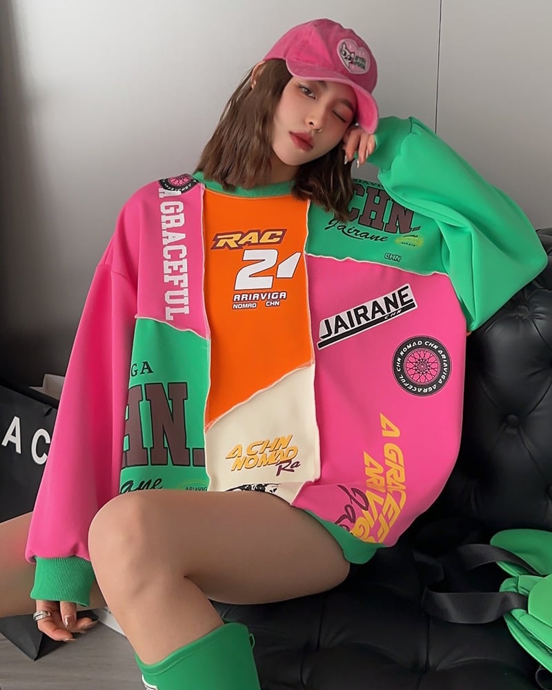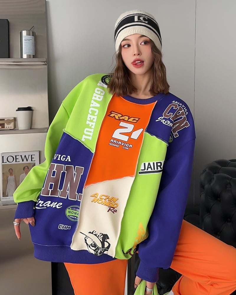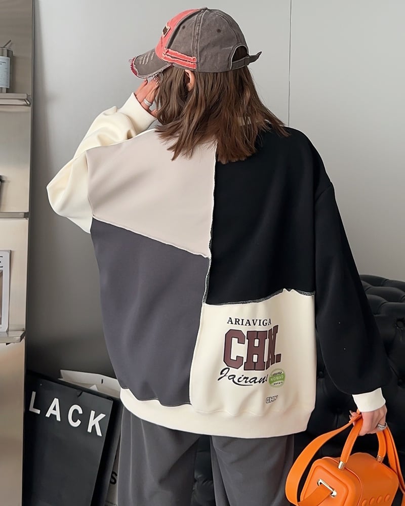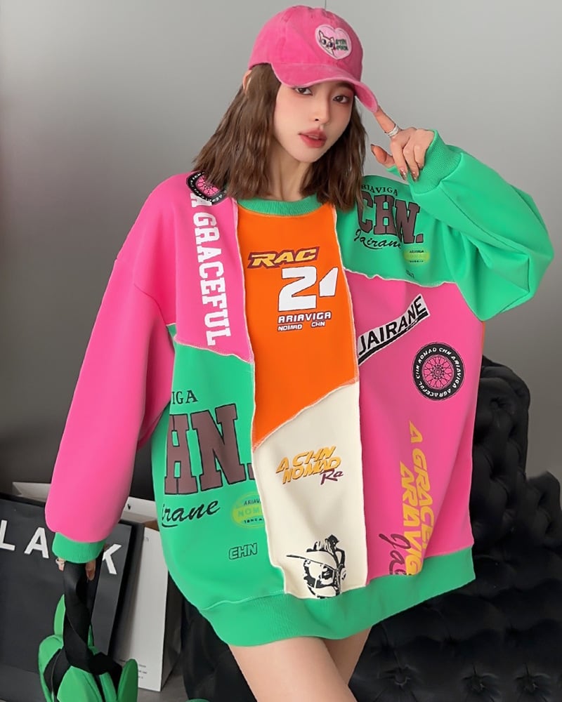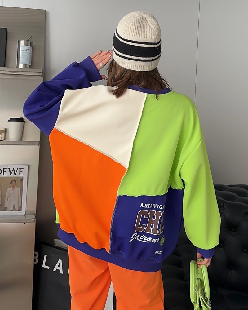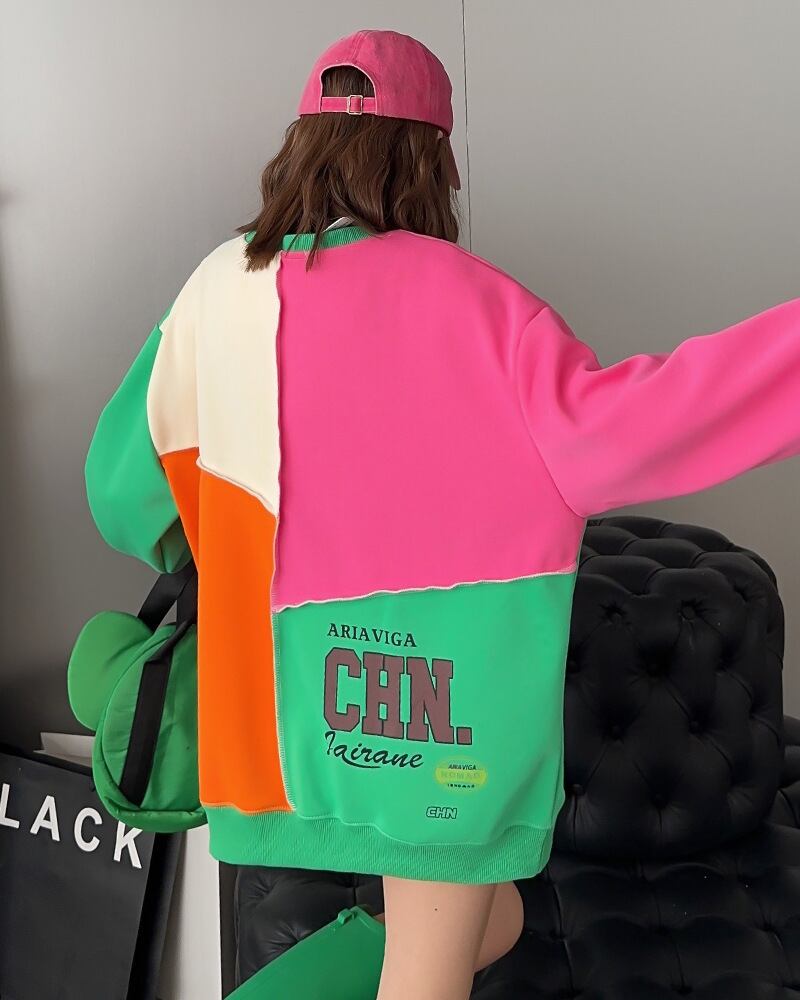 主役級 切り替えロゴ オーバーサイズ スウェット全3色ゆったりトップスins-4762