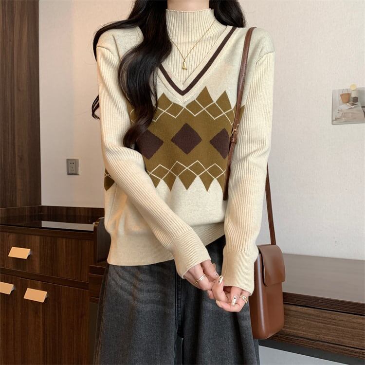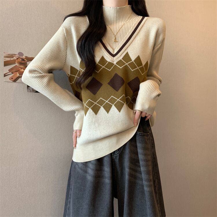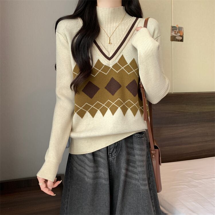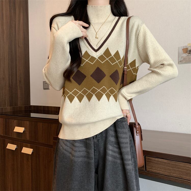 人気上昇中 レイヤード風 おしゃれ度高め 全2色 ニットトップスE-9583