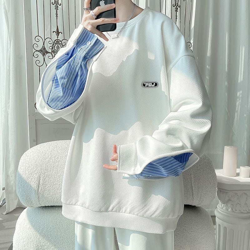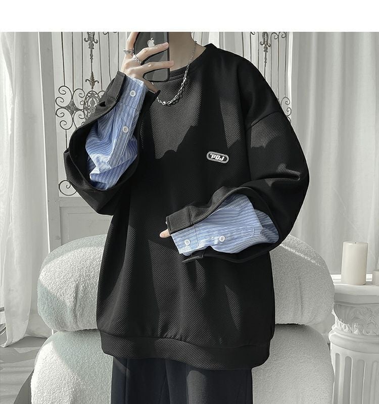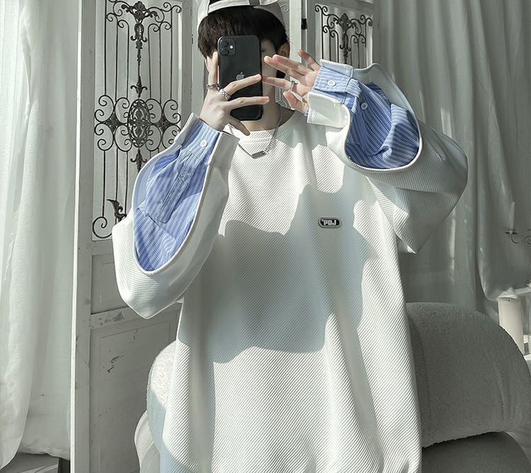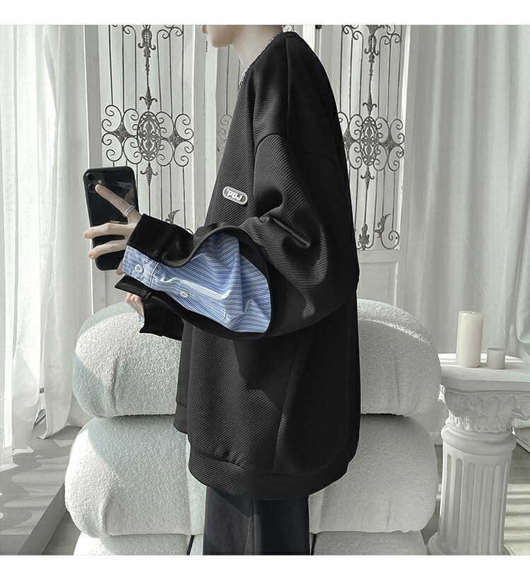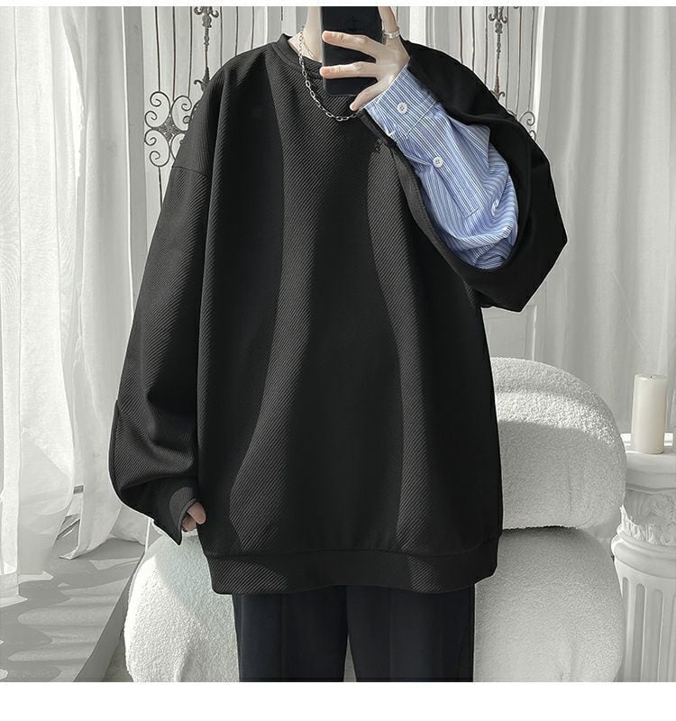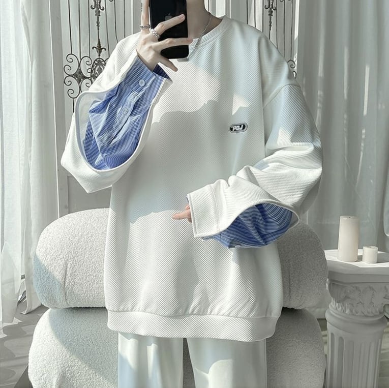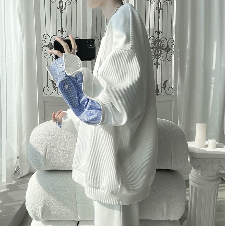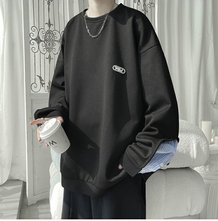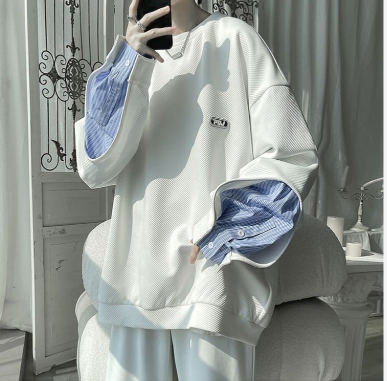 【人気急上昇中】ゆったりトップス 切り替え レイヤード風 スウェット全2色<ins-8081>