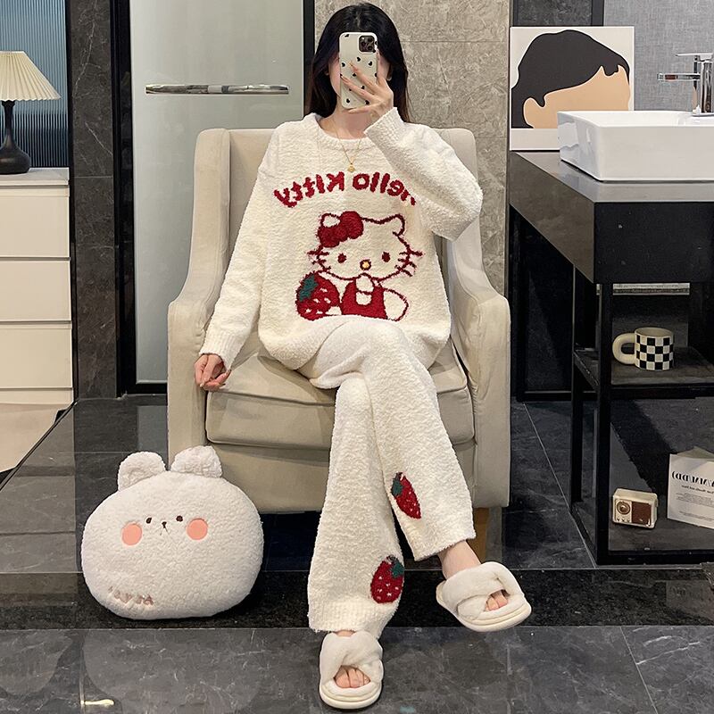 【人気急上昇中!】柔らかな肌触りで着心地も楽ちん!モコモコ パジャマ ルームウェア 上下セットE-10159