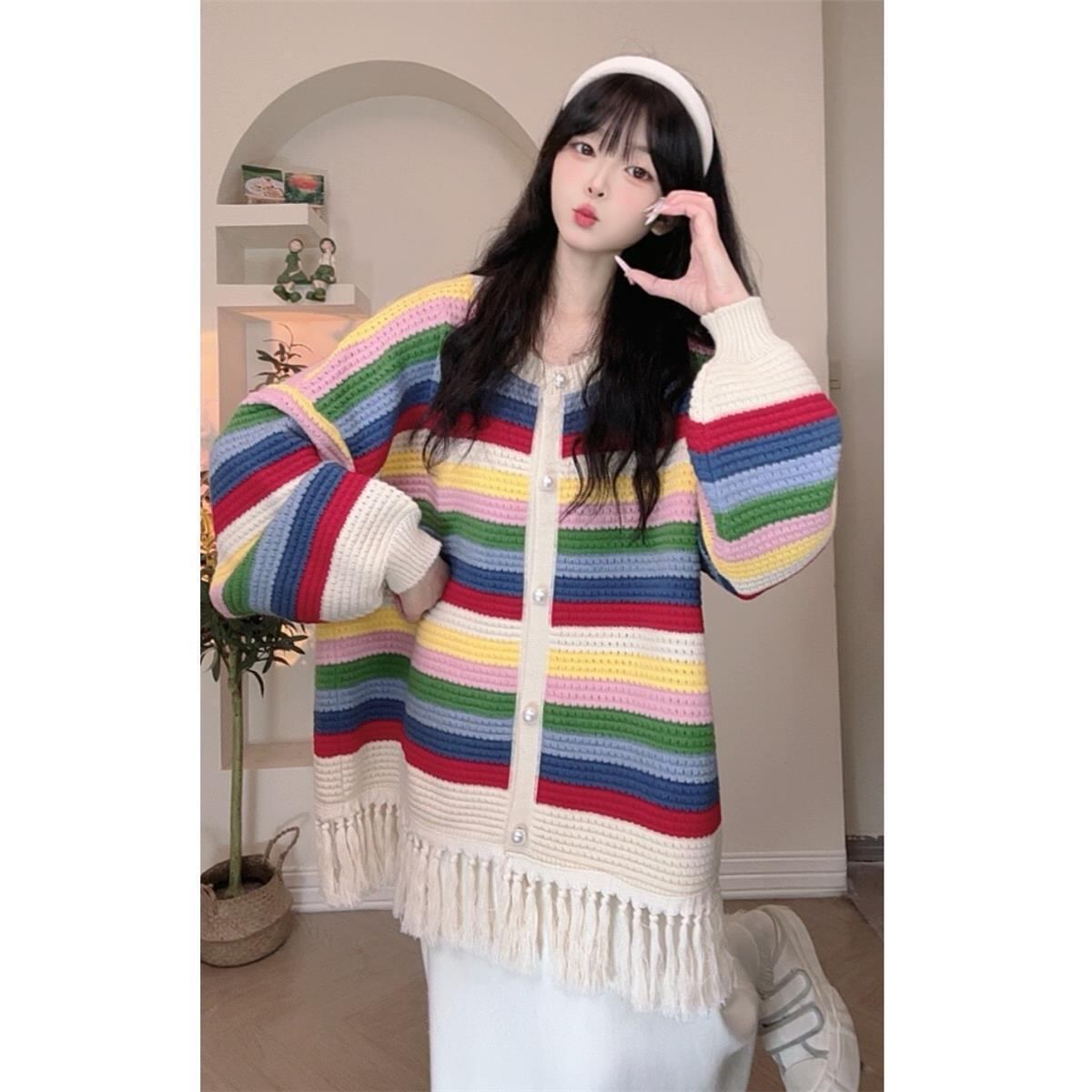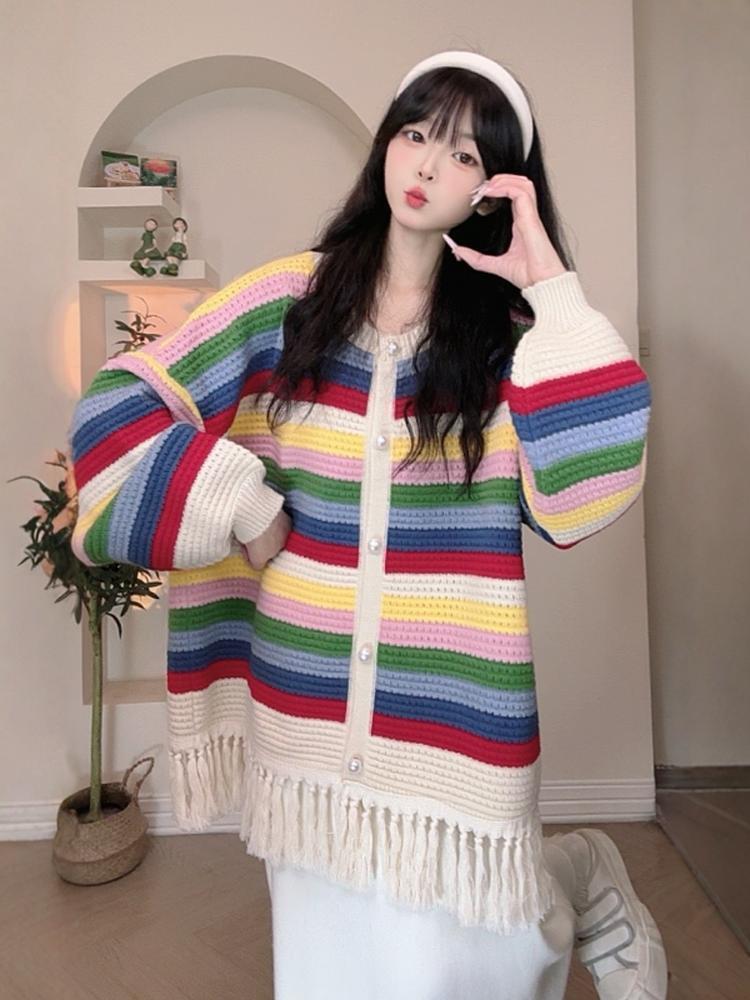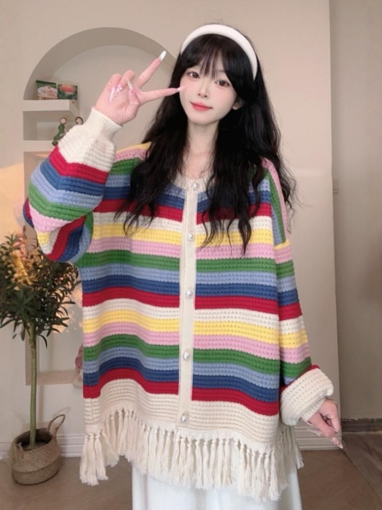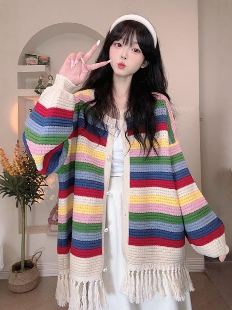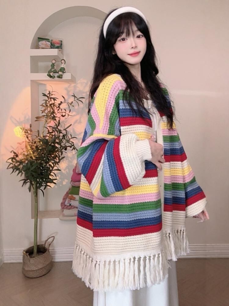 人気爆発中 タッセル 柔らかくて優しい印象 カラーマッチング ニットトップスE-10574