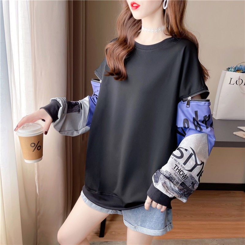 人気爆発中 個性派 切り替え ゆったりスウェット全3色<ins-8082>
