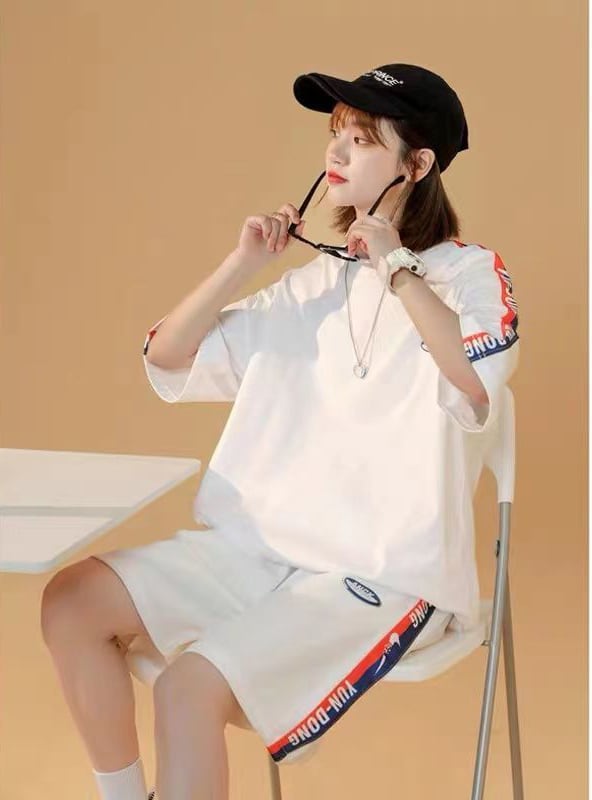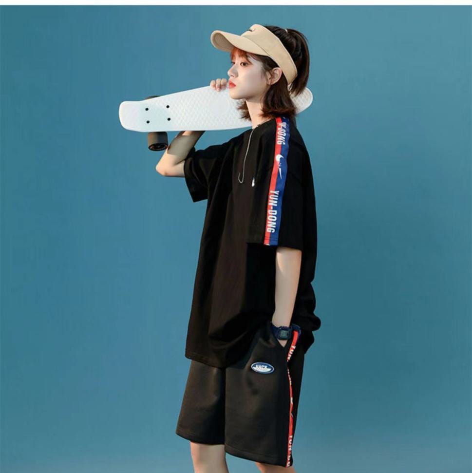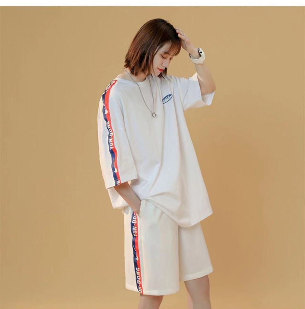 今季マストバイ カジュアル ルーズ 半袖Tシャツⅹパンツセット全2色<ins-8197>