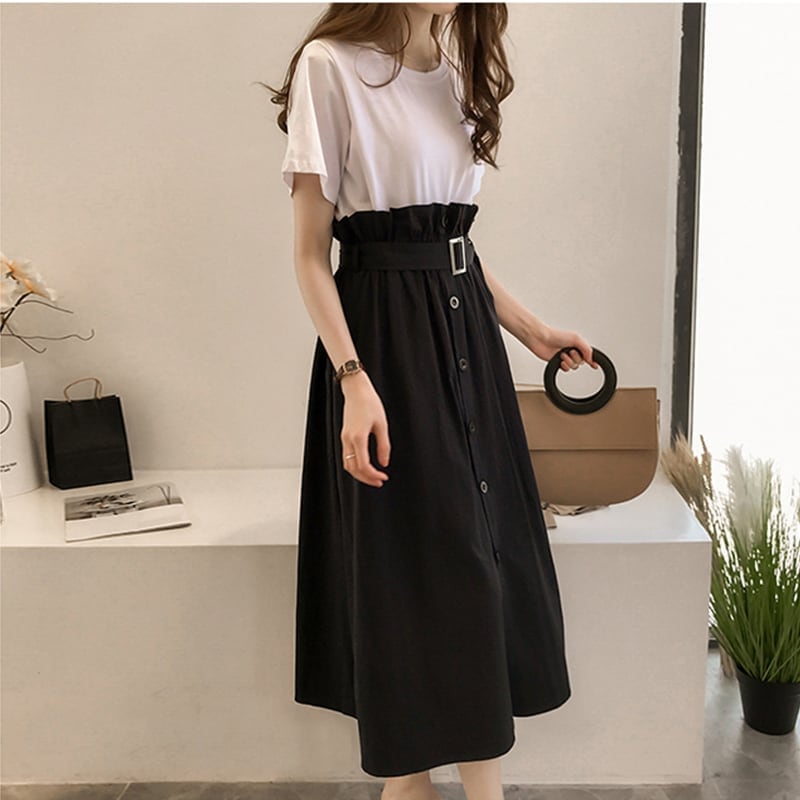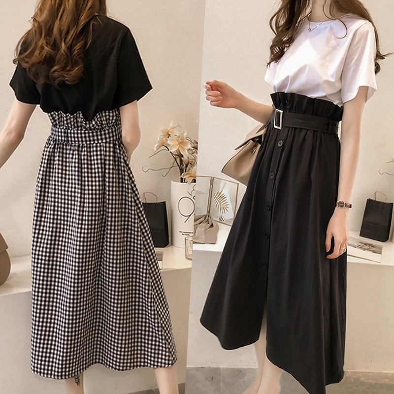 今季大好評 オシャレ度満点 切り替え ブラウス+ワンピース セットアップ<ins-3434>