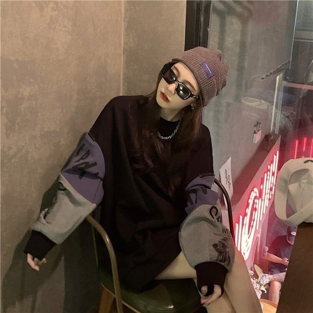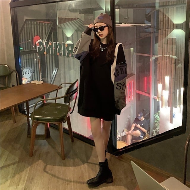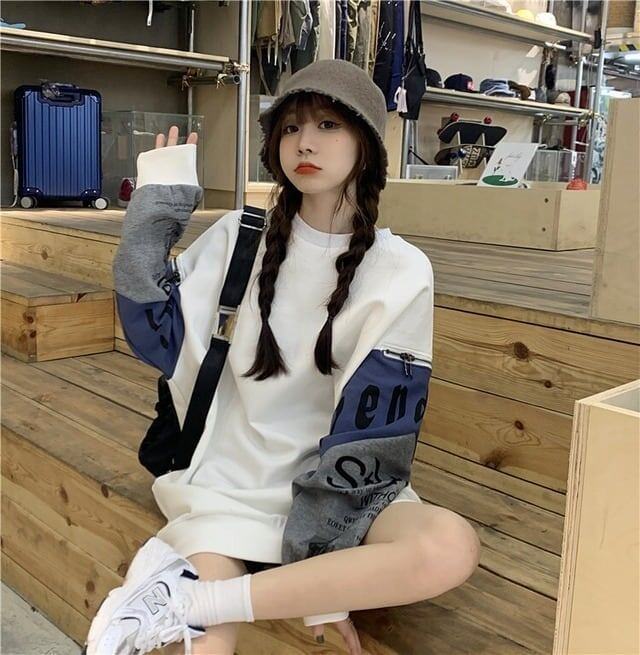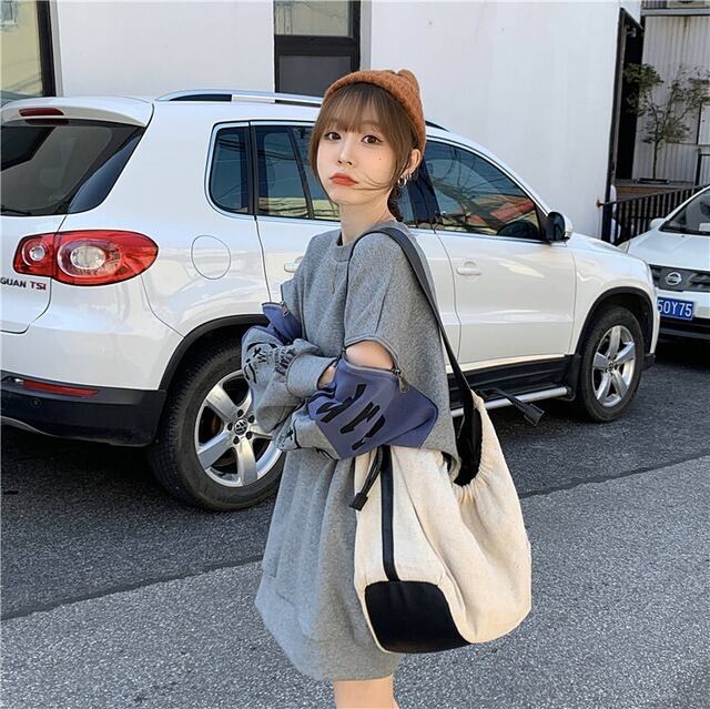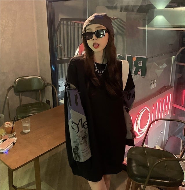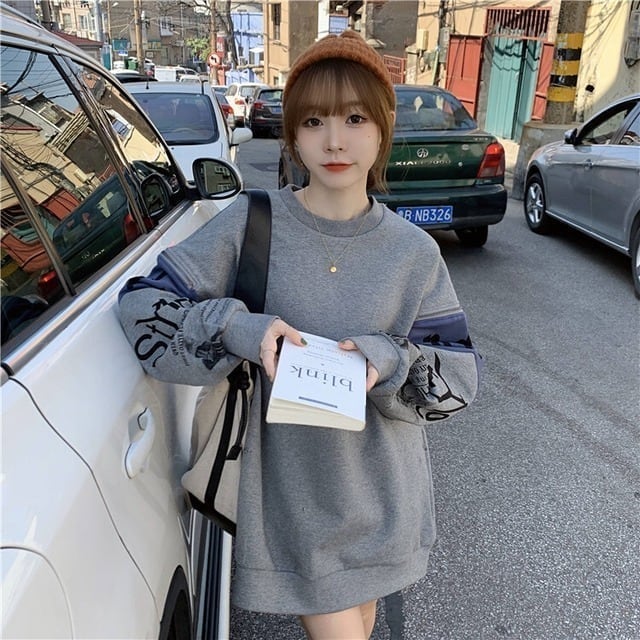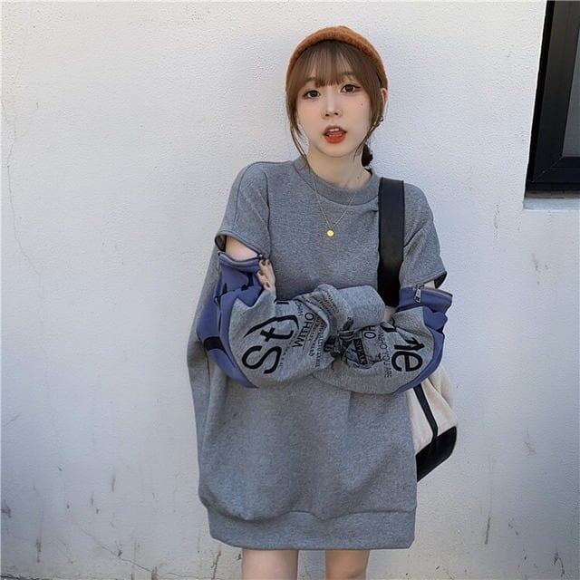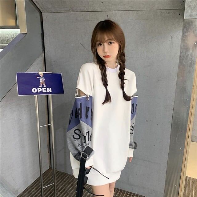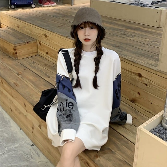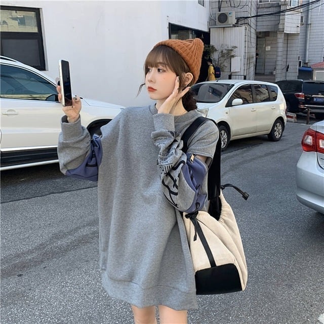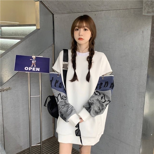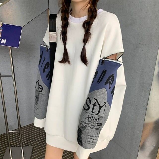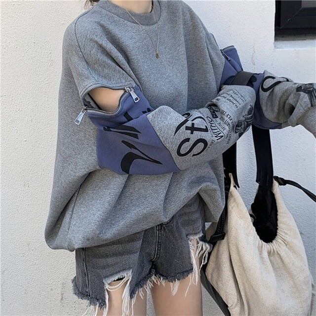 個性派 長袖 ラウンドネック ジッパー スウェット パーカーE-2146