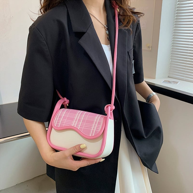 個性的なデザイン 一目惚れ チェック柄 メッセンジャーバッグ<ins-3208>