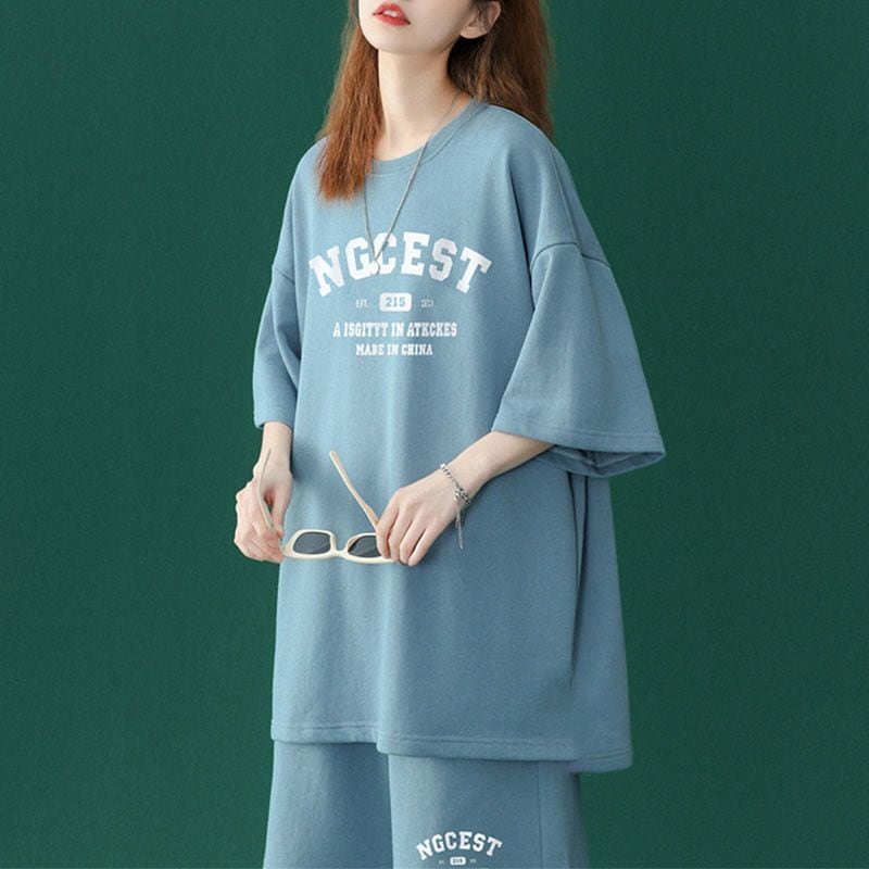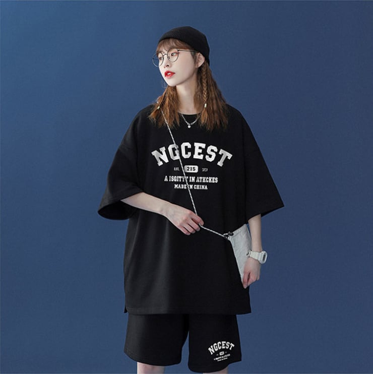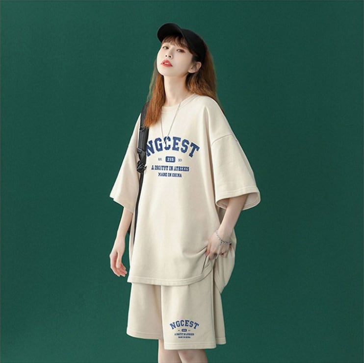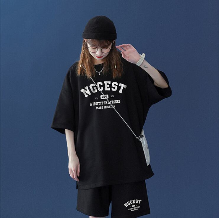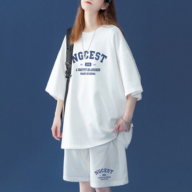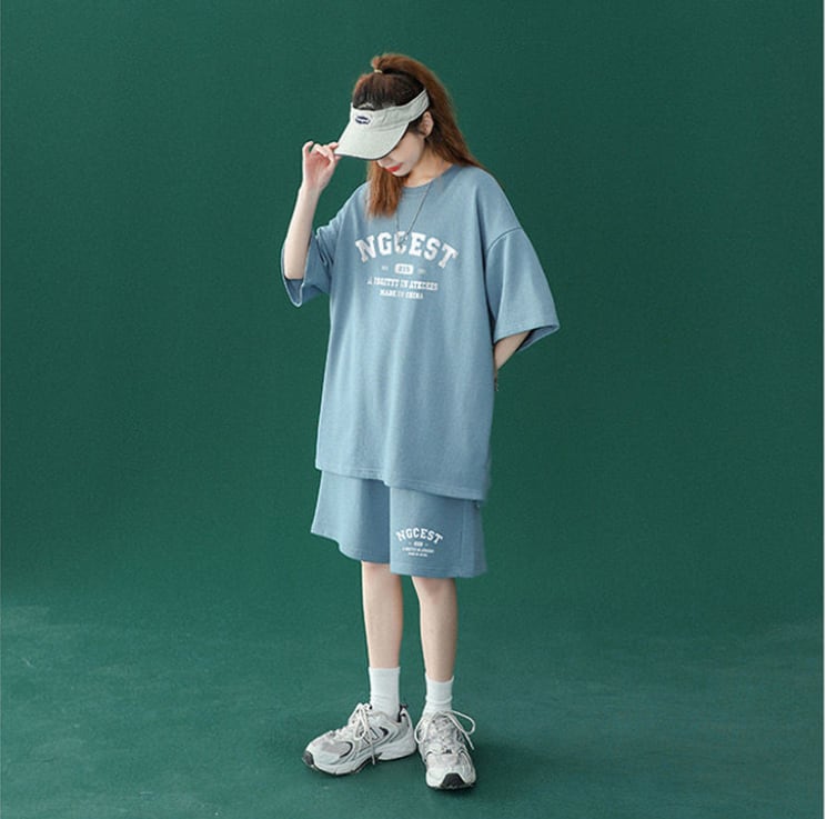 【半額!期間限定!!】売り切れ必至 カジュアル 半袖Tシャツⅹパンツセット全4色 男女兼用<ins-6574>