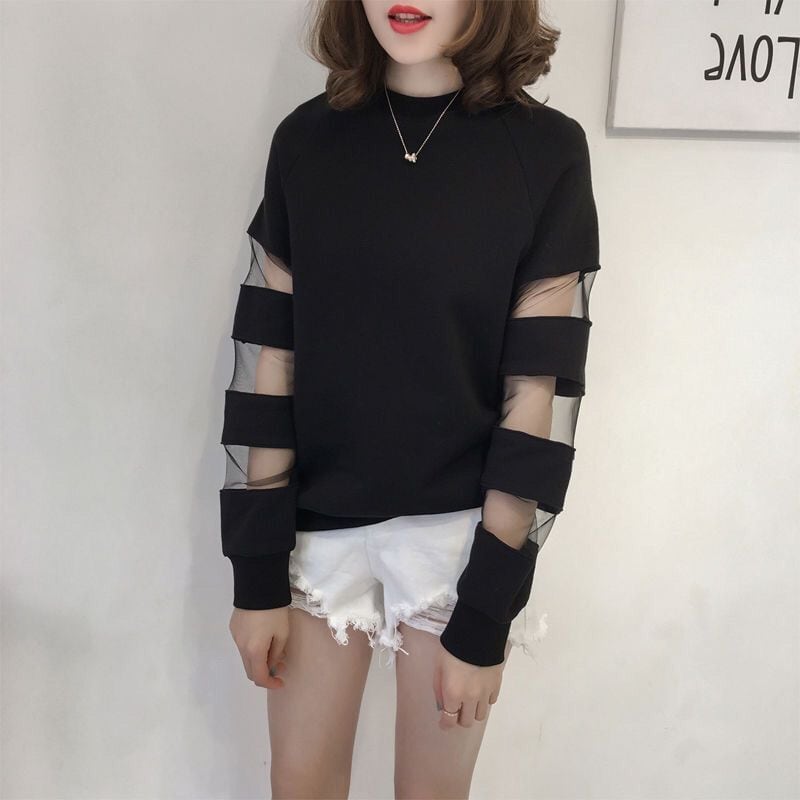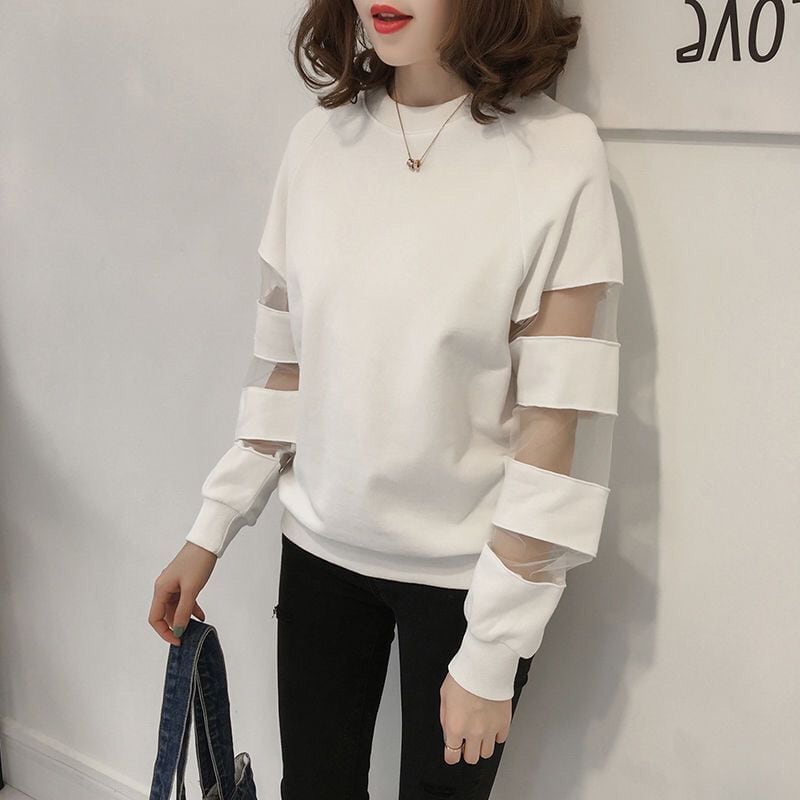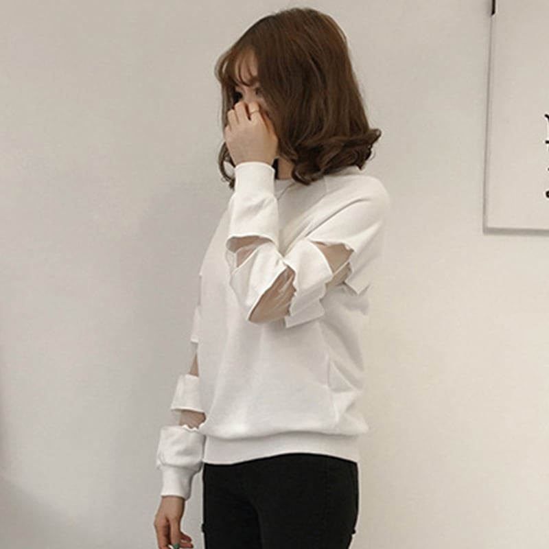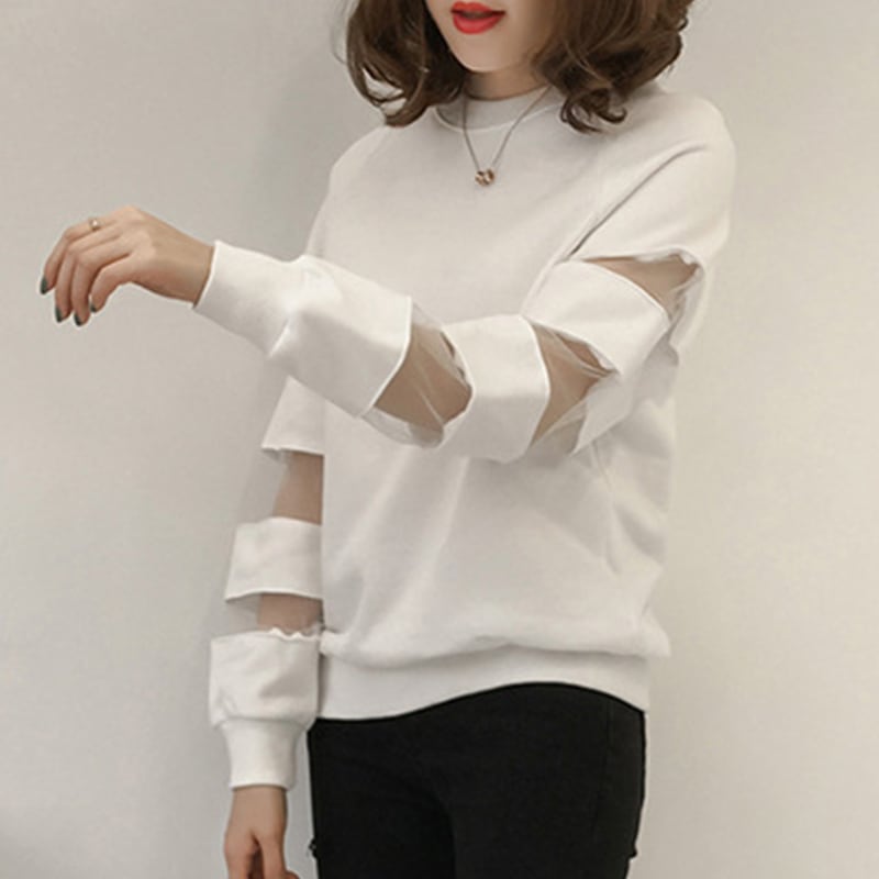 合わせやすい デイリー ラウンドネック 無地 切り替え スウェット パーカー<ins-2128>