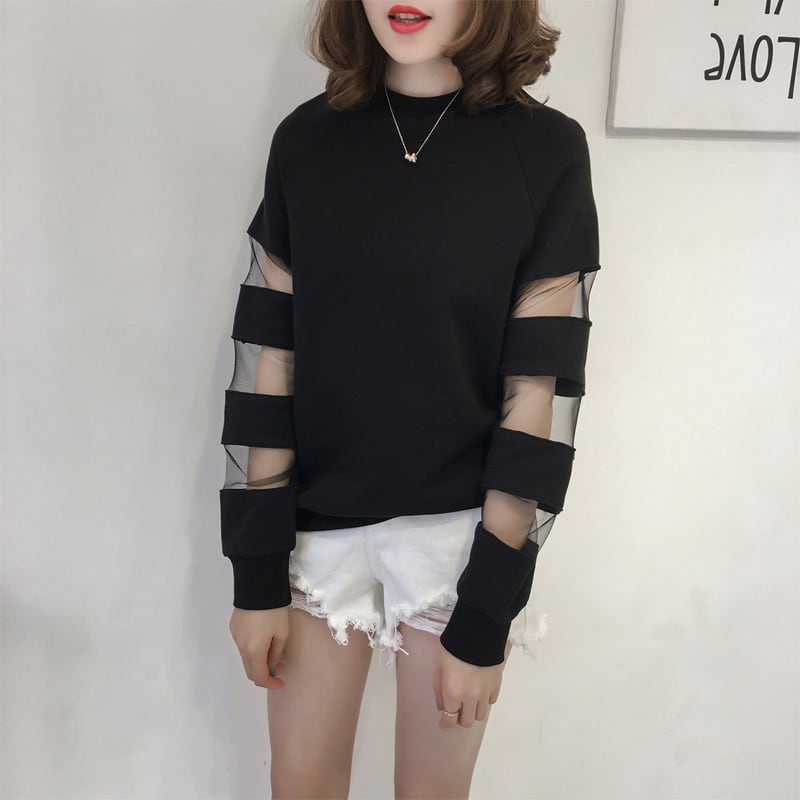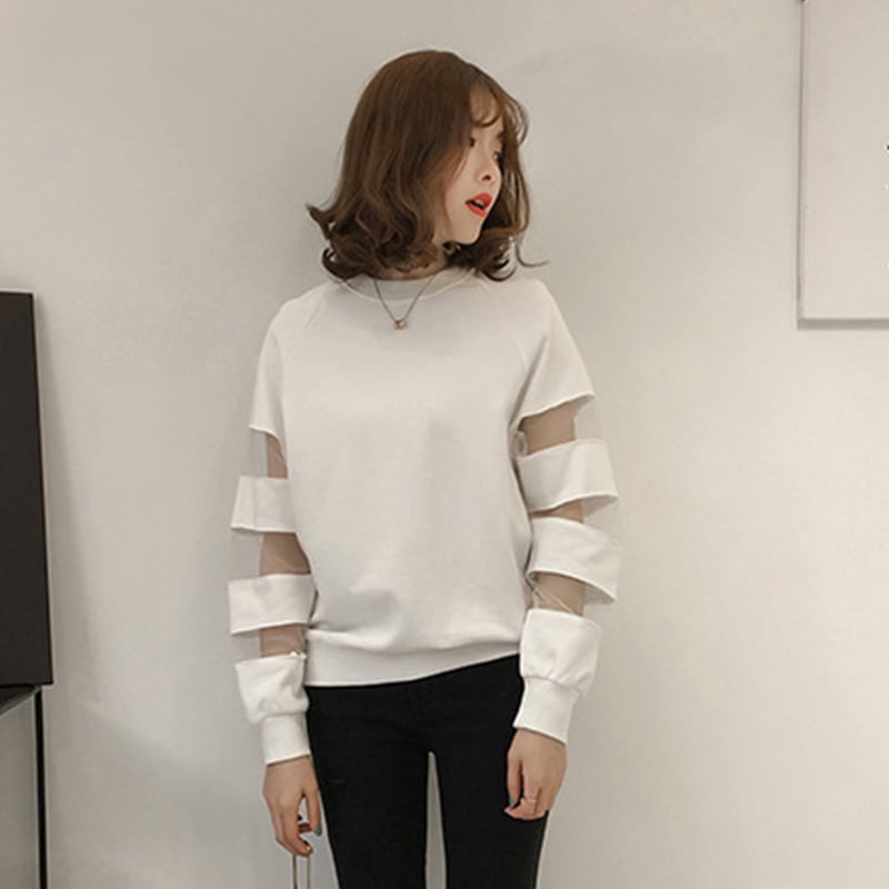 合わせやすい デイリー ラウンドネック 無地 切り替え スウェット パーカーins-2128