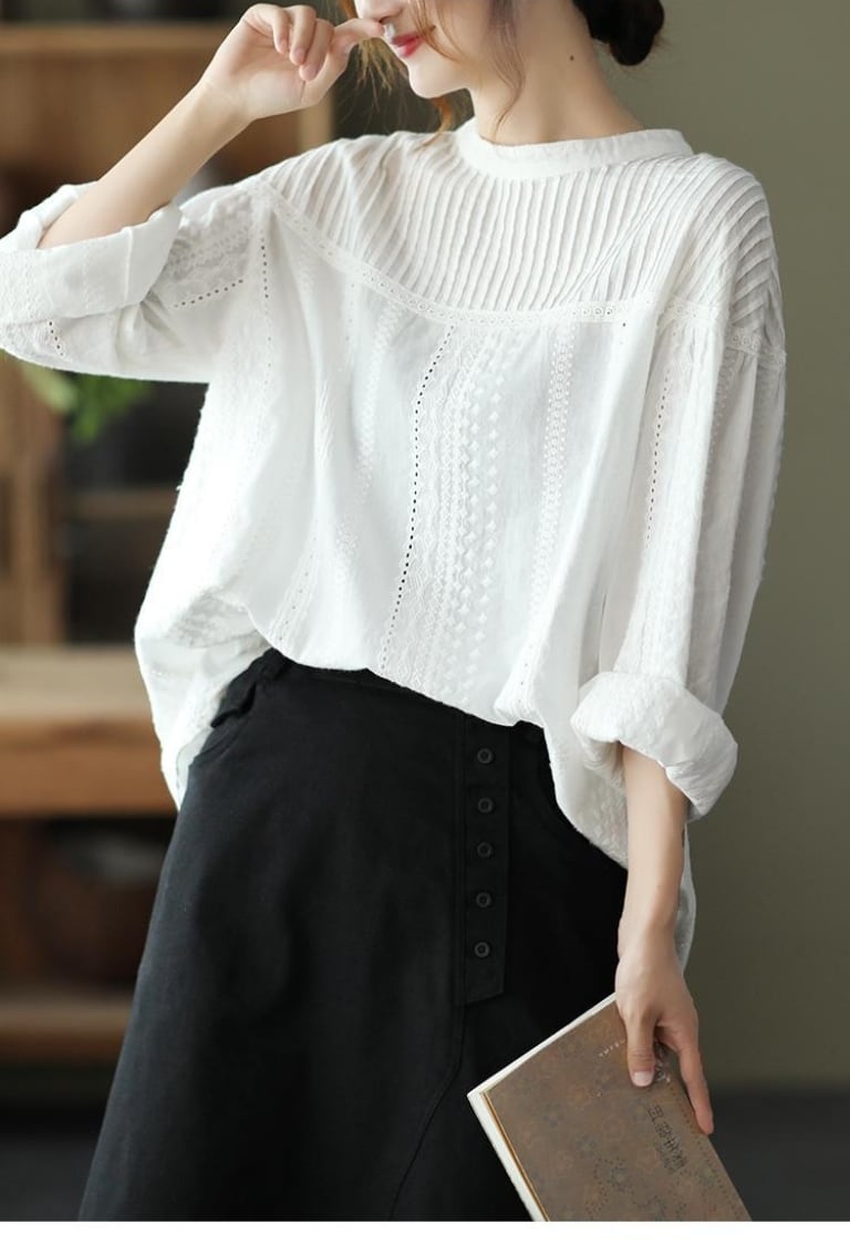 売り切れ必至 シンプル 透かし彫り シャツ <ins-8207>