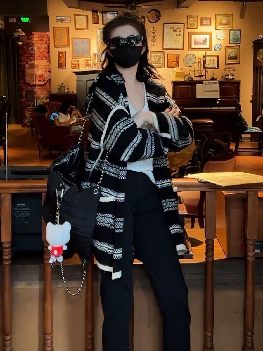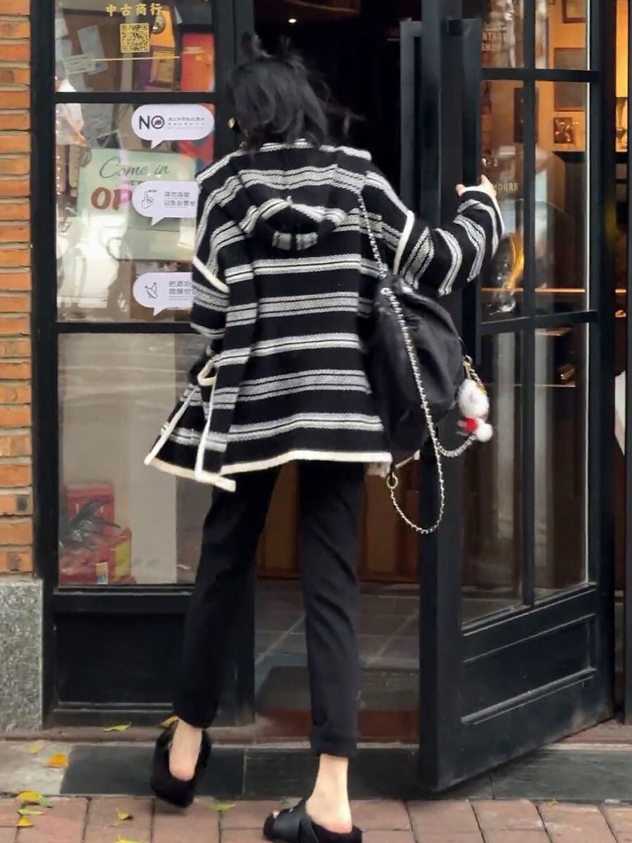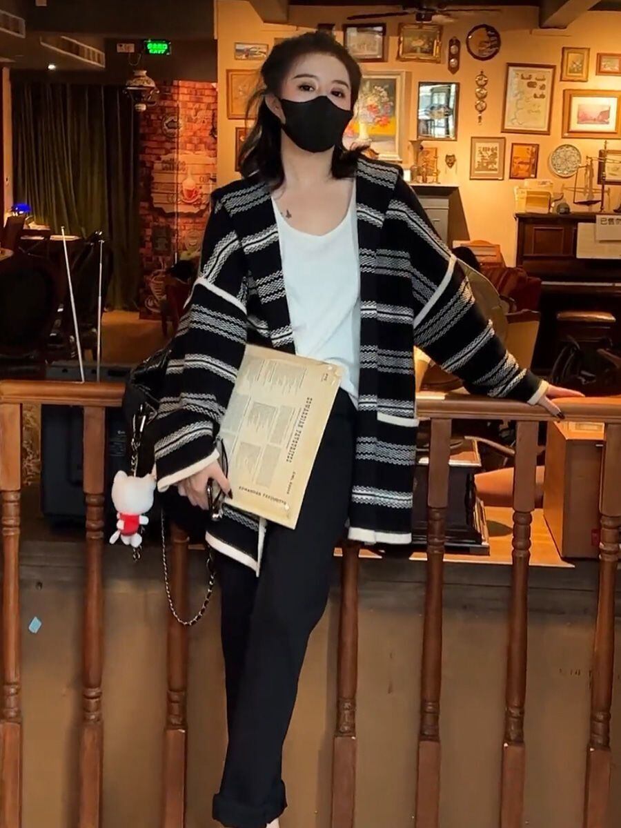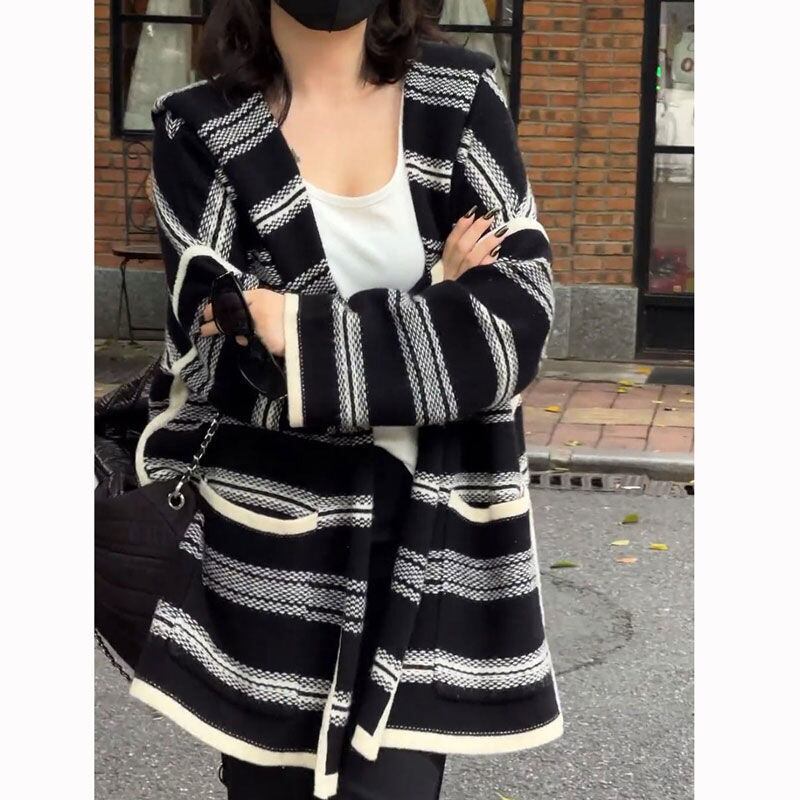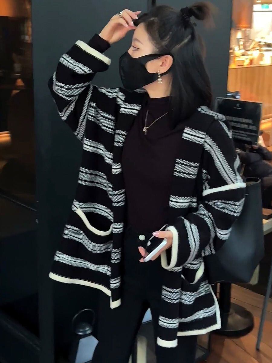 売り切れ必至 ストライプ柄 韓国風ファッション ニットカーディガンE-9376