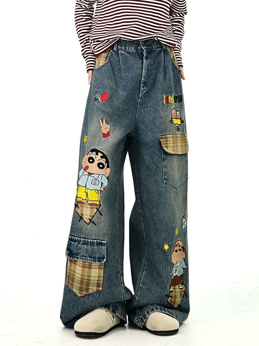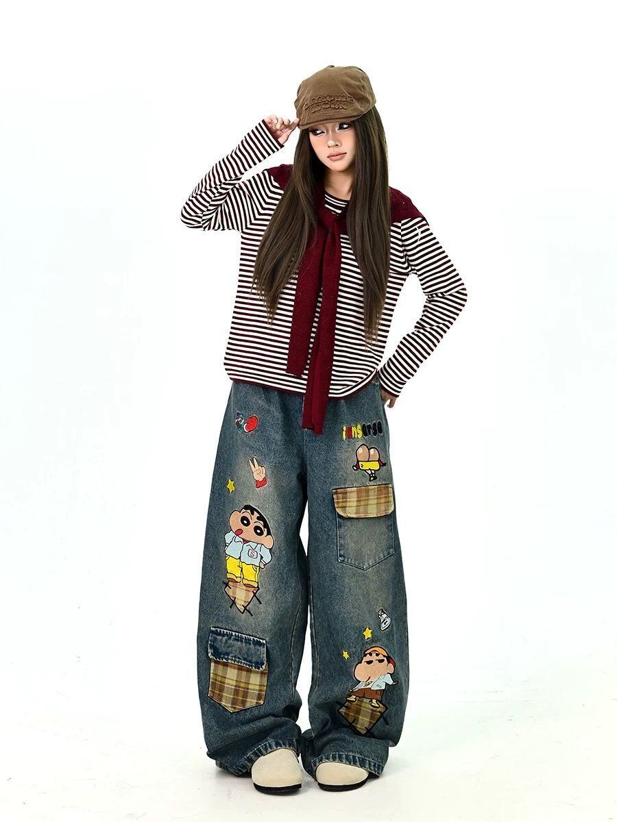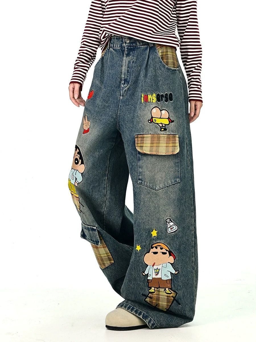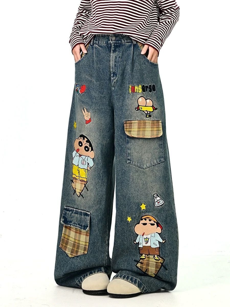 売り切れ必至 プラスベルベット デニム ワイドパンツE-12352