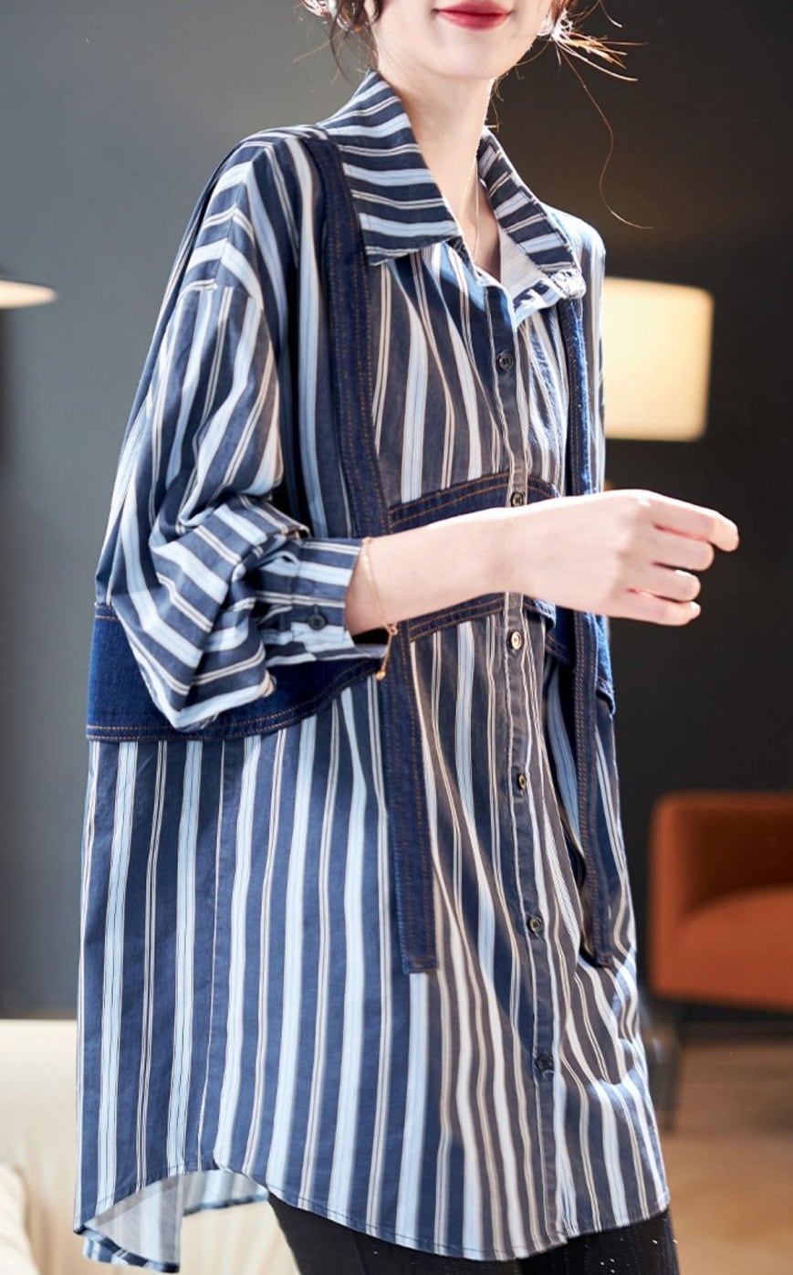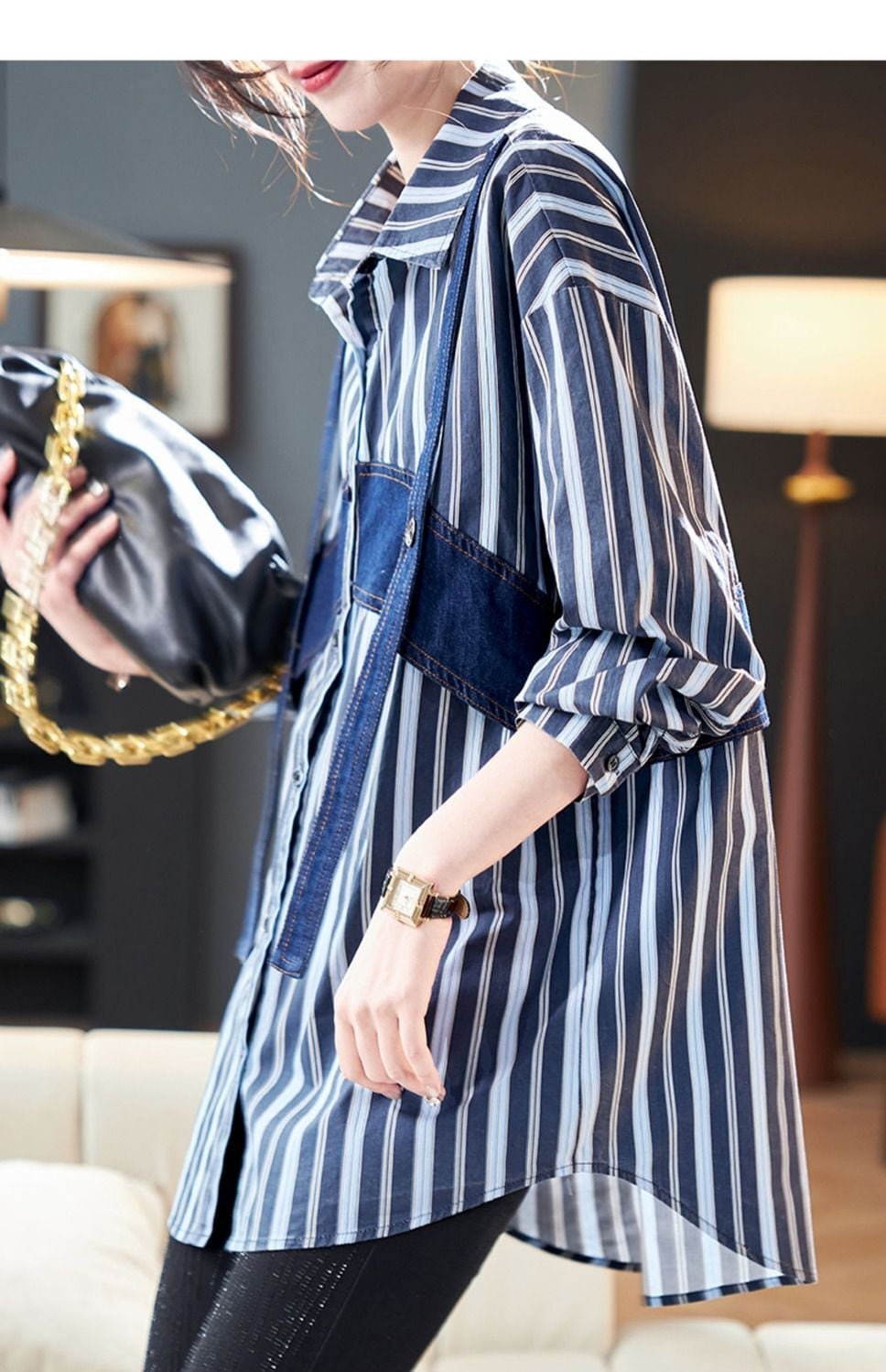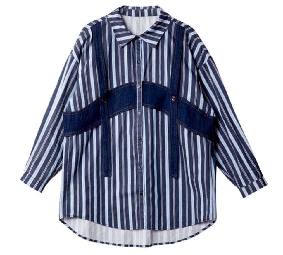 売り切れ必至 簡潔 オシャレ度満点 ストライプ柄 切り替え シャツ <ins-8079>