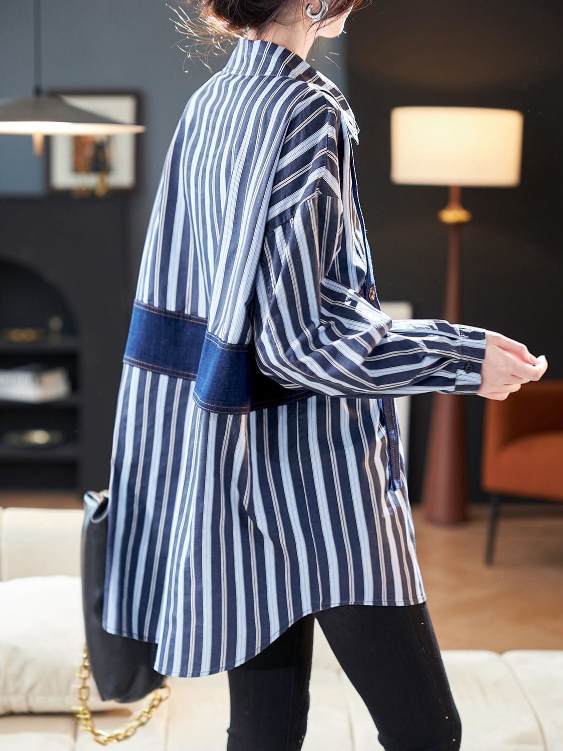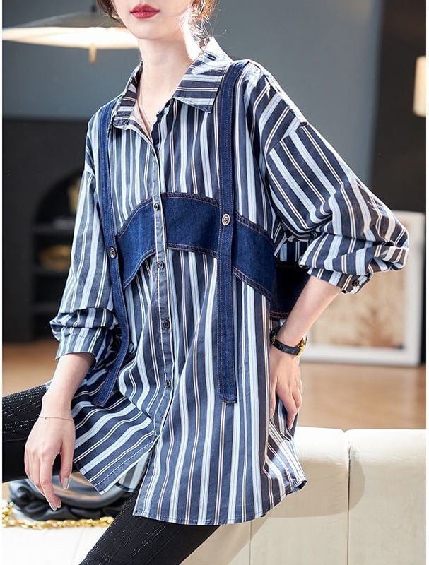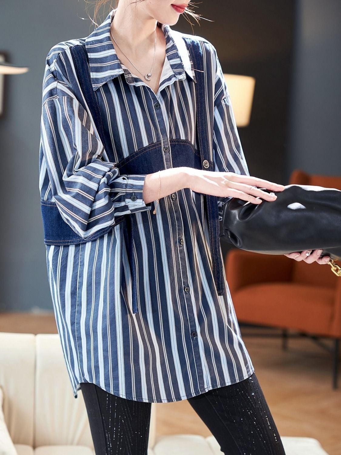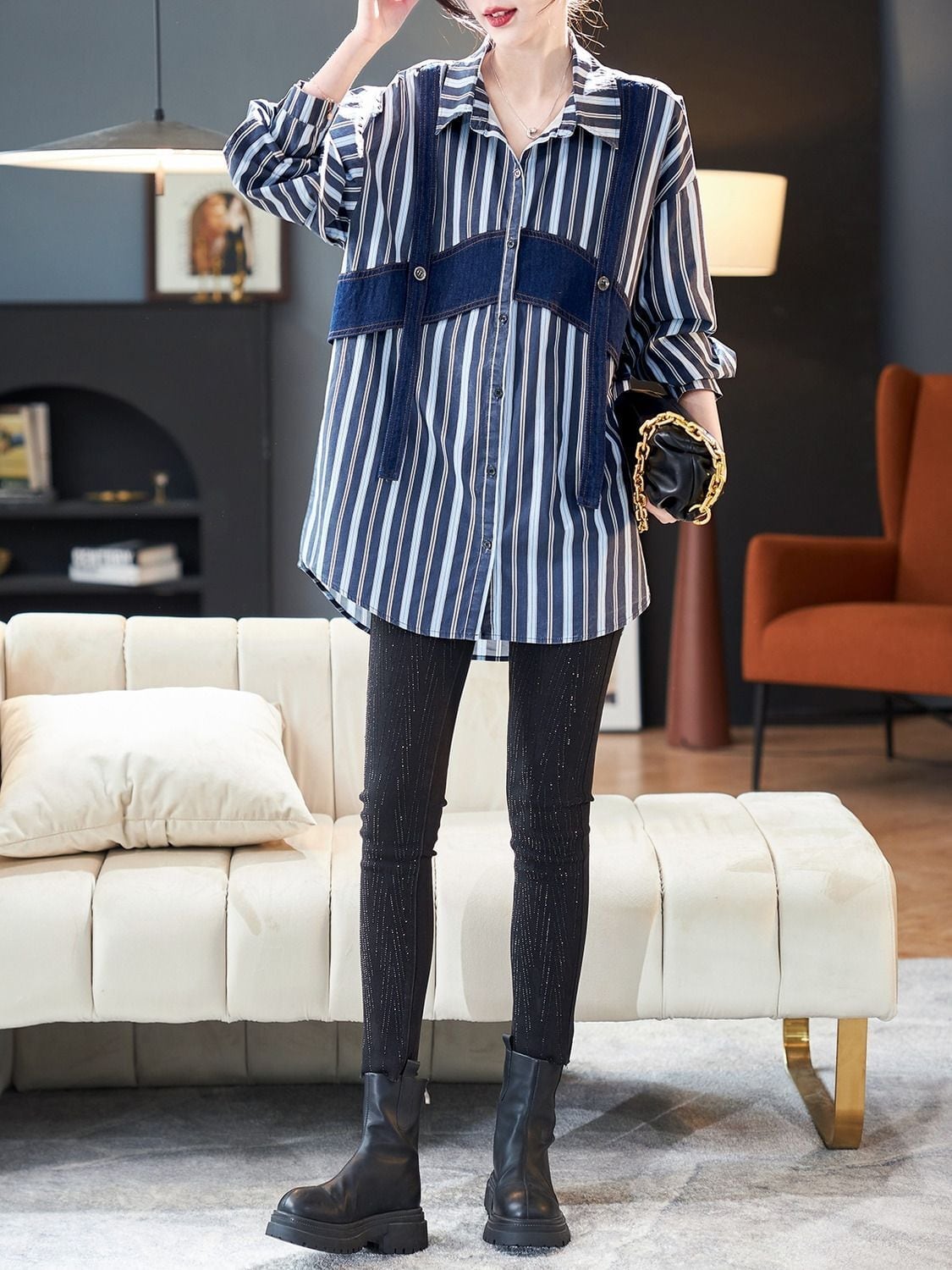 売り切れ必至 簡潔 オシャレ度満点 ストライプ柄 切り替え シャツ <ins-8079>