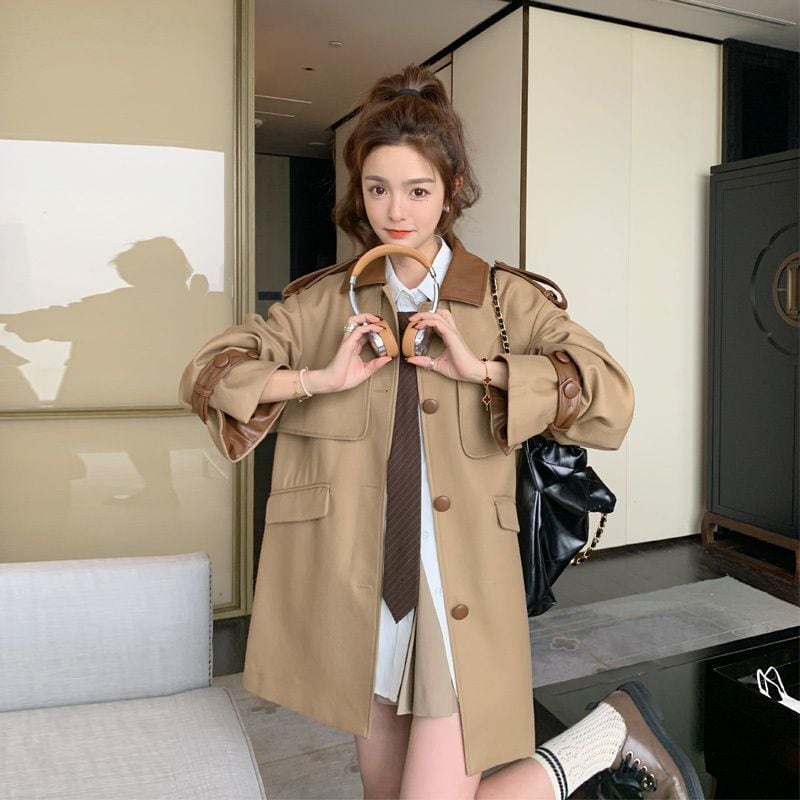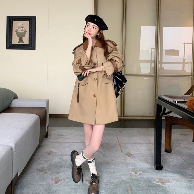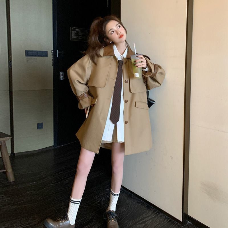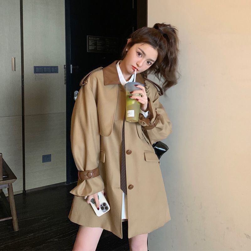 大人らしい 配色 トレンチコート ゆったりコートins-4816