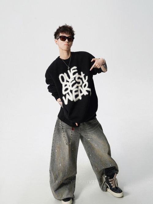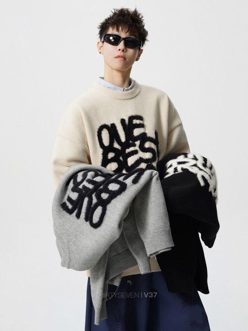 大人可愛い ファッション感満々 切り替え 3色選択 男女兼用 ニットE-12550