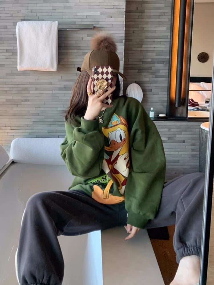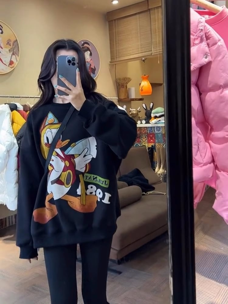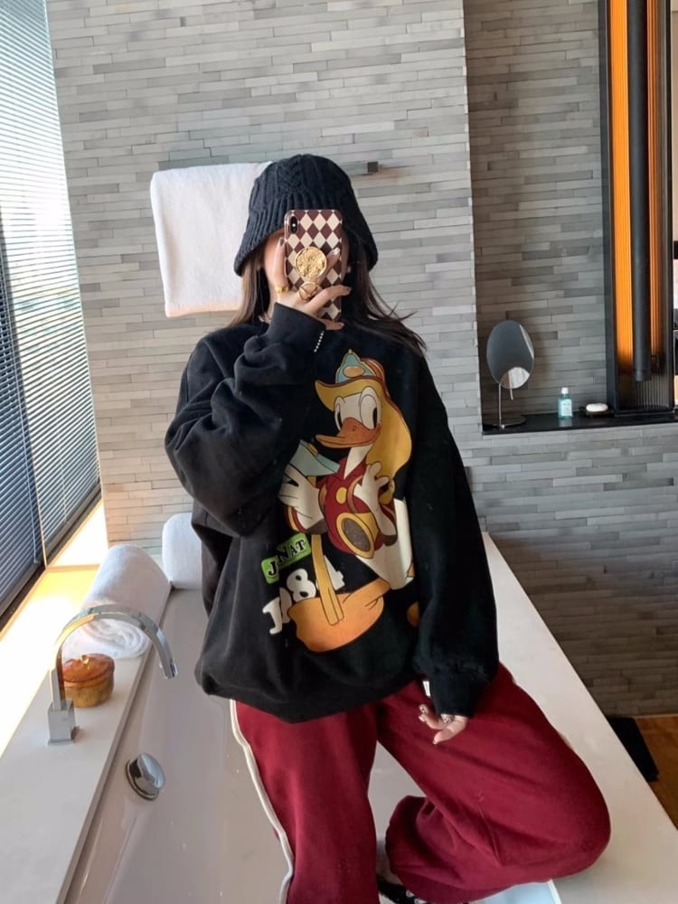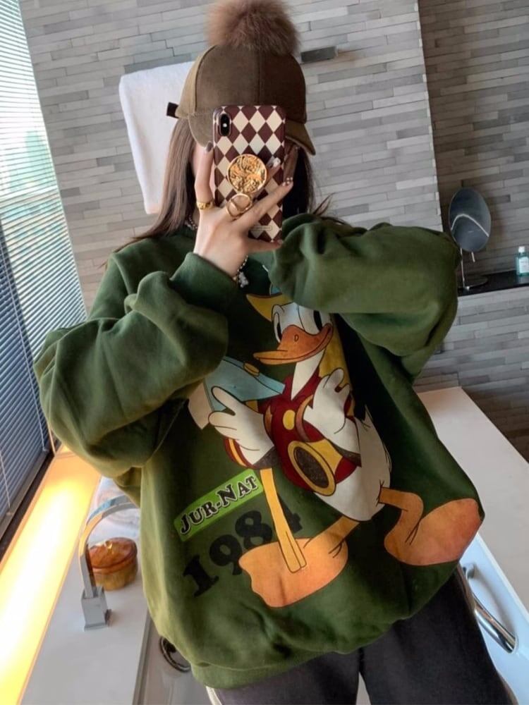 大人可愛い プリントオーバーサイズスウェット三色ありE-4191