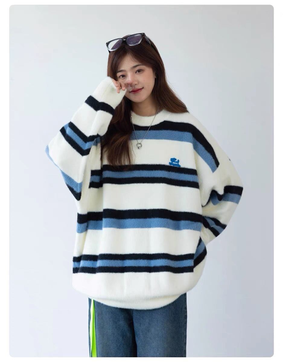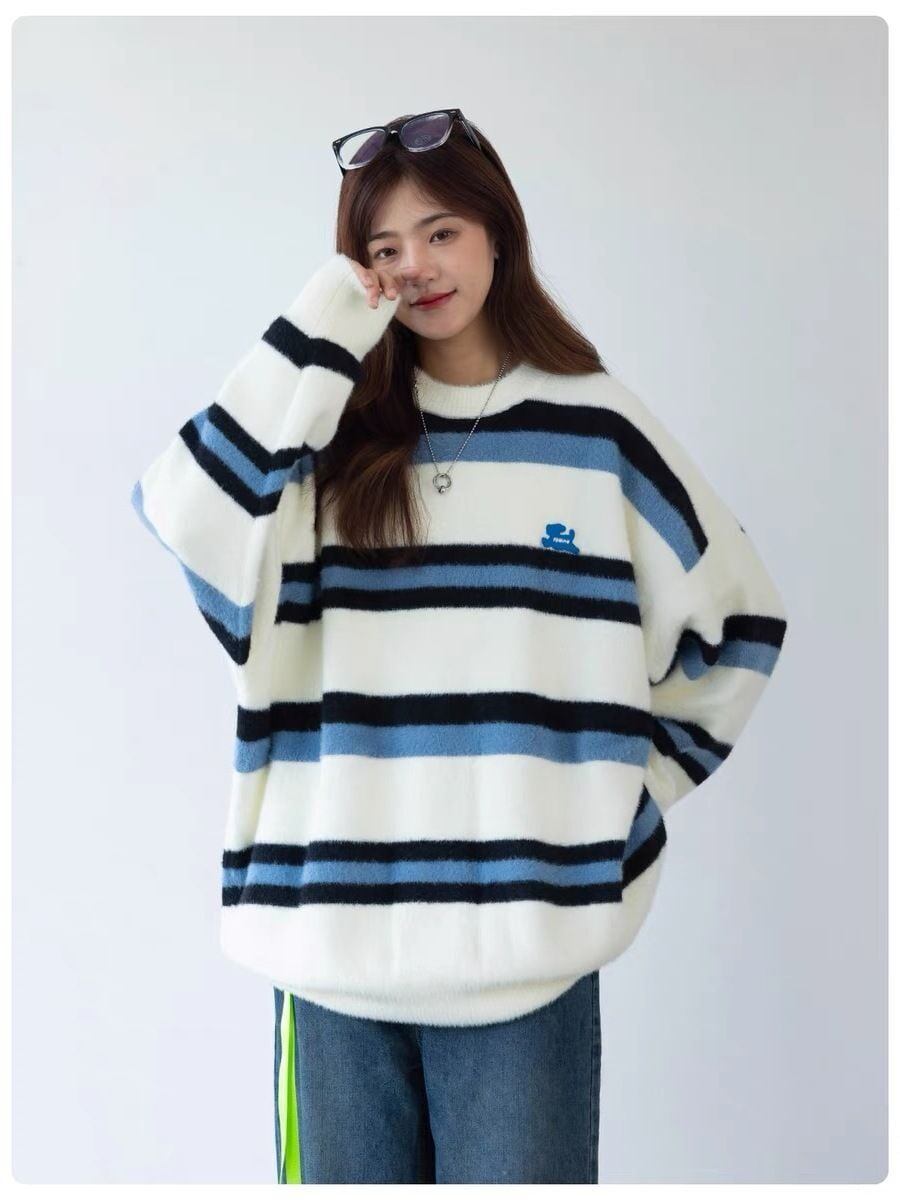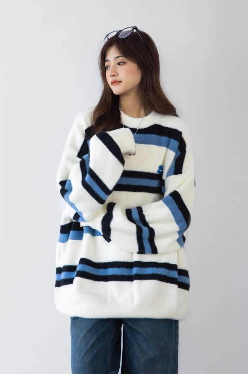 大活躍 カジュアル 柔らかくて優しい印象 ストライプ柄 2色選択ニットトップスE-9938